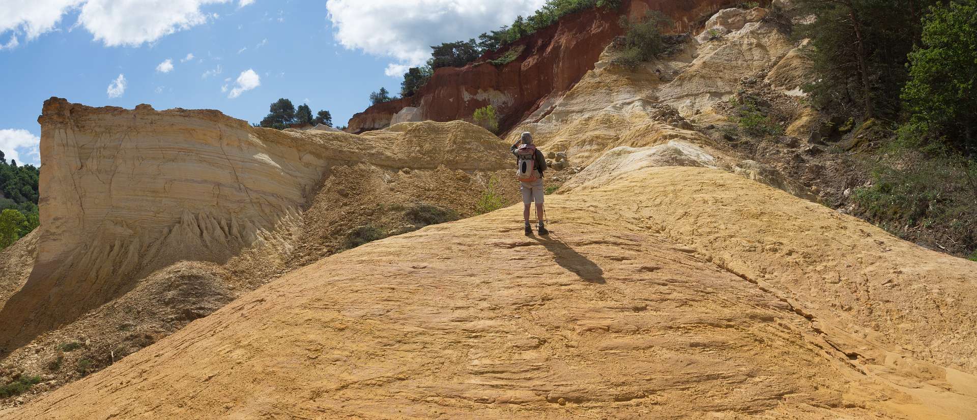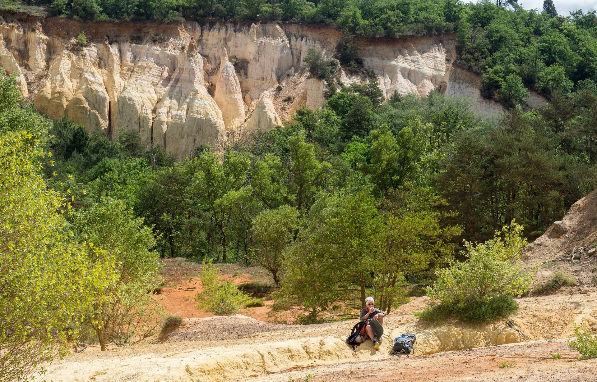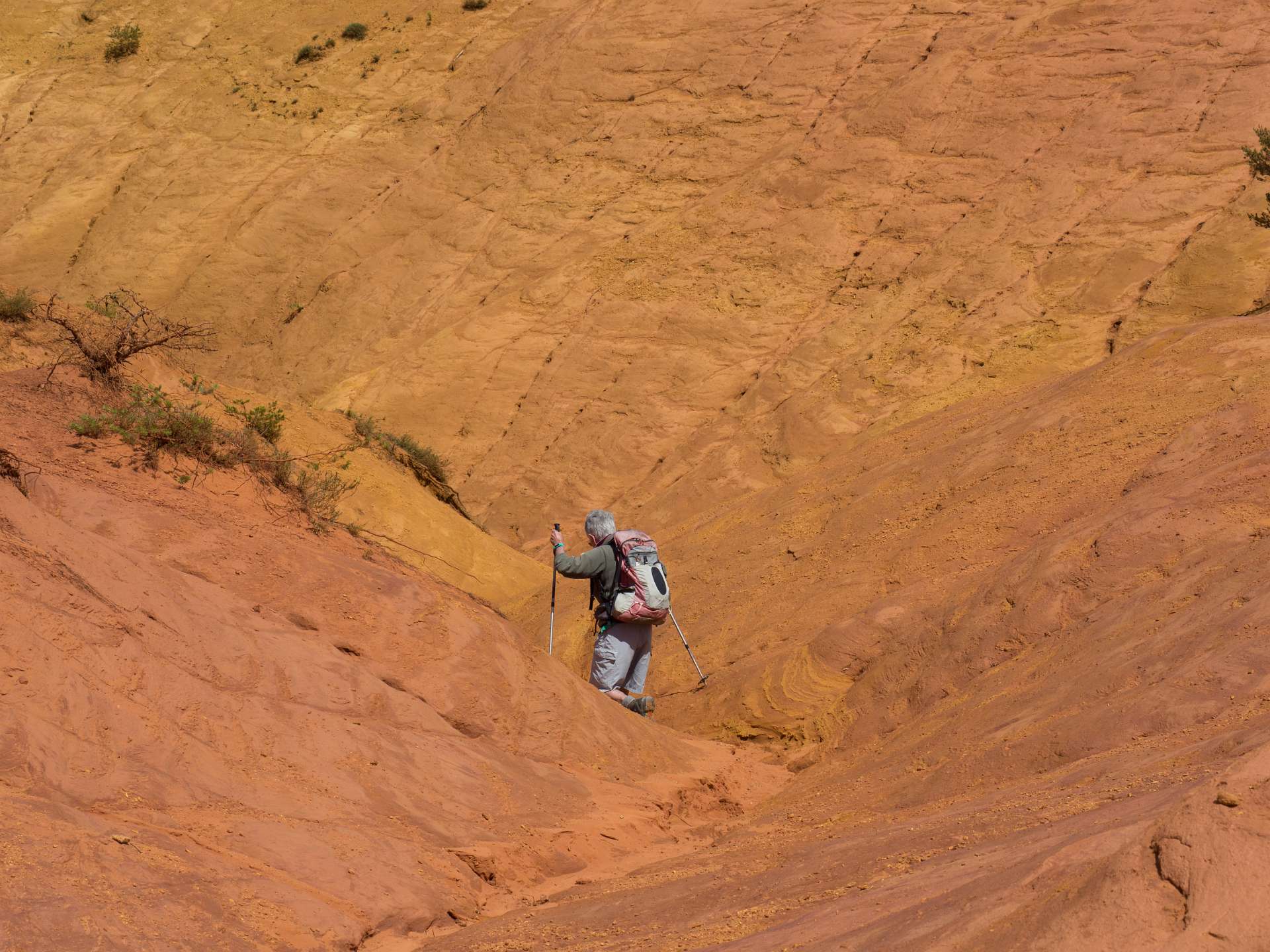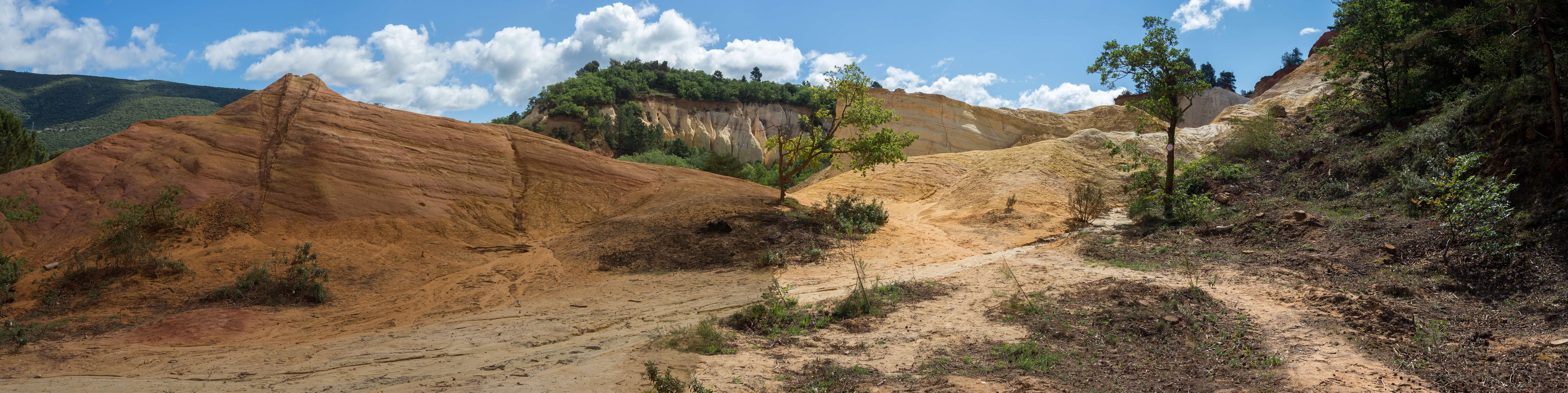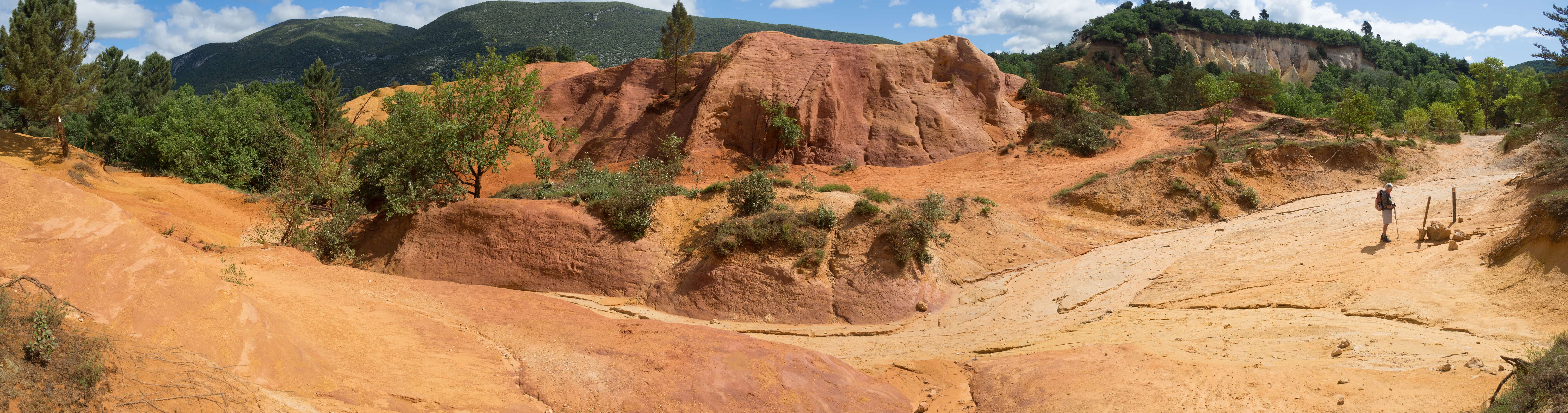 We liepen vanuit de camping naar de 'Sahara' het bekende Okergebergte onder Rustrel, 12 km.