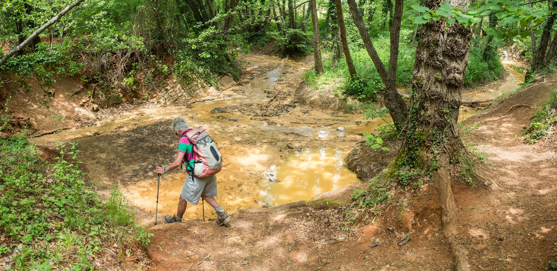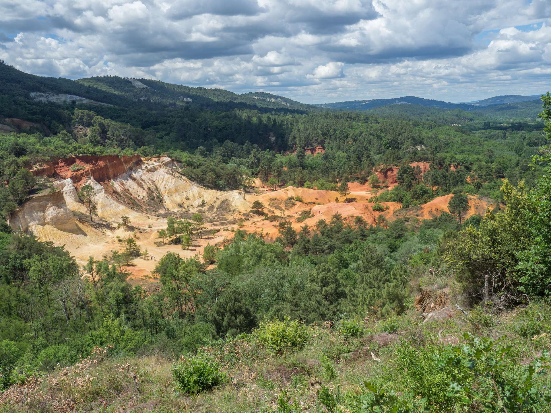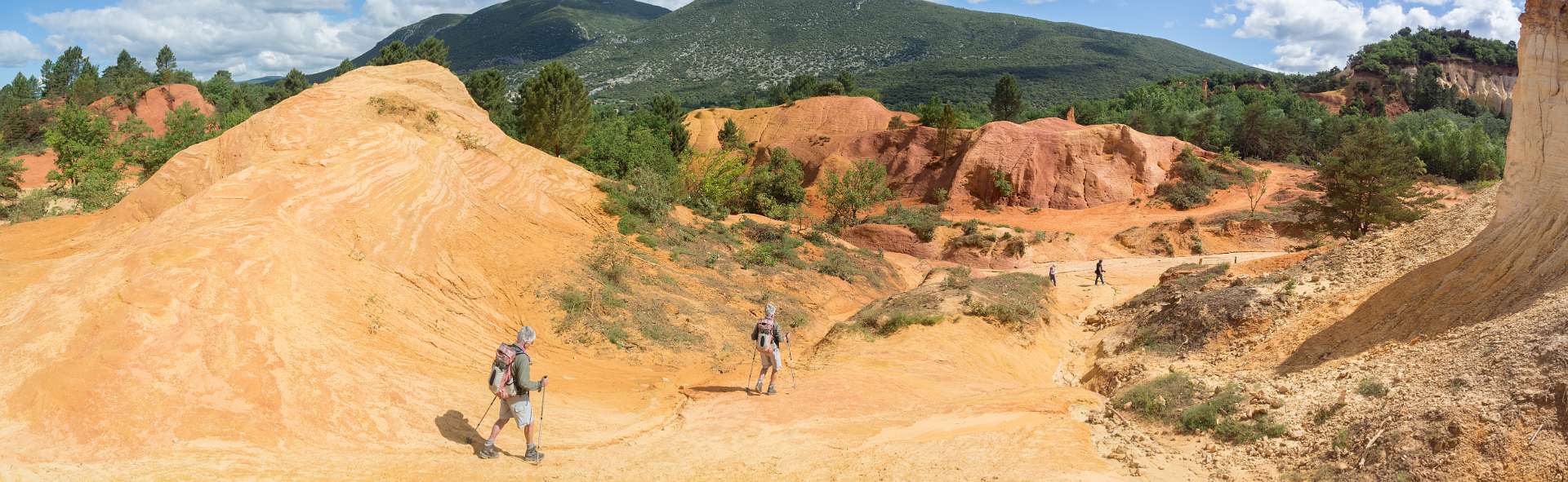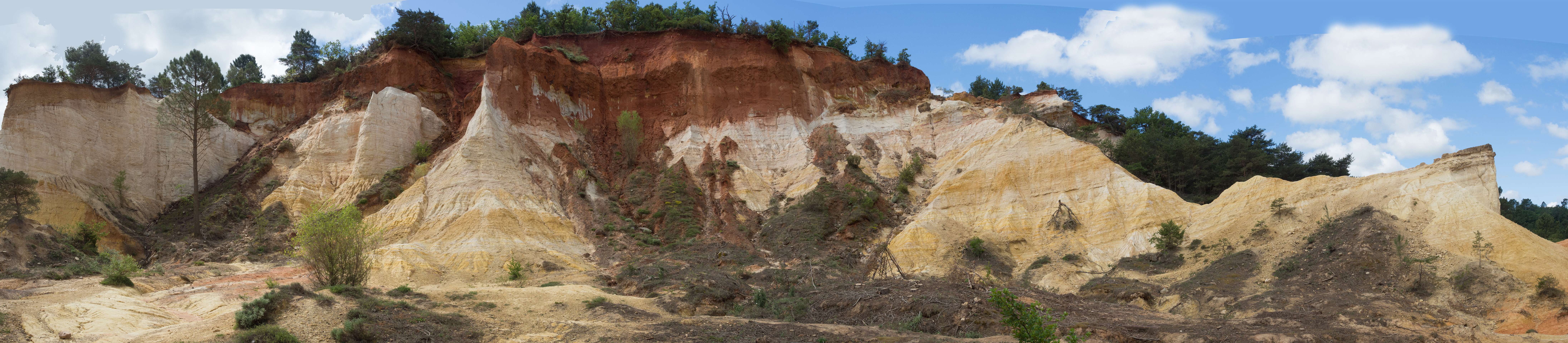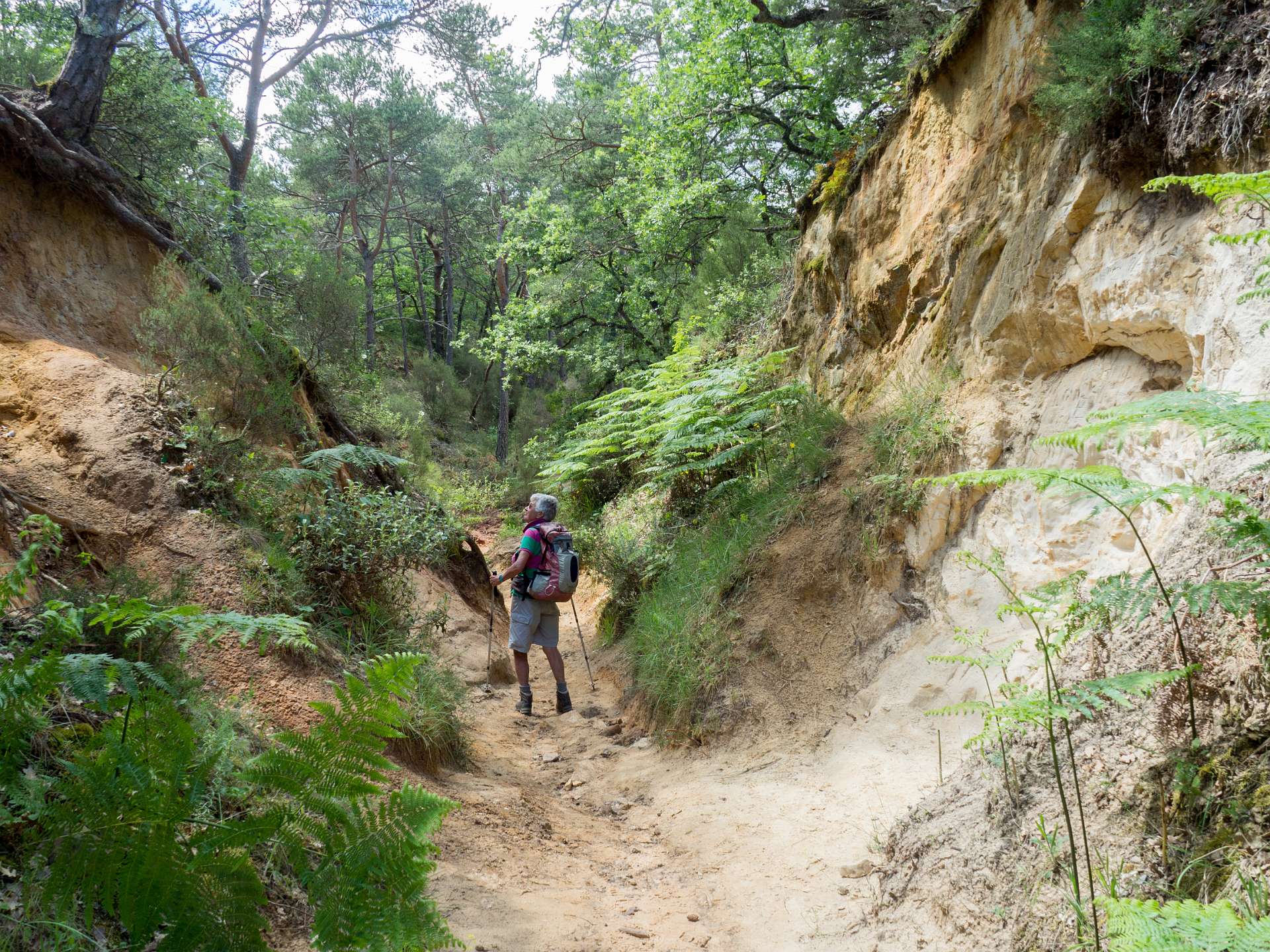 We liepen vanuit de camping naar de 'Sahara' het bekende Okergebergte onder Rustrel, 12 km.