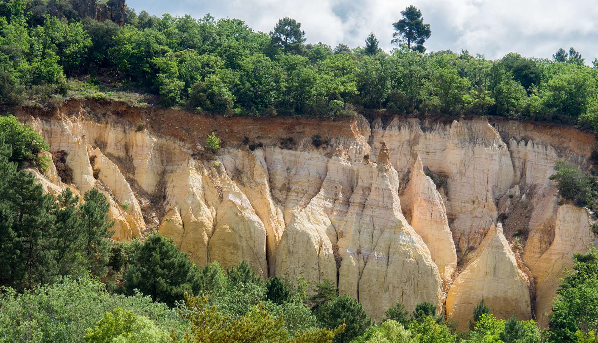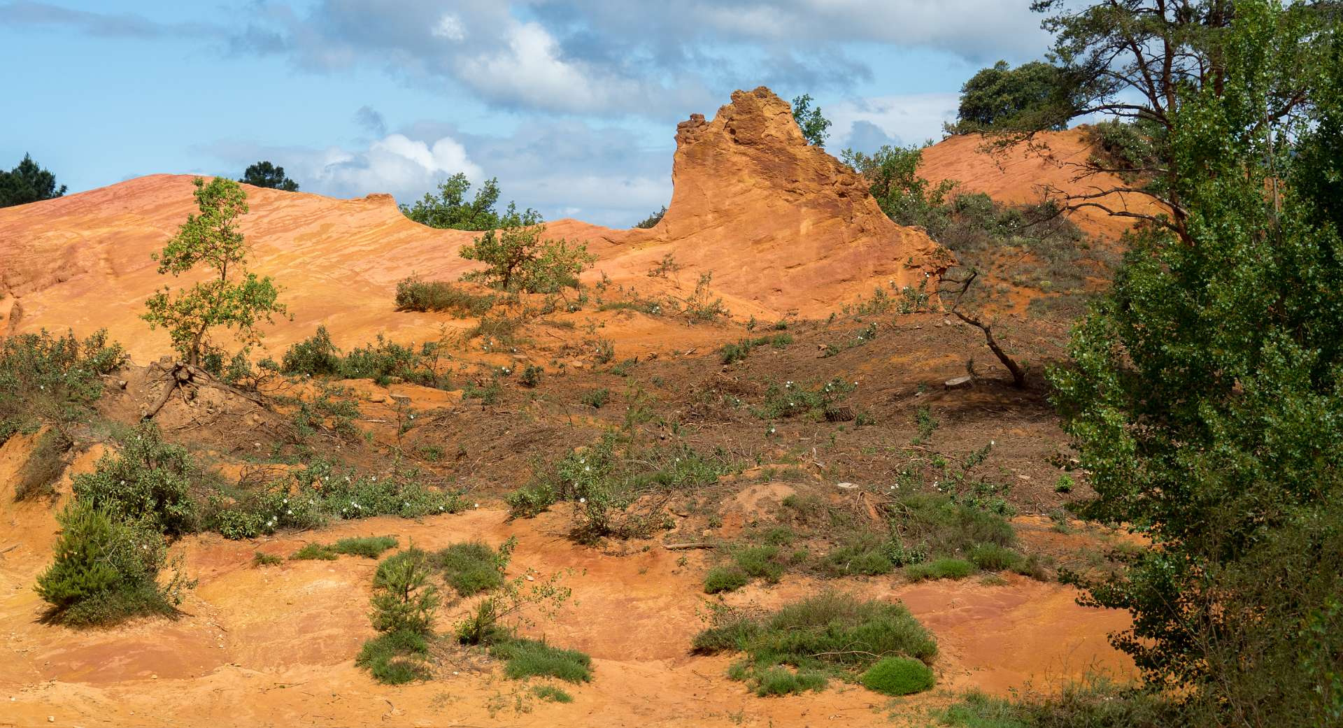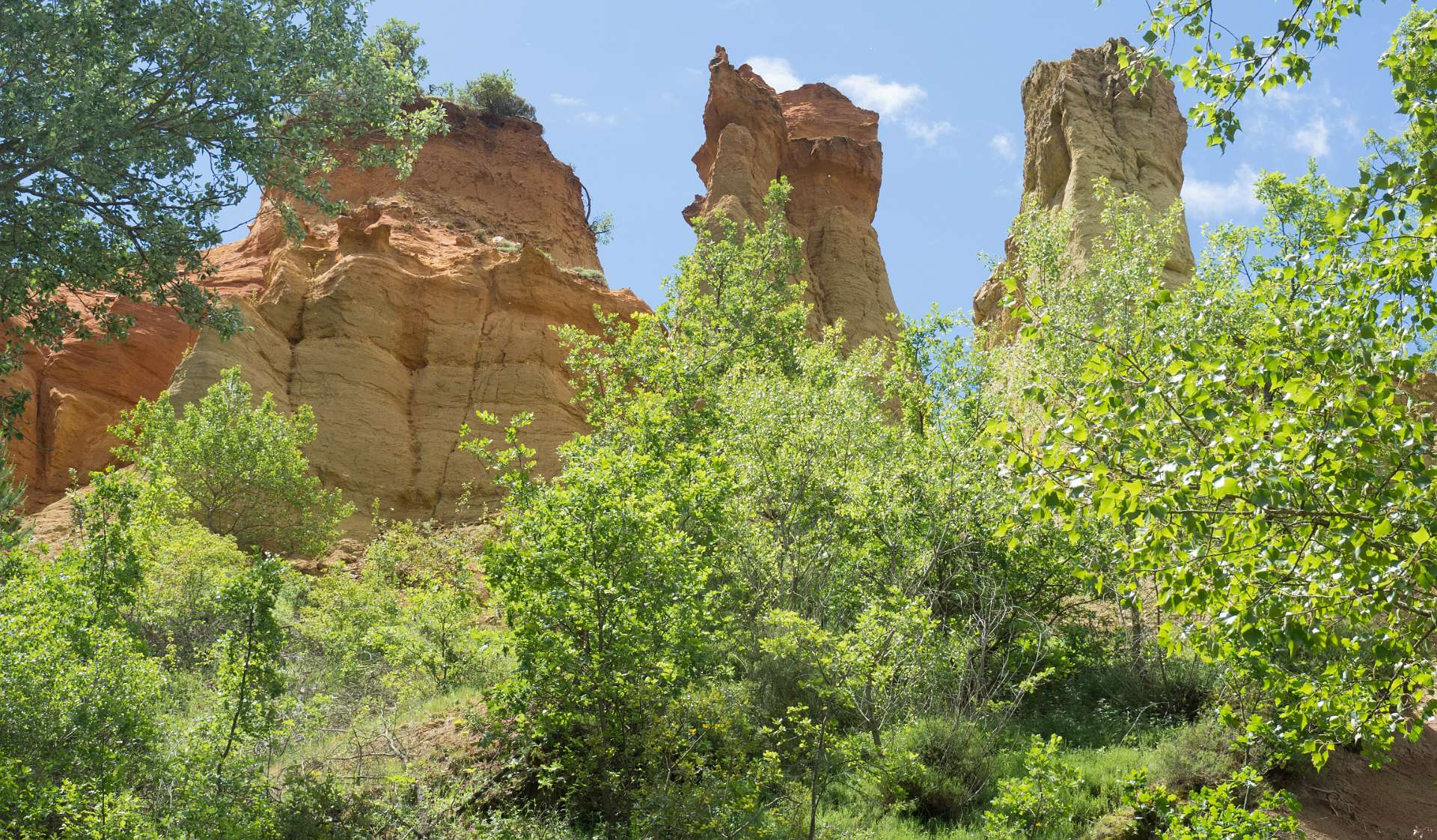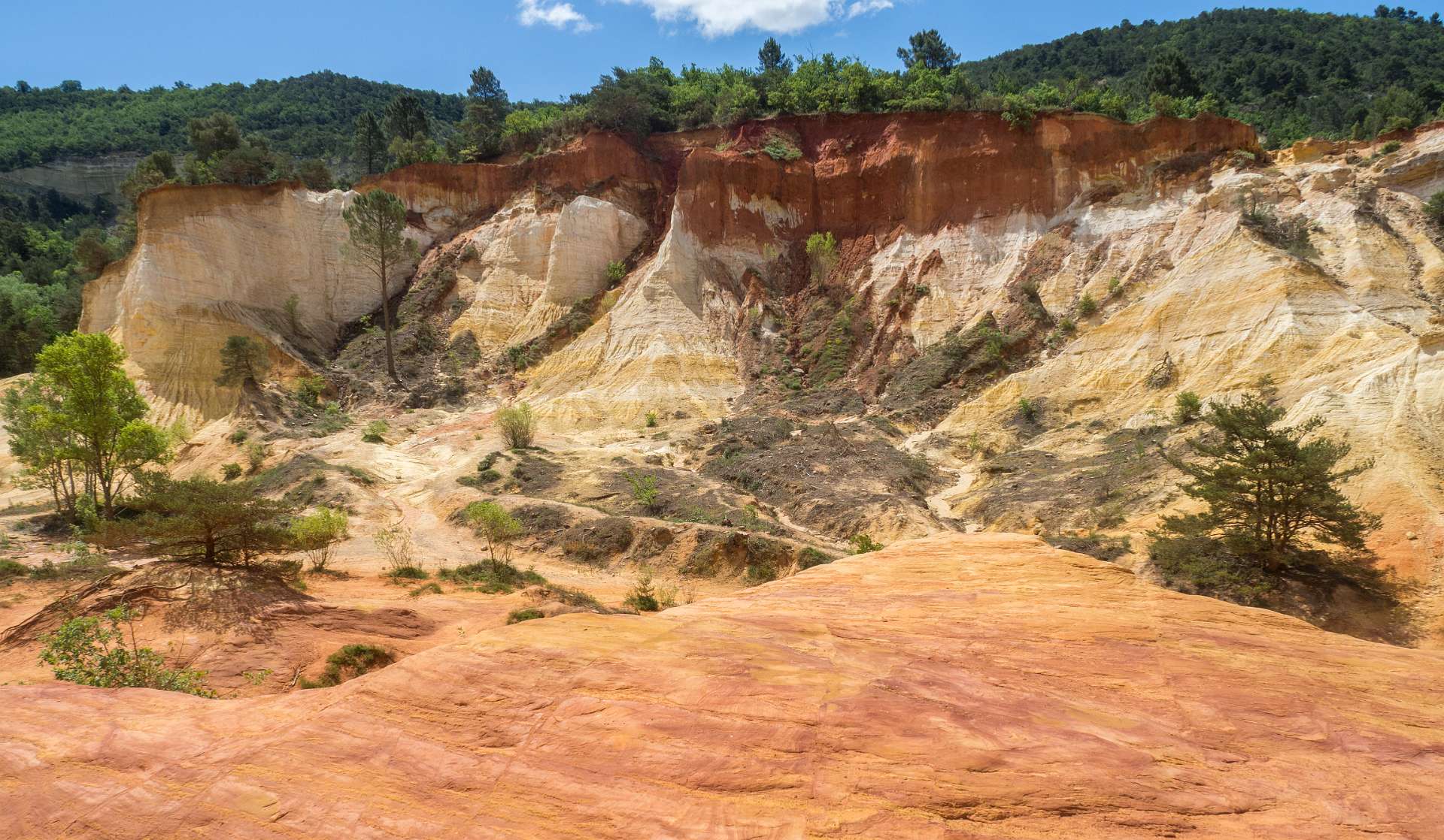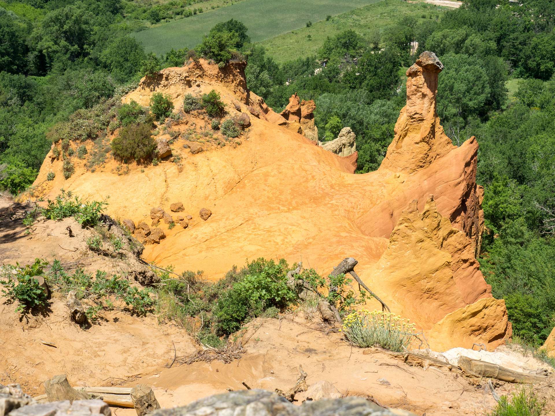 We liepen vanuit de camping naar de 'Sahara' het bekende Okergebergte onder Rustrel, 12 km.