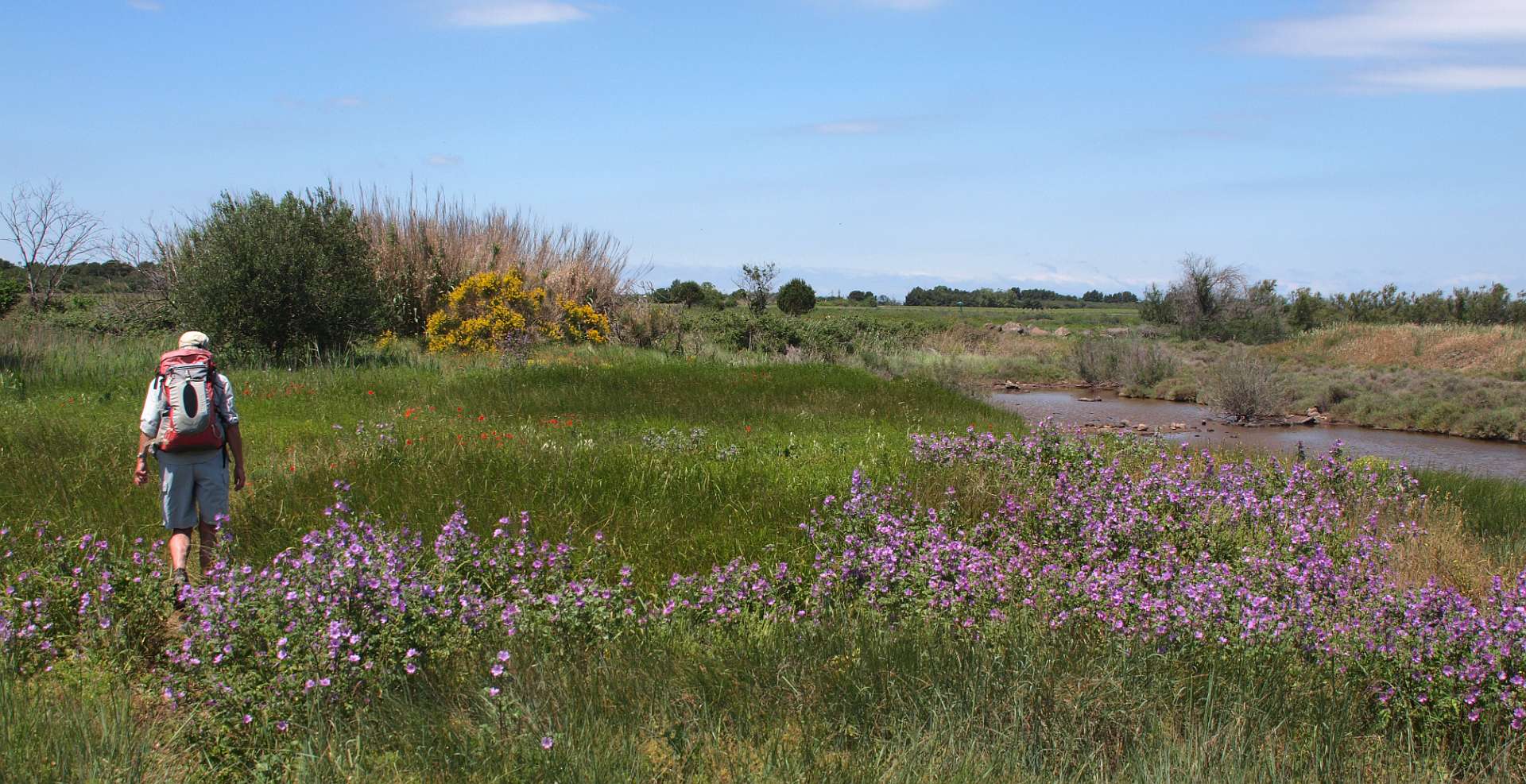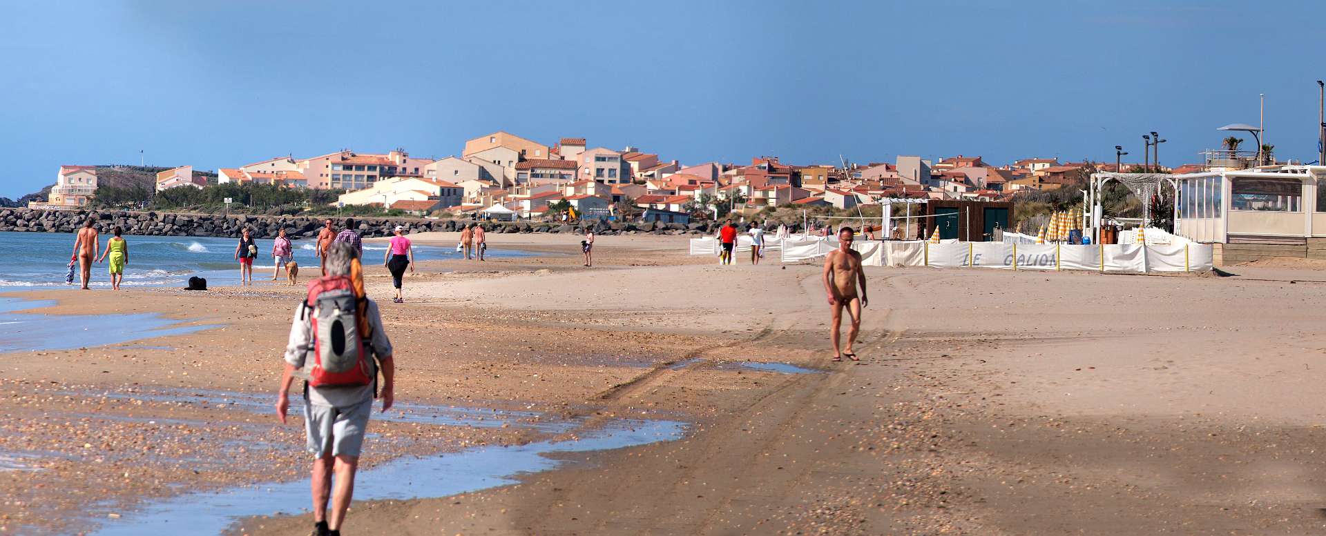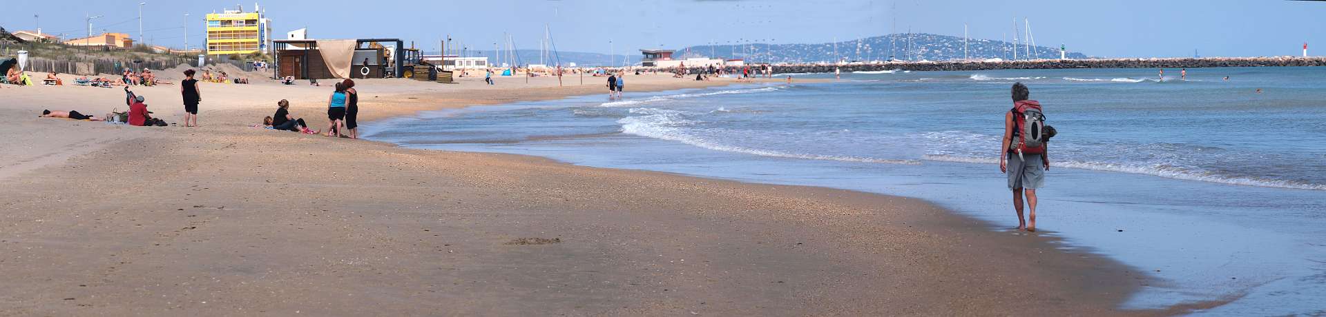 Vanuit de camping Beaurivage-plage in Marseillan-plage maakten we 2 wandelingen: naar Marseillan en naar Cap d'Agde. De wandeling naar Marseillan liep via een modderig pad langs het kanaal du Midi en was 14 km lang. De wandeling naar Cap d'Agde was veel langer dan we verwacht hadden, 21 km. Dit kwam omdat voor Cap d'Agde een omheind naturisten dorp ligt. Op de heenweg konden we daar vanaf het strand zo inlopen en gingen we aan de achterkant via een hek eruit, maar op de terug weg mochten we er niet in, tenzij we 6 Euro per persoon wilden betalen, waar we uiteraard niet deden. De consequentie was toen wel dat we een grote omtrekkende beweging om het naturisten dorp moesten maken.