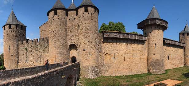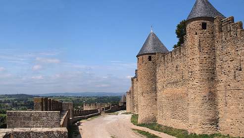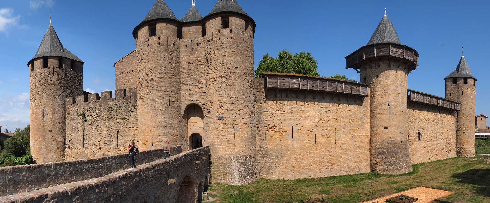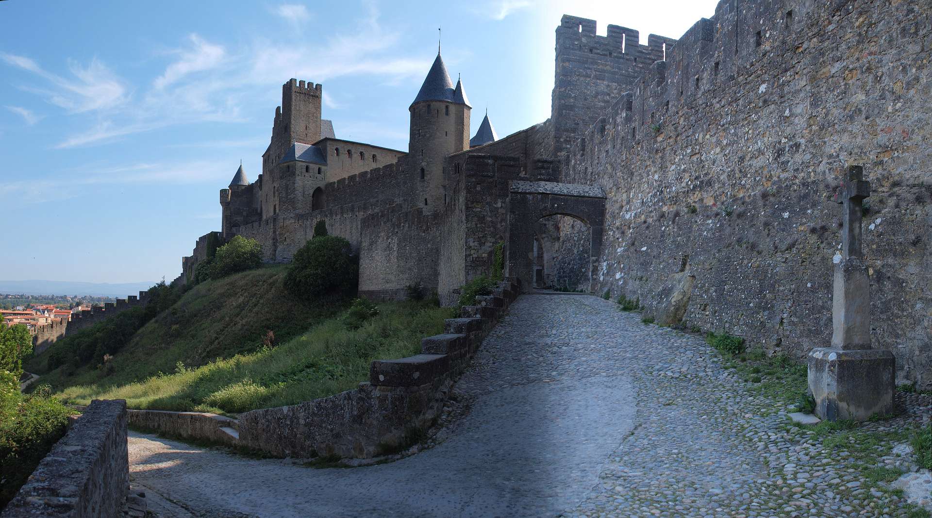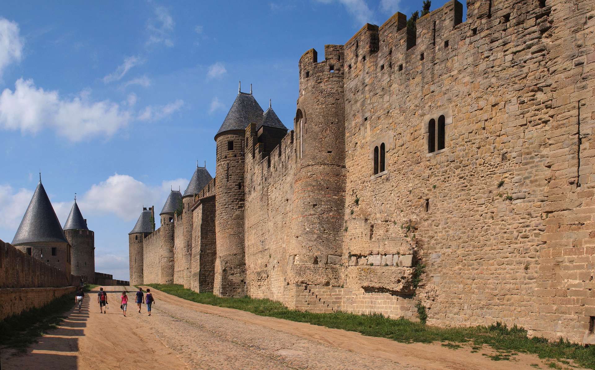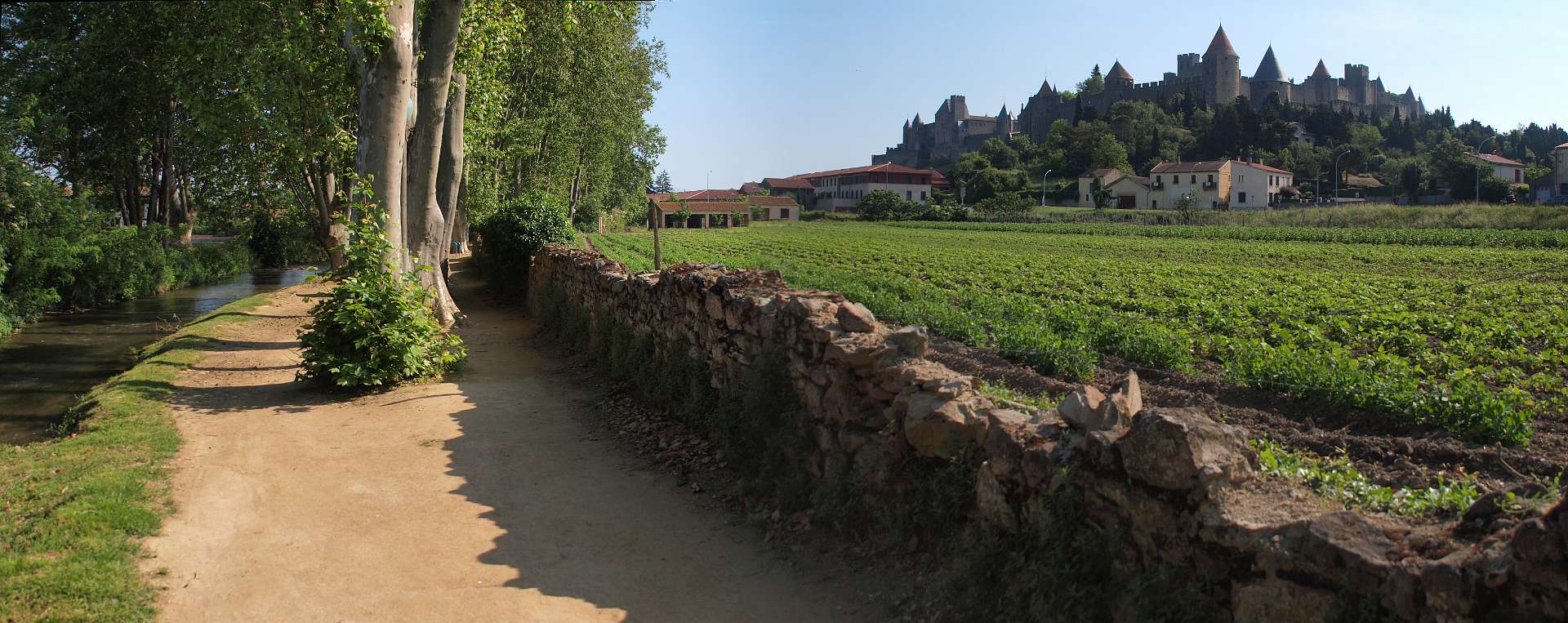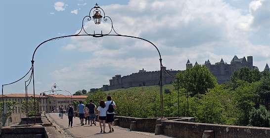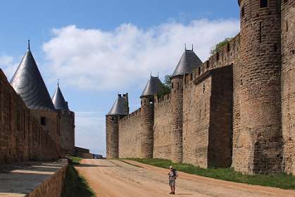 Vanuit camping 'La Cité' wandelden we naar de Cité en door Carcassonne