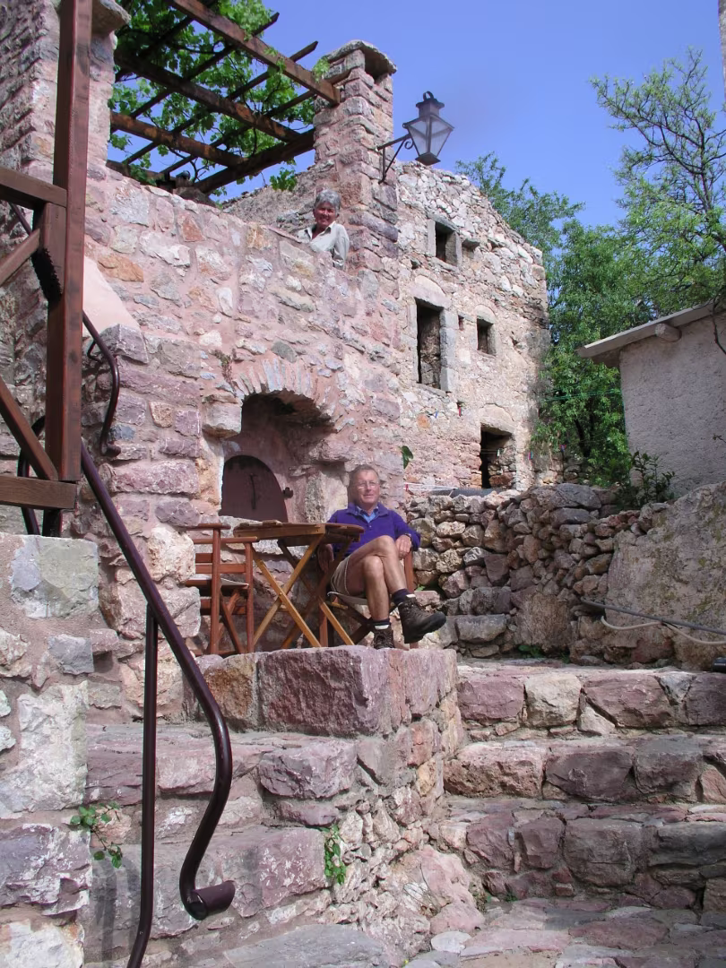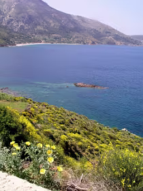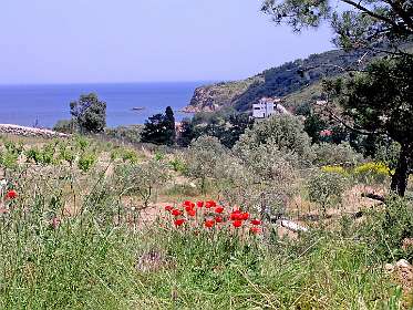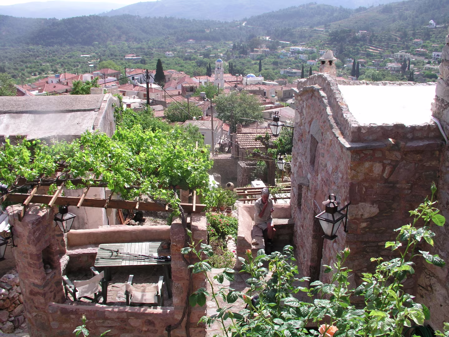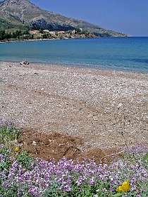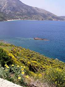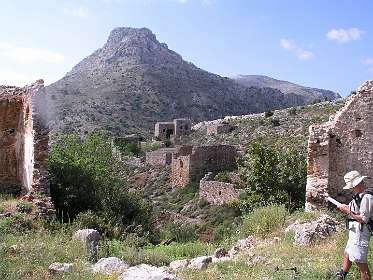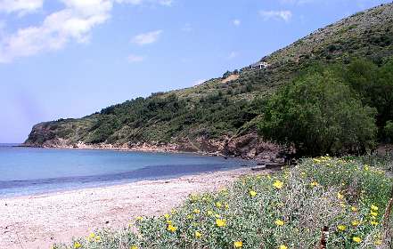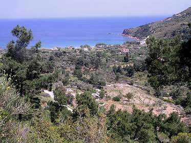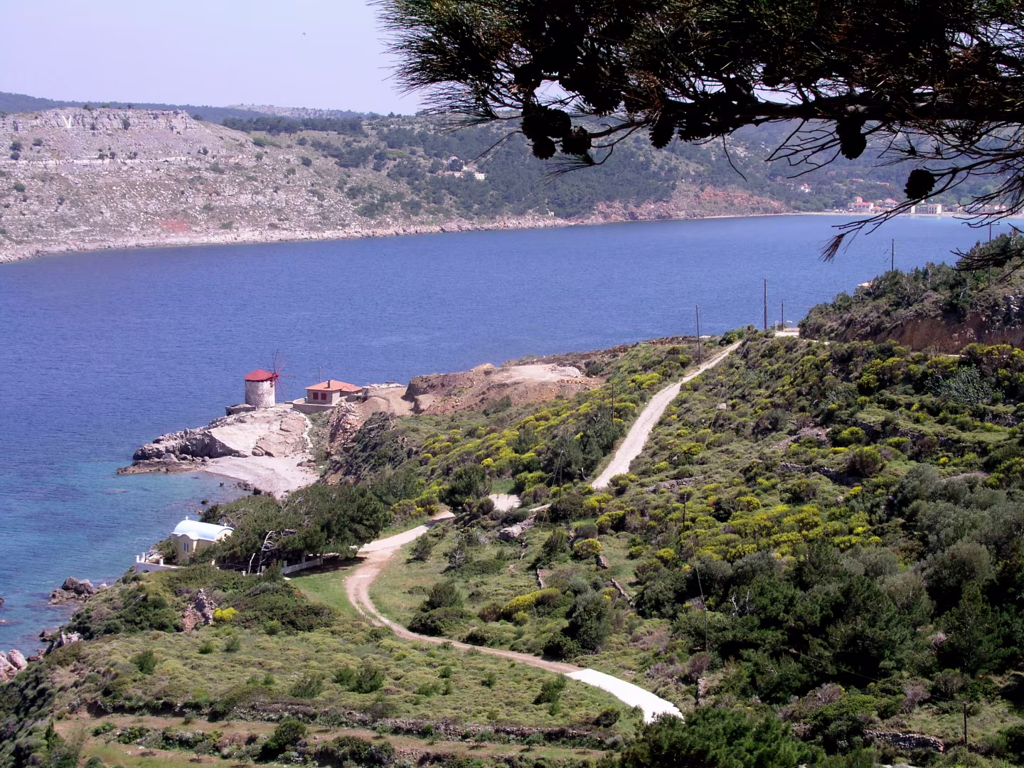 We klommen vanuit de Spilia accommodatie, die op 80 m hoogte ligt, verder 100 m omhoog en daalden af in het dal achter Spilia. We liepen dit dal geheel noordwaarts uit tot we bij de kust kwamen bij Naghos. Nadat we lekker een tijd op het strand gezeten hadden klommen we langs de kust weer omhoog en langs een windmolen omlaag naar de badplaats Marmora. Tot slot liepen we door de kambos (landbouwvelden) terug naar Spilia