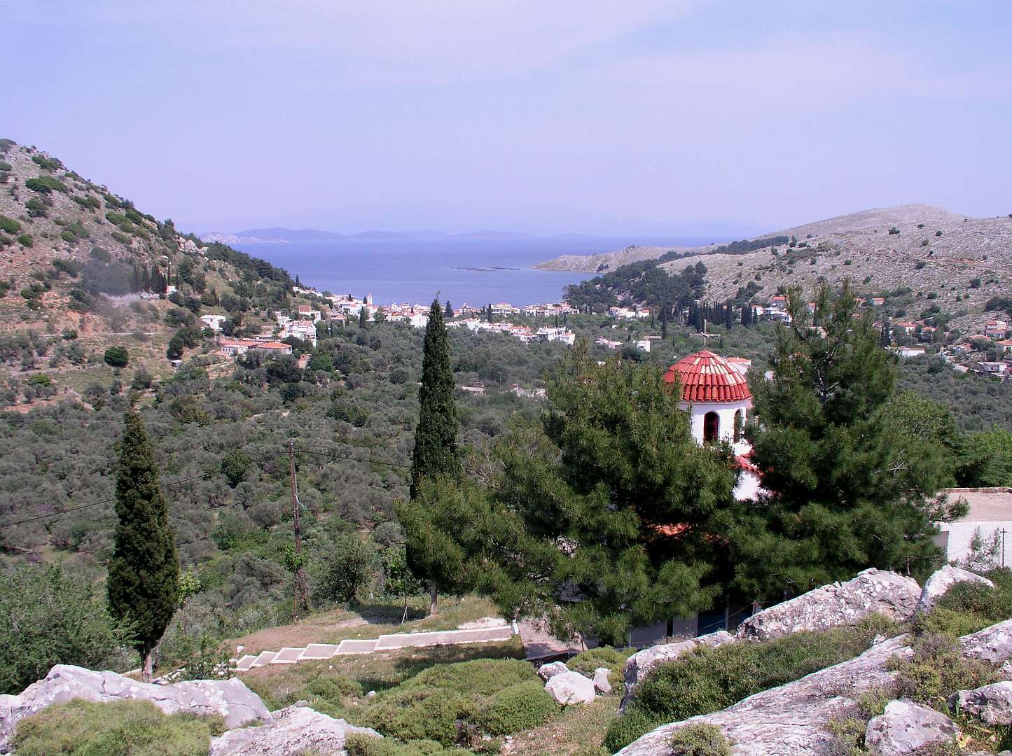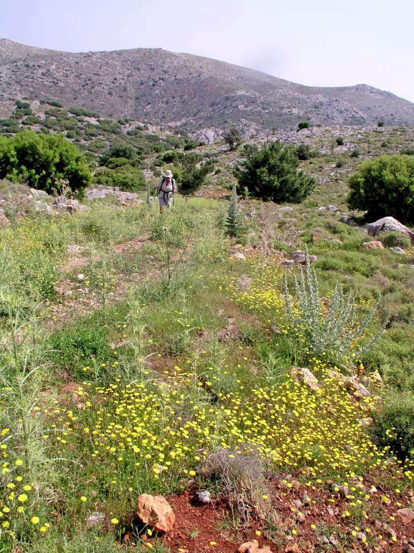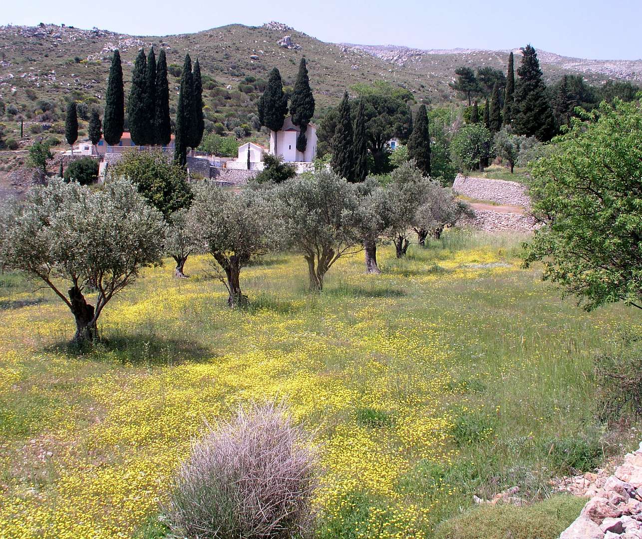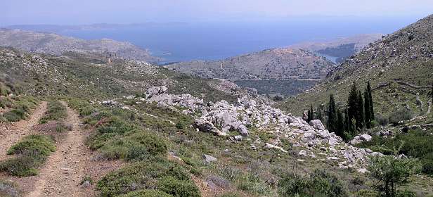 We liepen vanuit de appartementen Kounoupas in Langada in noordoostelijke richting naar de Delfini baai. Daar gingen we verder omhoog naar het klooster Ayii Anarjiri. Daarna nog verder omhoog naar een zadel en langs een geiten kraal. Daarna daalden we weer af naar de kust.