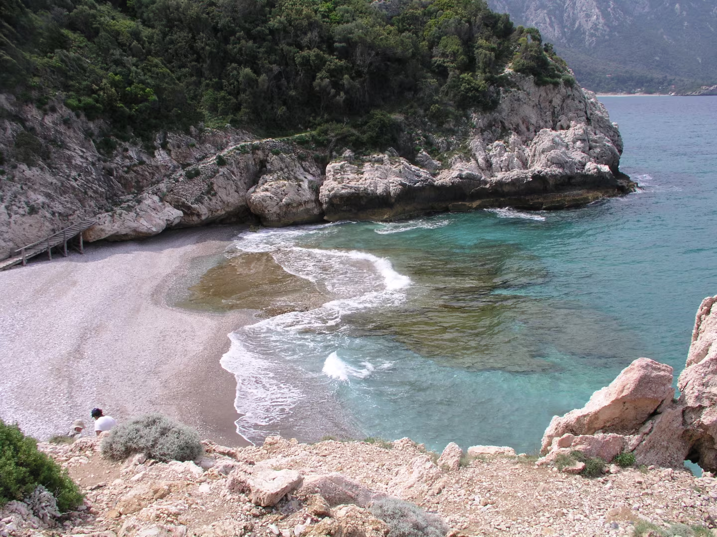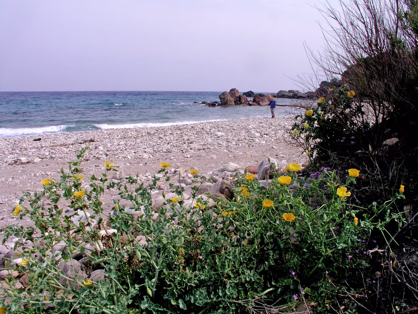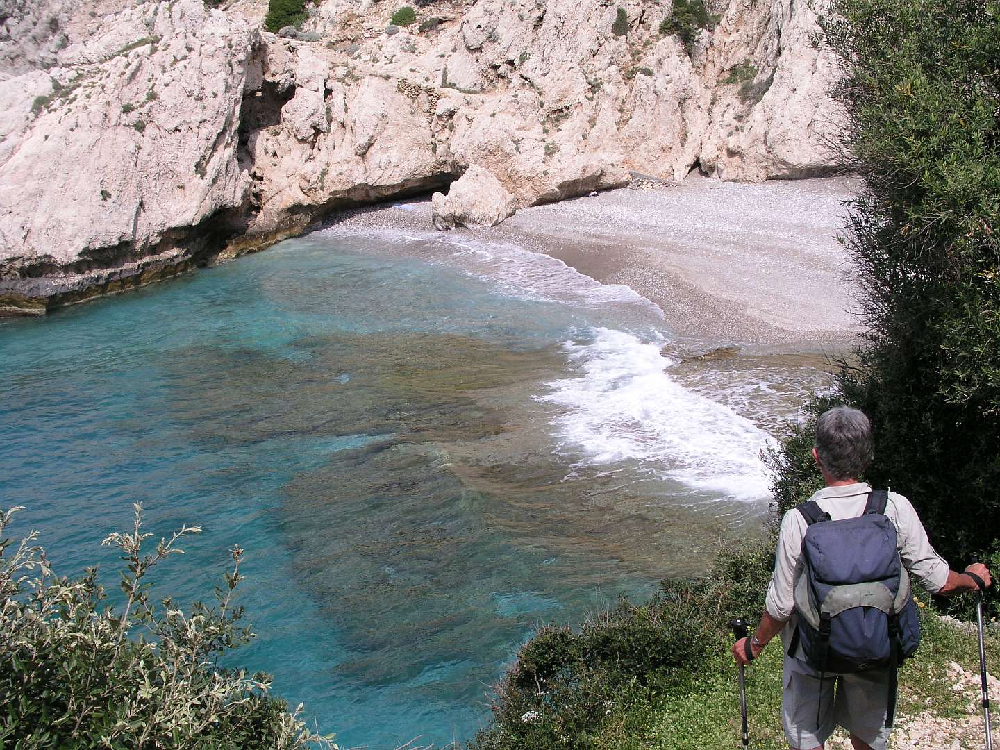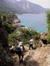 We liepen vanuit hotel Astir in Karlovasi in westelijke richting langs de haven van Karlovasi naar het Potami strand. We volgden het pad langs de kust. Een visser begeleide ons tot de Mikro Seitani baai, waar hij ging duiken. Wij vervolgden het kustpad tot het grotere Megalo Seitani strand. Langs dezelfde weg liepen we terug naar ons hotel en bewonderden onderweg nog de vangst van de visser.