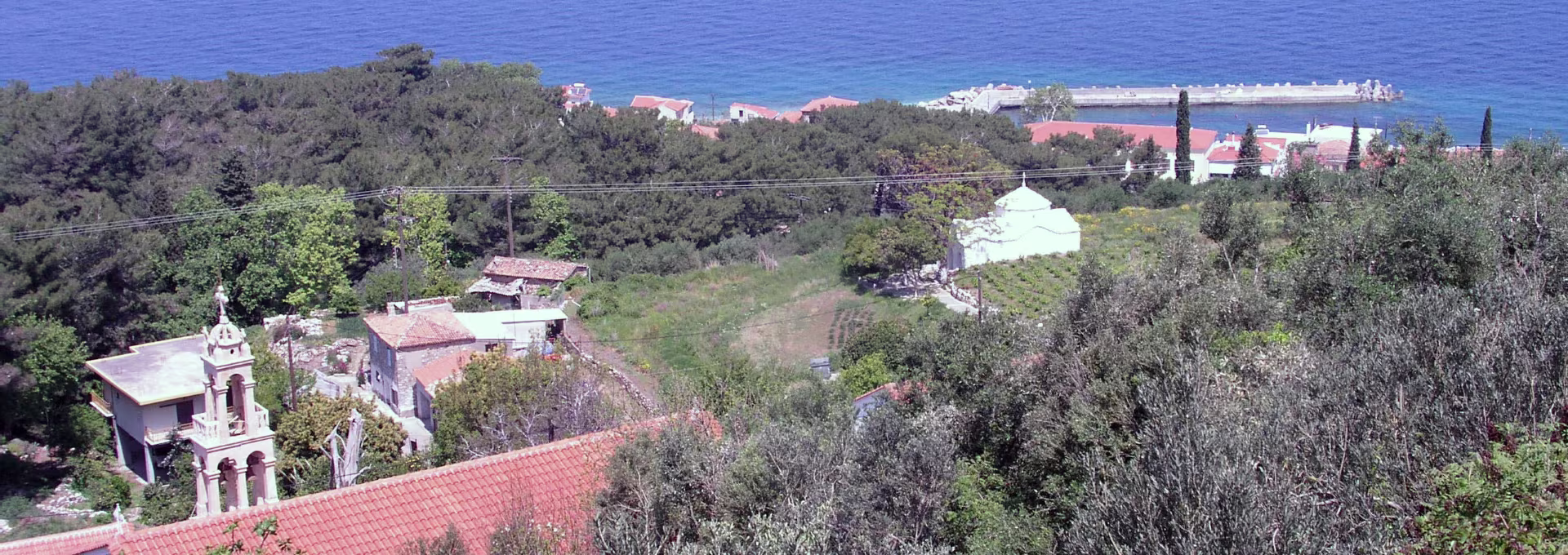 Op de eerste wandeldag 20 april 2007 werd er eerst vanuit hotel Iro in Platankia via Ayios Konstantinos naar het boven dorp Ano Ayios Konstantinos gelopen (rode spoor). Aan het einde van de middag liepen we vanuit hotel Iro in Platankia nog een rondje bij de ingang van de Nachtegalenvallei ten zuiden van het hotel (gele spoor)l.