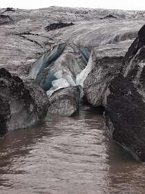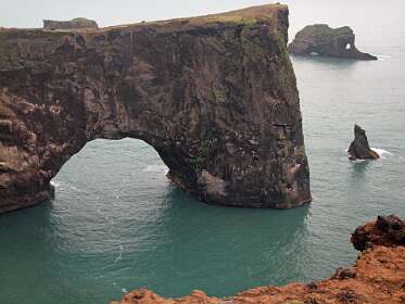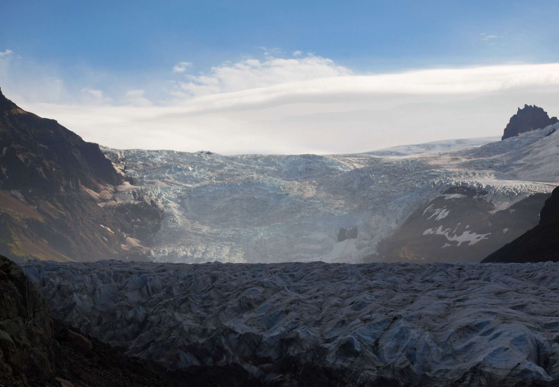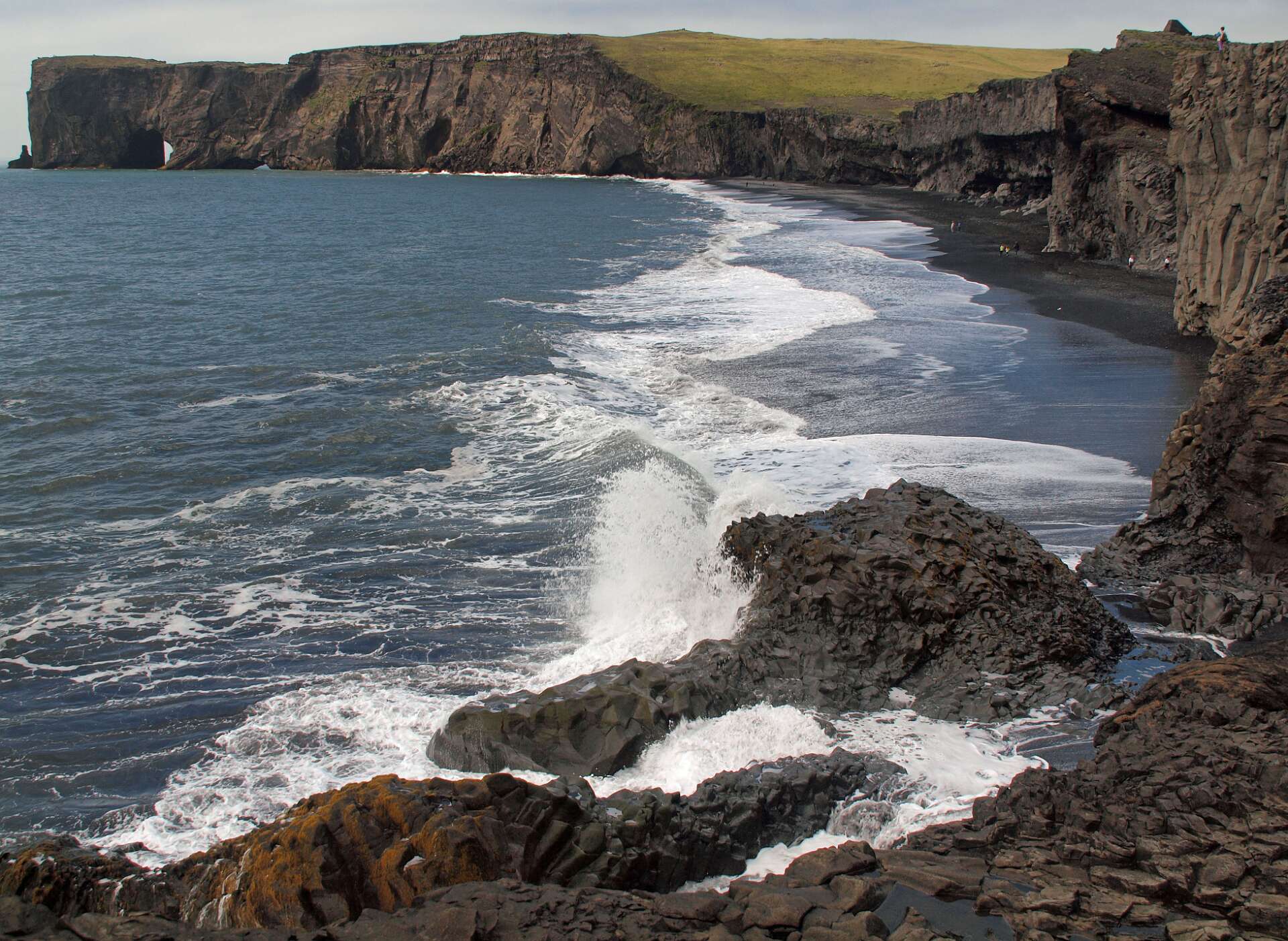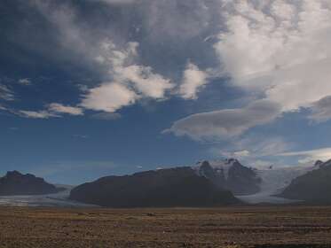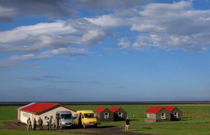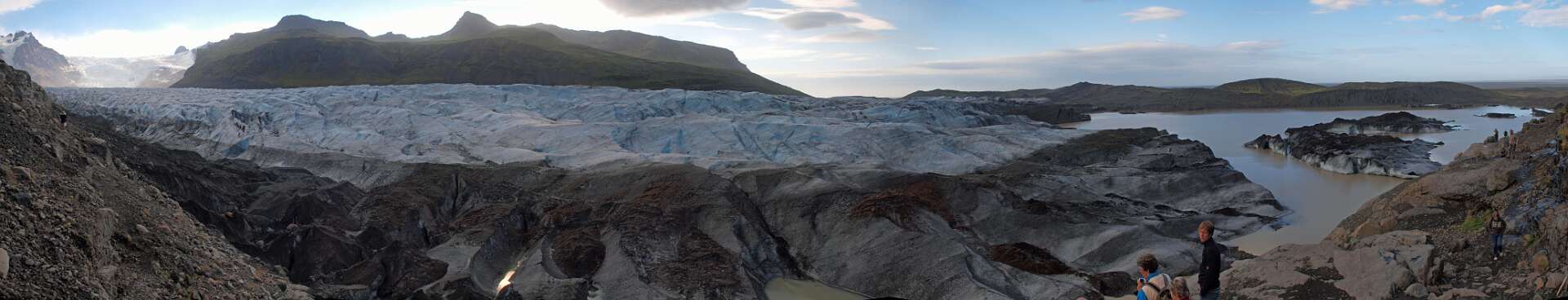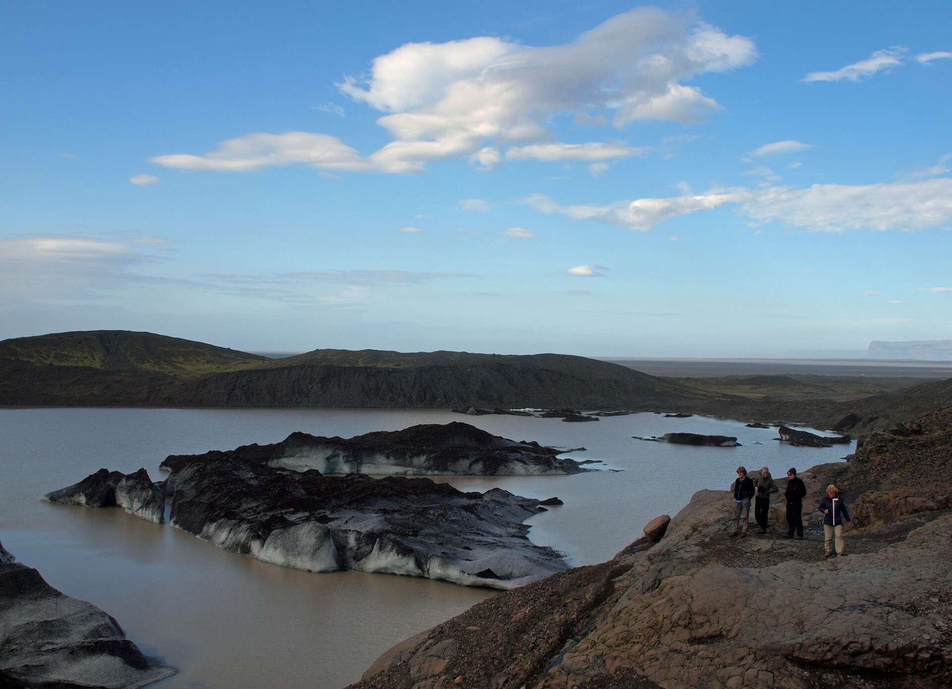 Via weg Nr 1 reden we naar Reyjavik. Eerst bezochten we het einde van de Svinafellsjökul gletcher. Daarna reden we over de indrukwekkend vlakke, grijze stenige spoelzandvlakte van de Vatnajökull gletcher langs de zuidkust van IJsland. Vlakbij Vik, het zuidelijkste punt van het vasteland, bezochten we de vogelrots van Dyrholey. Vervolgens de Sólheimajökull gletcher en daarna de watervallen van Skogar. Aan het einde van de middag kwamen we aan bij ons onderkomen in Reykjavik, een gebouw van de Scouting, aan de rand van het centrum van de stad.