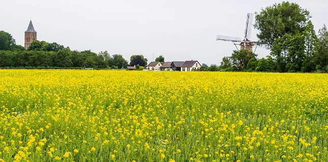 Vanaf een parkeerstrook bij de molen Korenbloem liepen we 9 km van het klompenpad