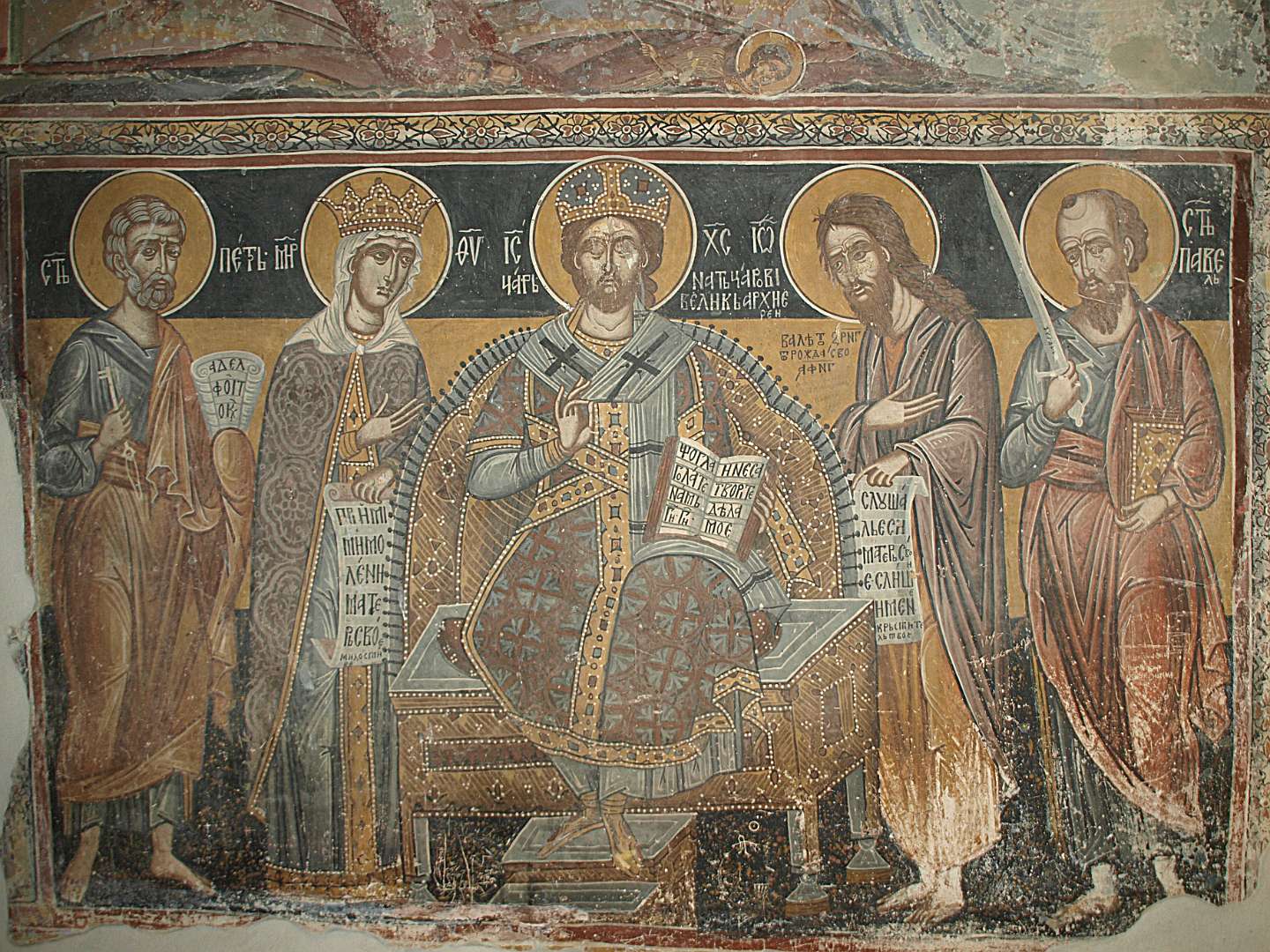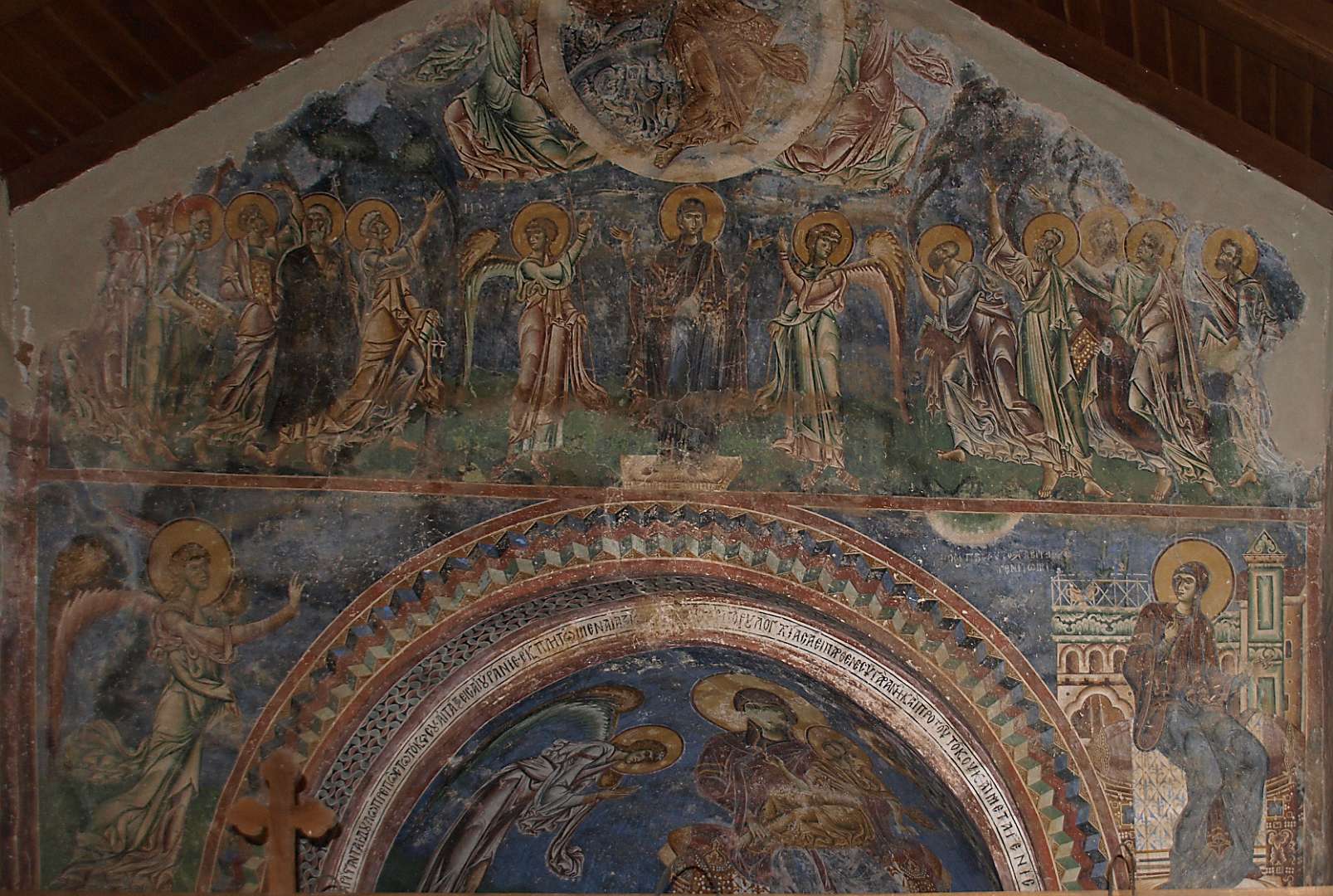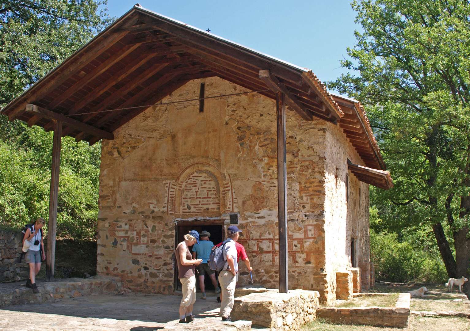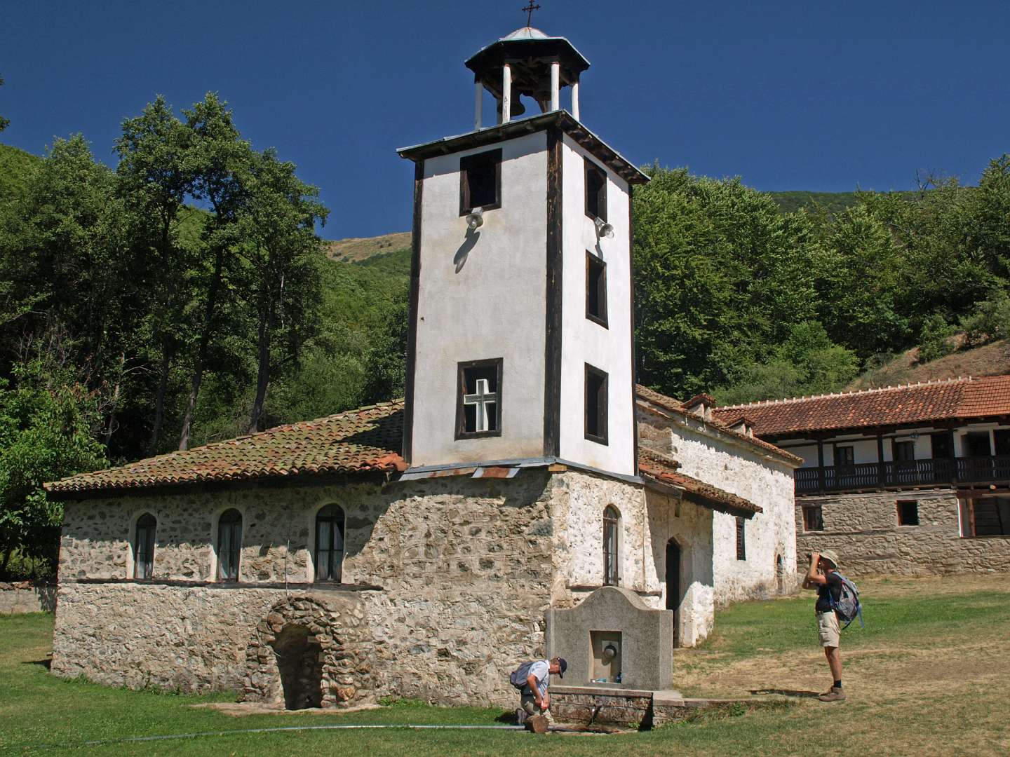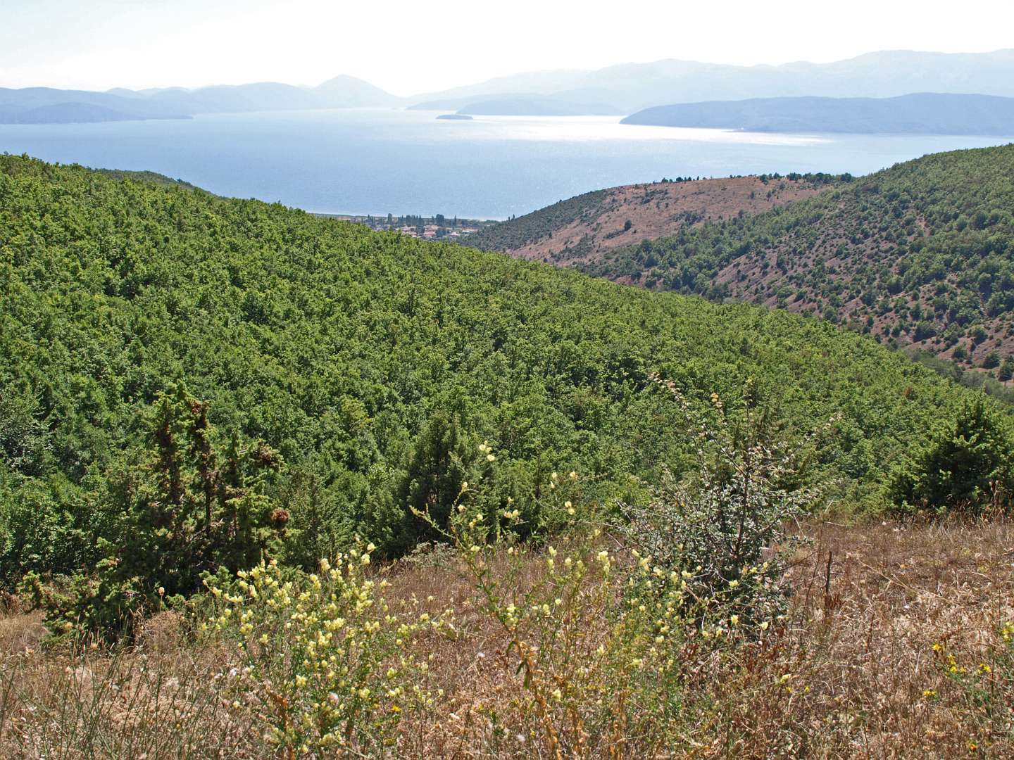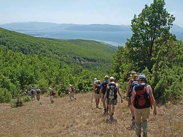 Per bus rijden we via een slingerende weg omhoog naar de bergpas Livada (1568 m), de waterscheiding tussen het Meer van Ohrid en het Prespa Meer. Vanaf de kam van het Galicica gebergte hebben we een prachtig panorama over de Ohrid meer. Een aantal minuten later zien we aan de andere kant van de berg het andere, op +/- 850 m boven de zeespiegel gelegen meer van Prespa. Korte pauze met een verfrissing op het terras van een hotel. Dan rijden we naar de oostzijde van het Prespameer, naar het kleine klooster van Georgius in Kurbinovo, met bijzondere fresco’s uit 1191 die tot de mooiste van het land gerekend worden. Bovenlangs het meer wandelen we naar een het klooster van Slivnica, met een kerk met muurschilderingen uit de 17e eeuw. Na de wandeling rijden we om het bergmassief van Pelister heen, naar ons hotel in het hart van dit alpiene bergland. Lengte van de wandeling: 9 km, 3 uur wandelen, 150m stijgen en 400m dalen.
