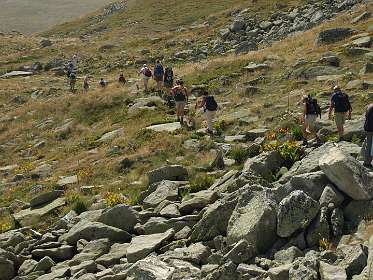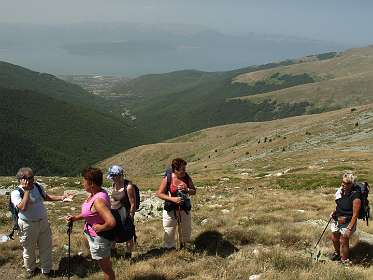 Met terreinwagens dringen we diep het Pelistergebergte in. Na een rit van ruim 1 ½ uur stappen we op 2250 meter hoogte uit en maken samen met een lokale berggids een prachtige wandeling rondom de twee kaarmeertjes, die op respectievelijk 2180 en 2200 m hoogte liggen. Dit zijn de ‘Ogen van de Pelister’, die in een door gletsjers uitgesleten kom aan de oostzijde van de 2600 meter hoge top van de Pelsiter liggen. Bij helder weer hebben we vanaf een van de toppen schitterend uitzicht het Prespameer in de diepte. Na de wandeling dalen we met de terreinwagens weer af naar ons berghotel. Lengte van de wandeling: 10 km, 5 uur wandelen, 300m stijgen en dalen.