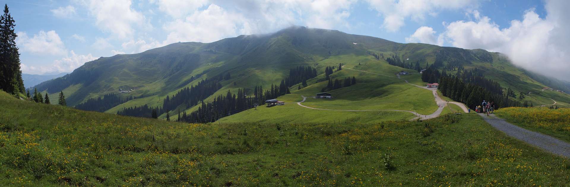 We gingen met de bus naar Kirchberg en met de Fleckalm bahn naar 1800 m waar we de wandeling begonnen.