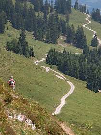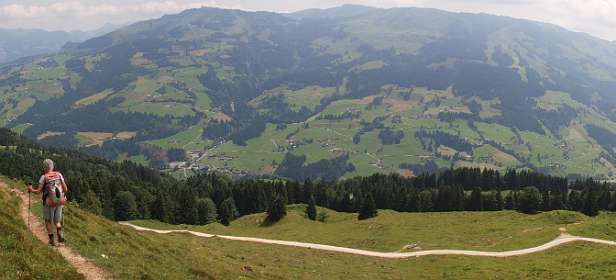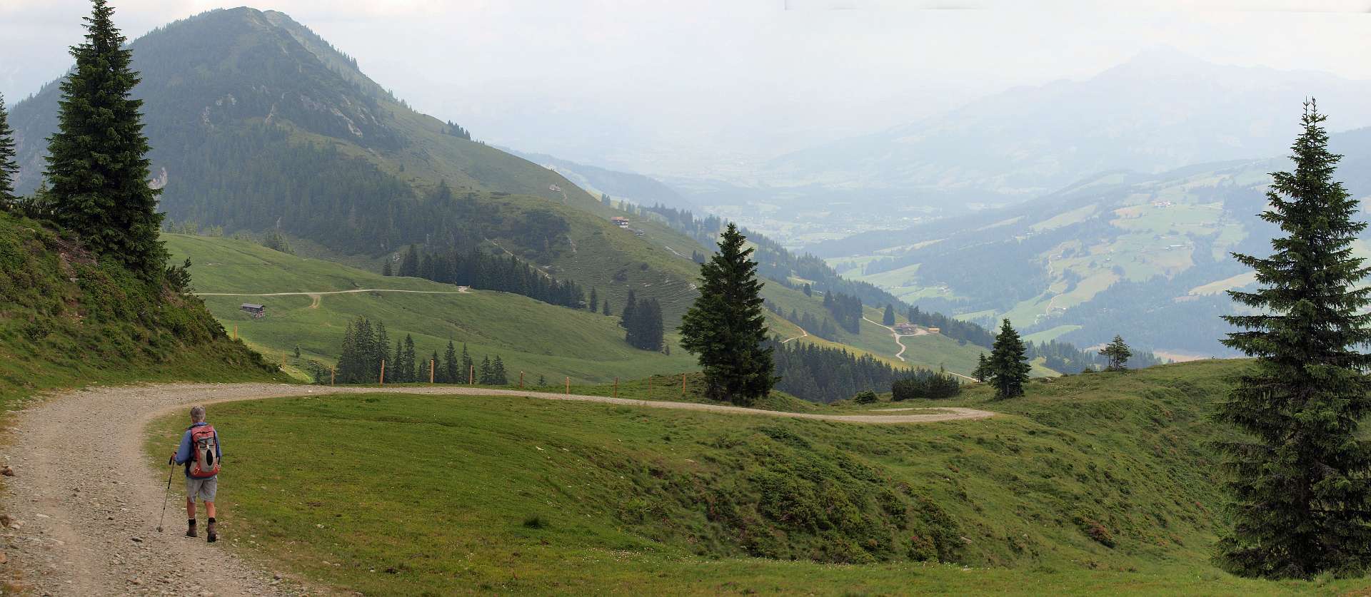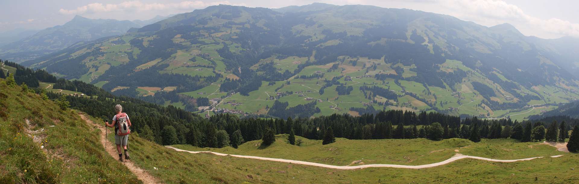 We gingen met de Alpnerosenbahn omhoog en liepen daarna langs de Kreuzjochl see en de Kobinger hütte naar Kirchberg, waar we de bus terug namen.