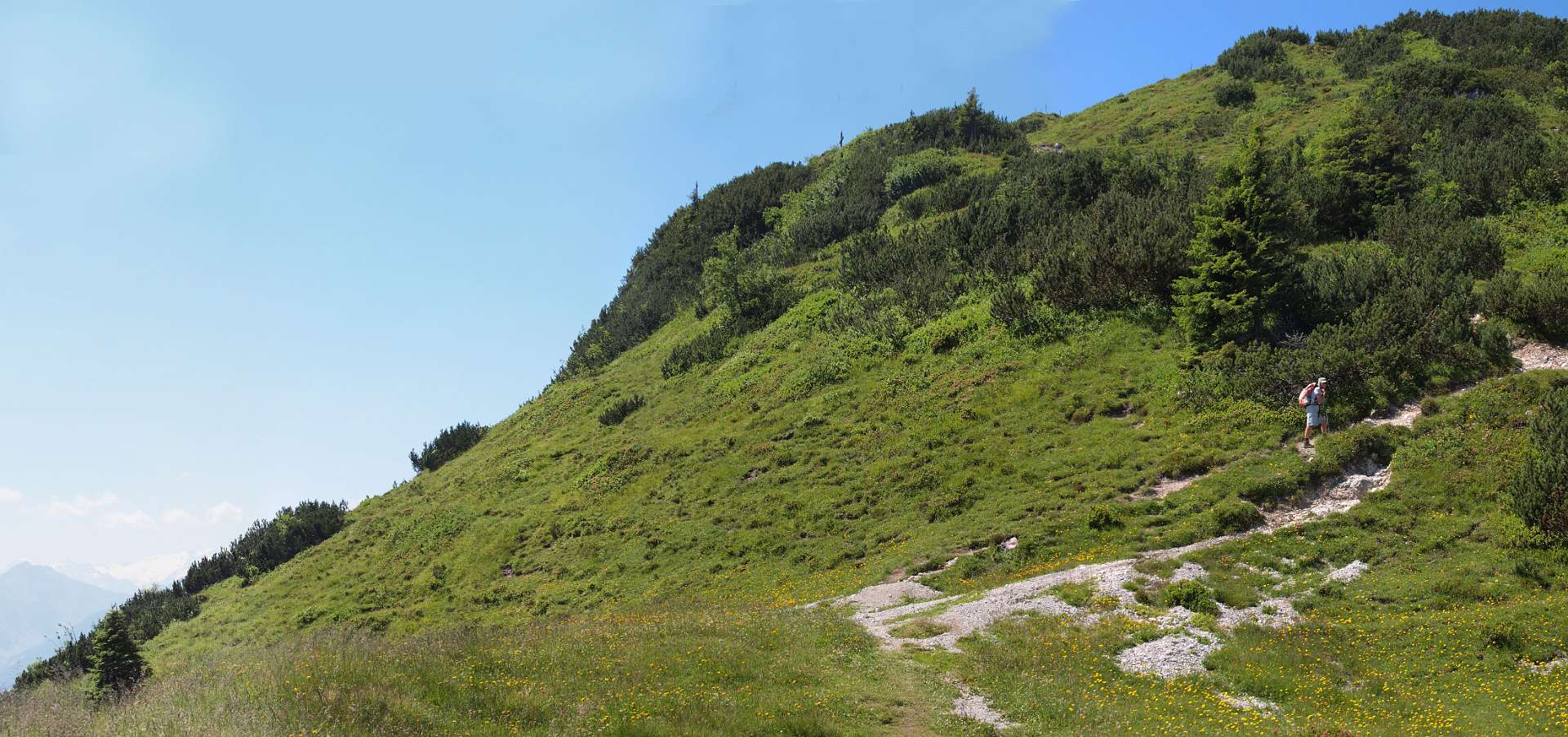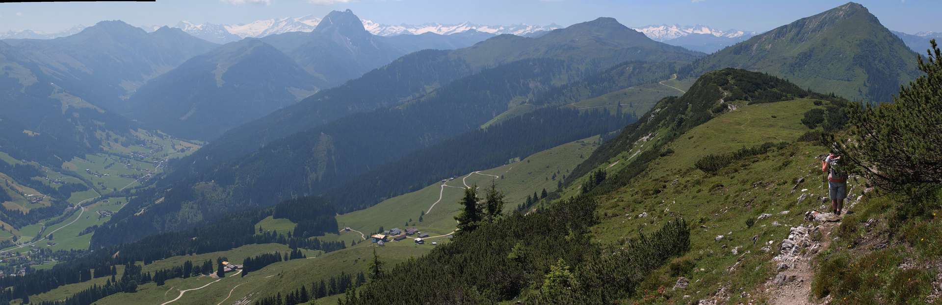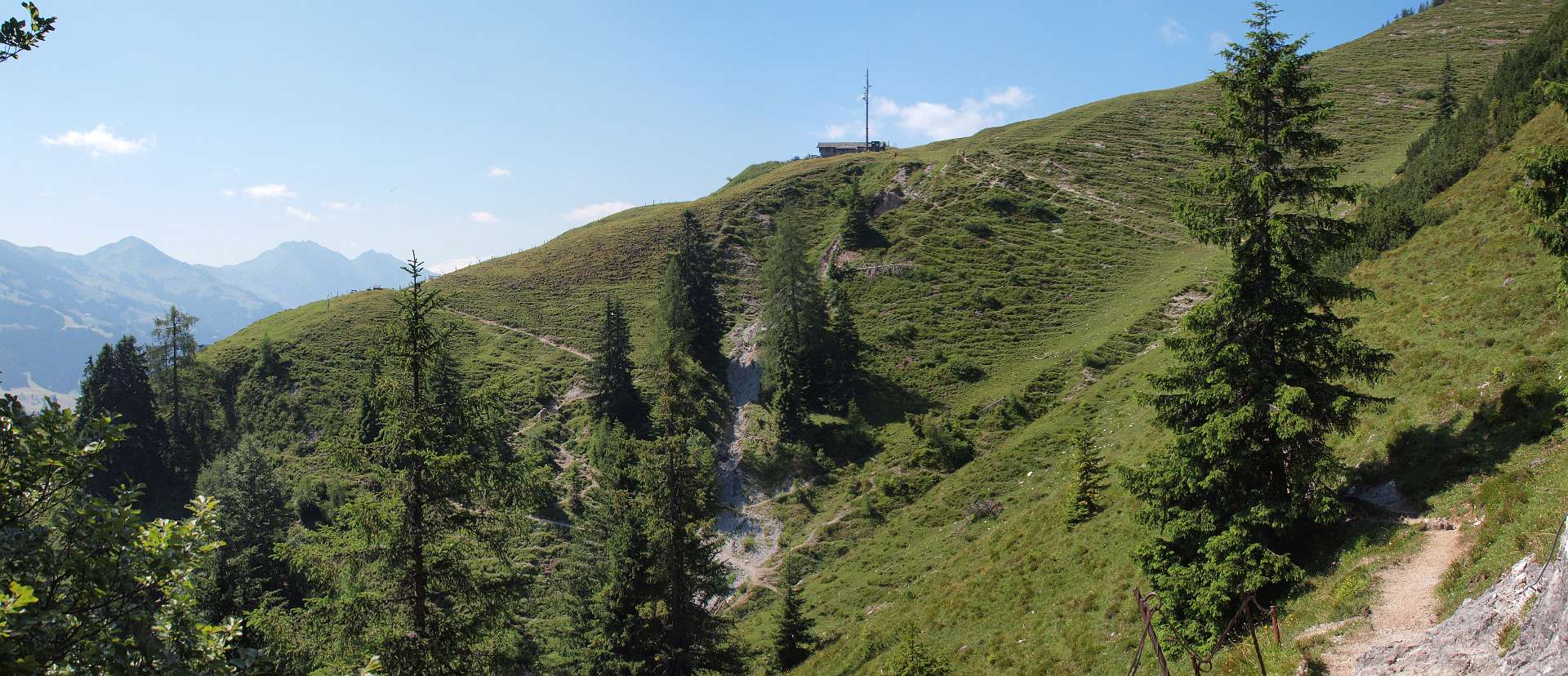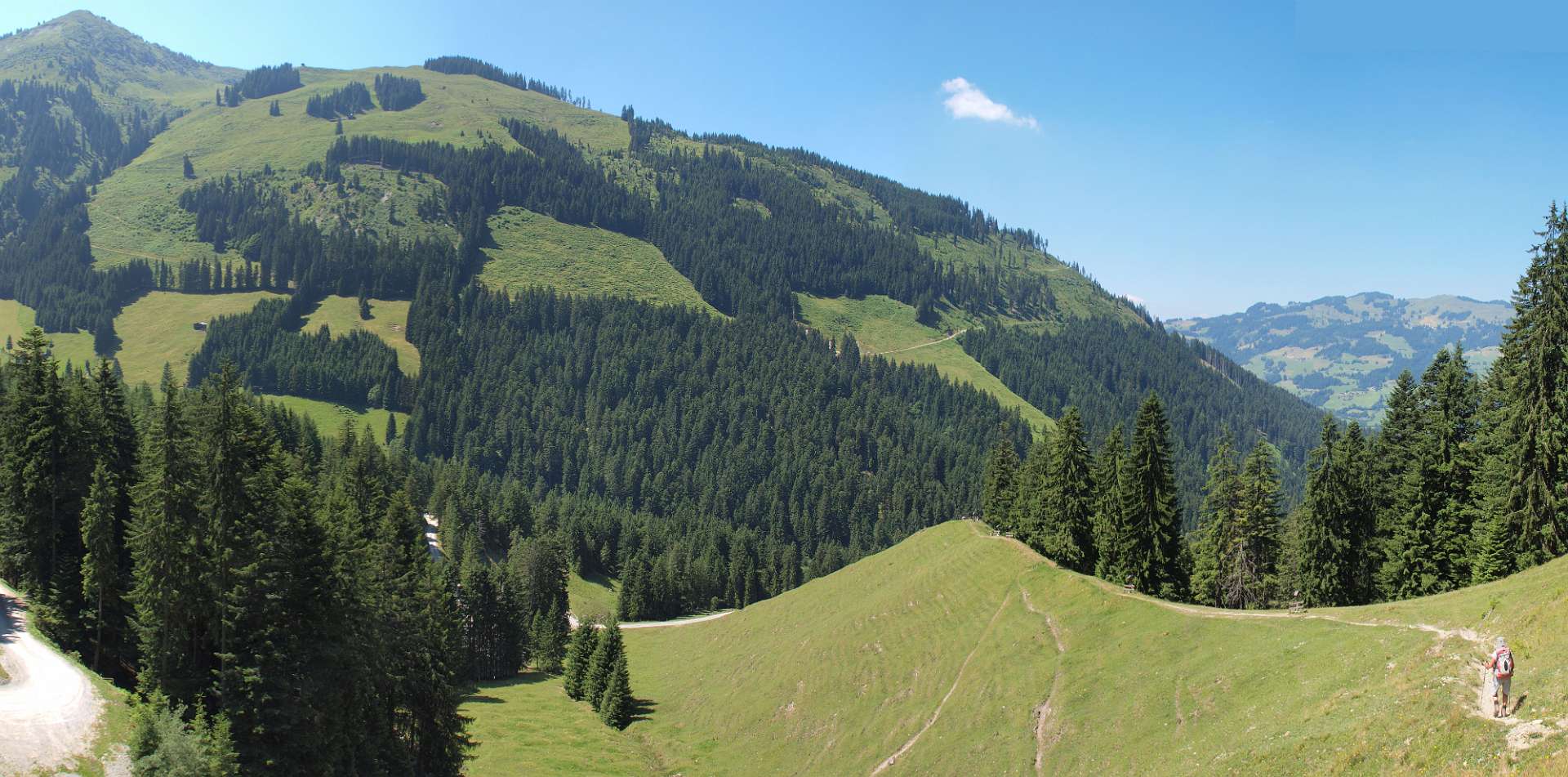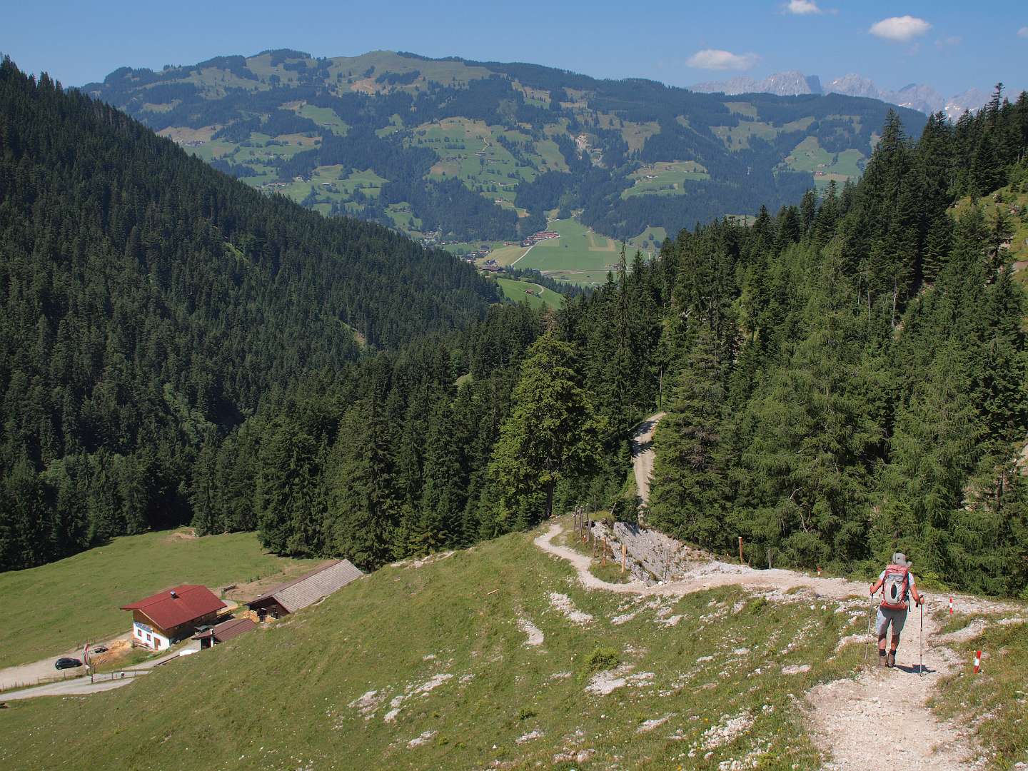 We gingen met de bus naar Kirchberg en namen de stoeltjes lift naar de Gaisberg alm. Daar begonnen we de wandeling, waarbij we rechtsaf gingen. We beklommen de Gaisberg en liepen over de berg naar het zuiden. Via de Wiegalm liepen we terug naar Brixen im Thale.