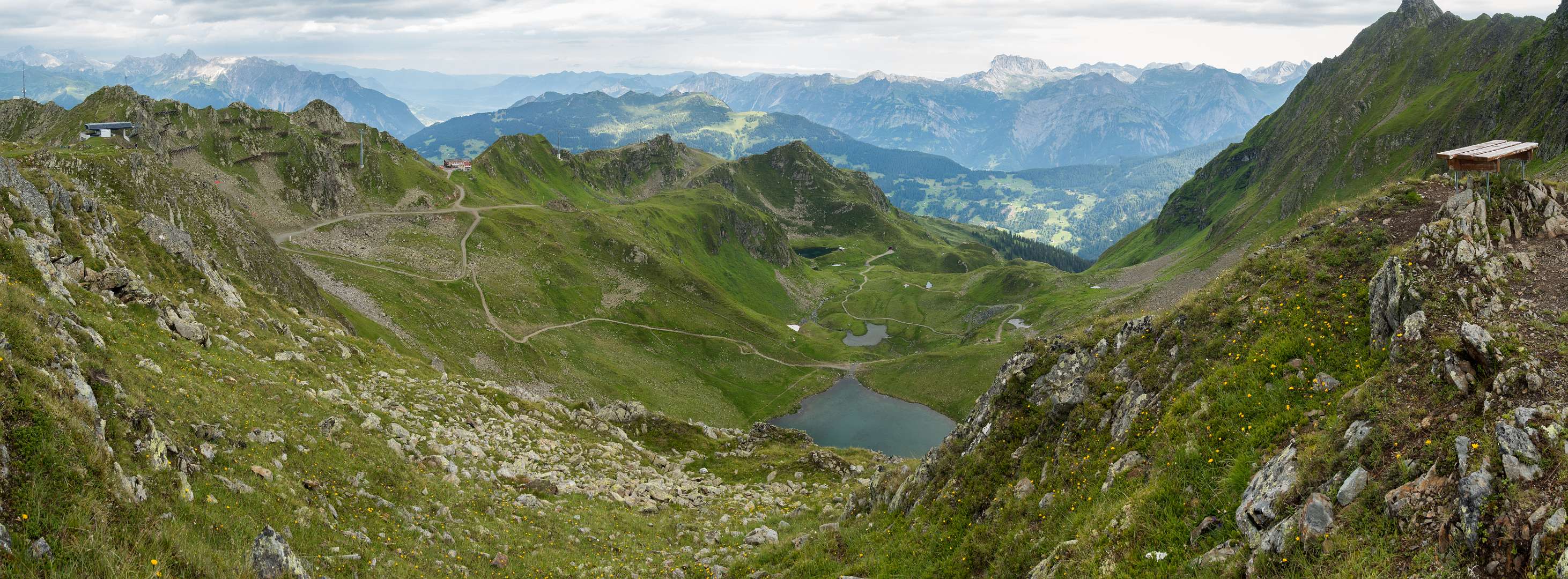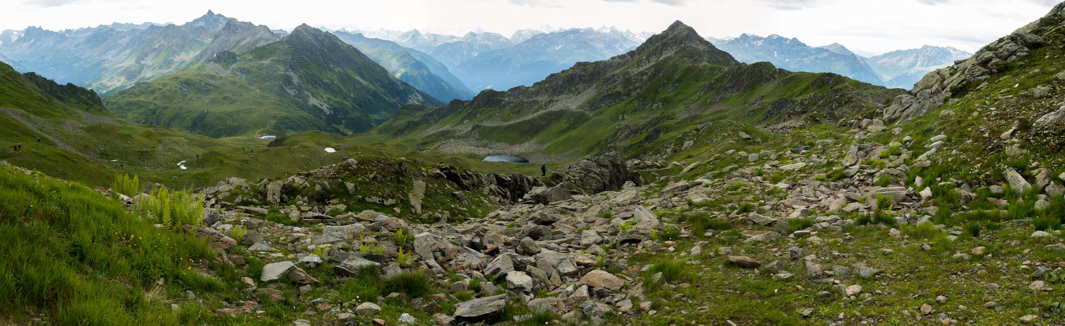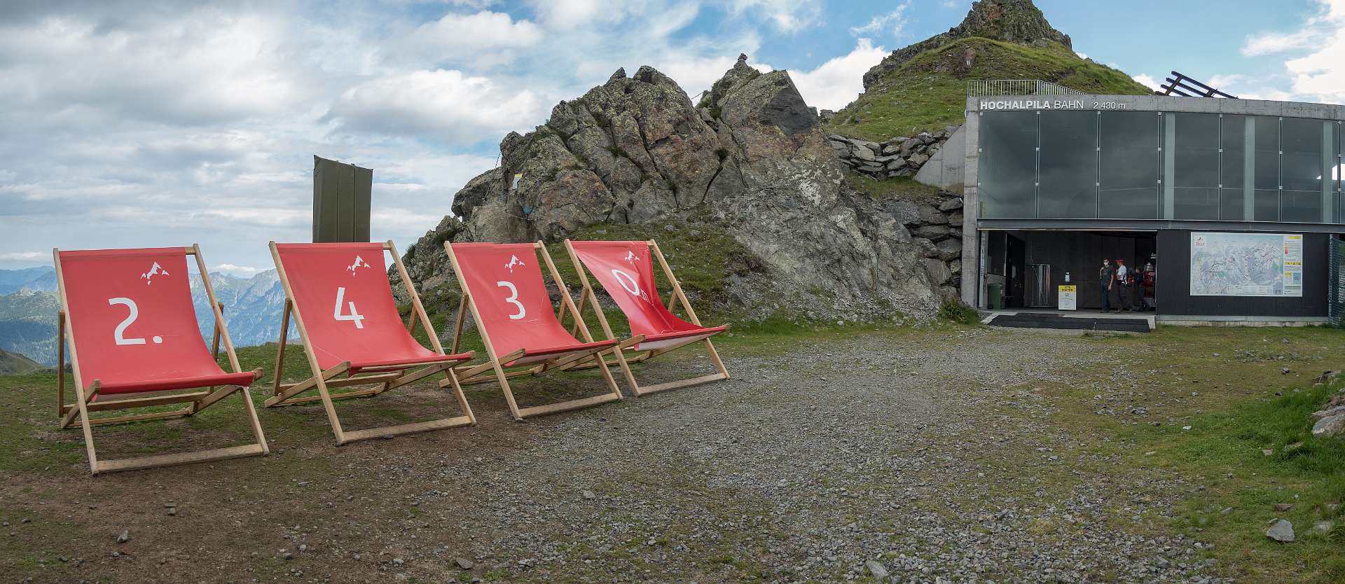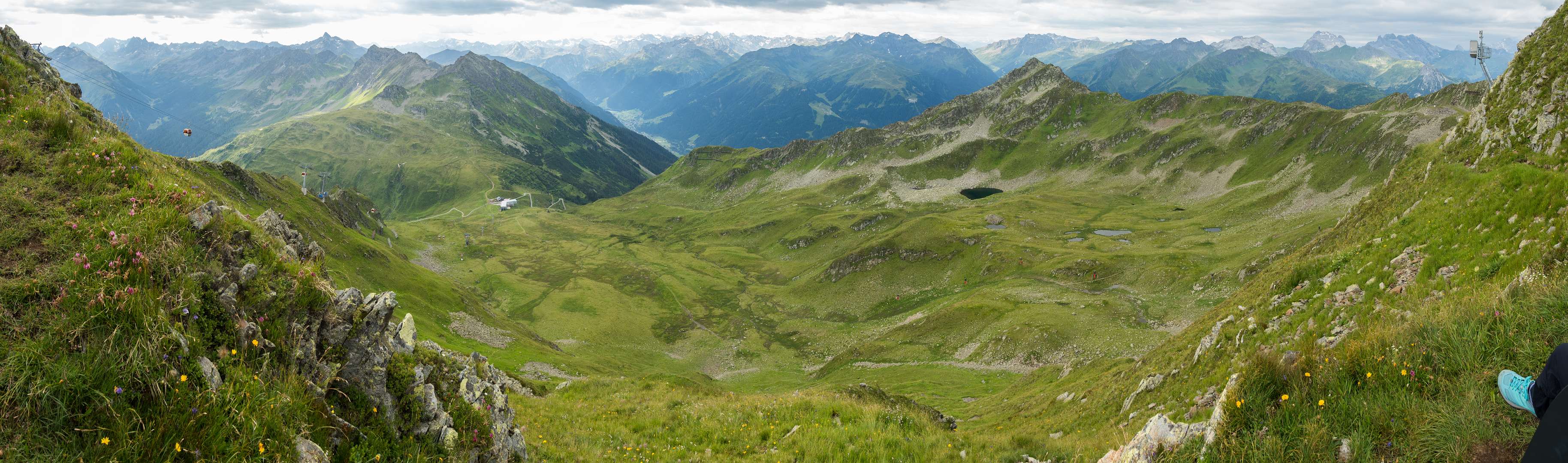 We gingen met de Grasjoch Bahn en de Hochalpila Bahn omhoog en liepen terug naar het eindstation van de Grasjoch Bahn