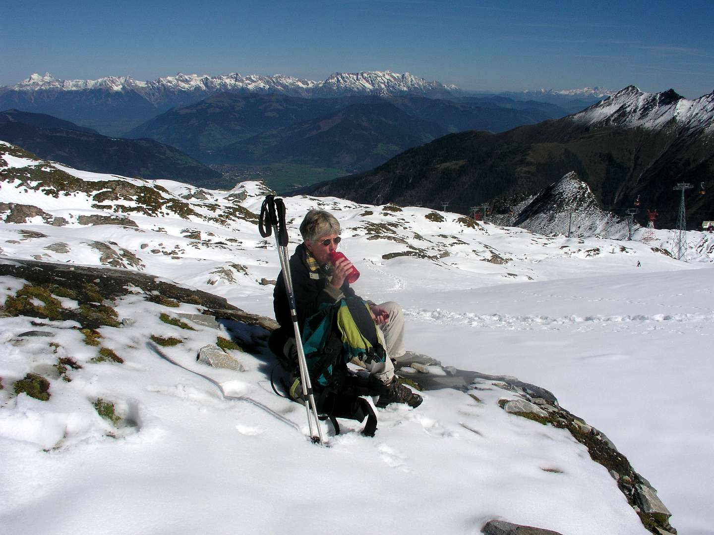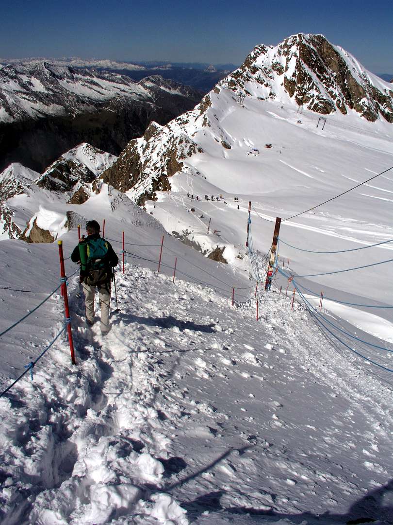 We gingen eerst met de kabelbahn naar de Kitzsteinhorn gletcher en daarna terug naar het middenstation bij het Alpincenter. Daar begonnen we aan de wandeling naar het eindpunt van de Maiskogelbahn.