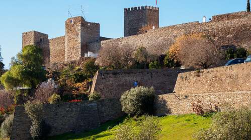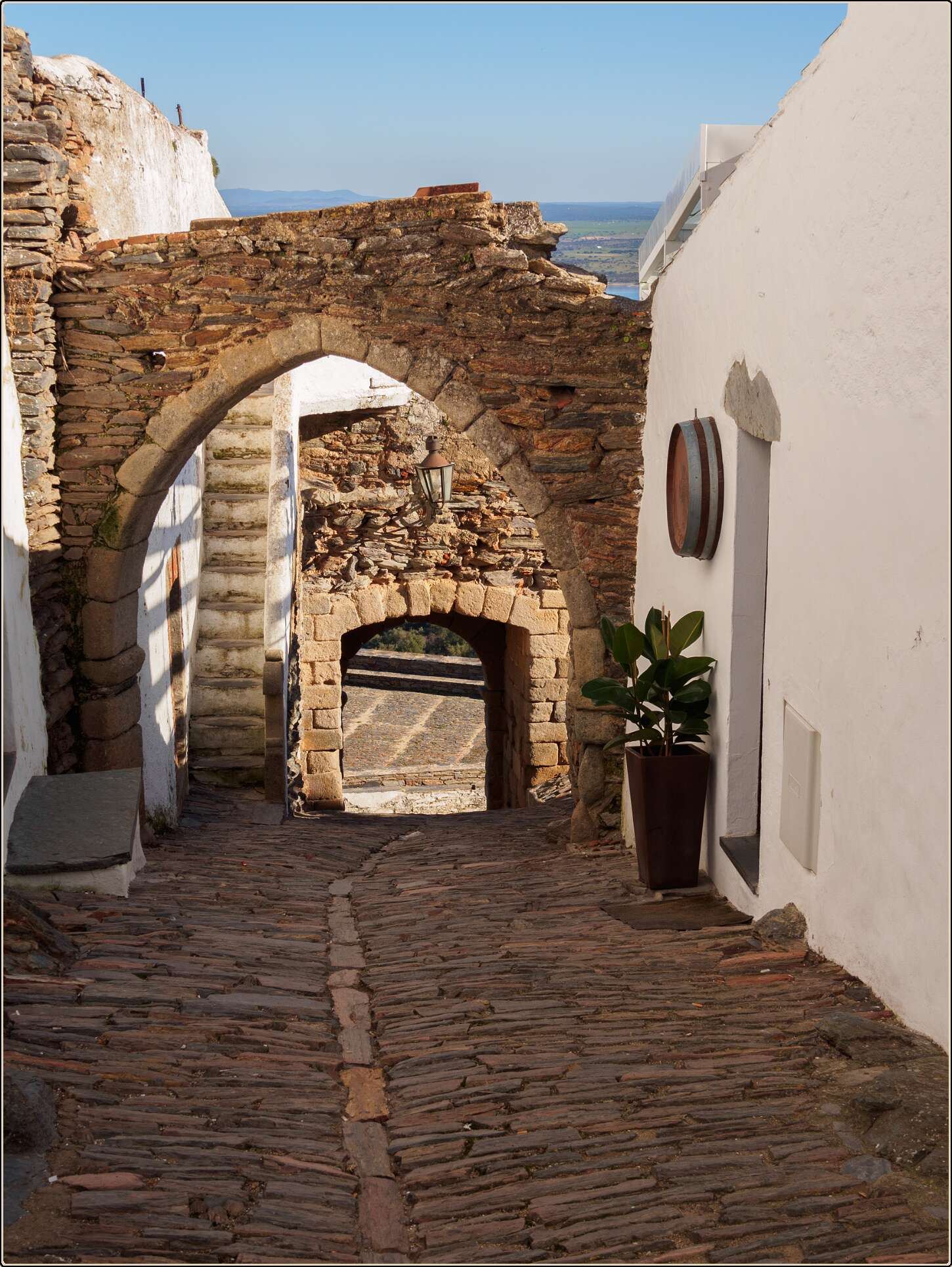 Monsaraz is prachtig gelegen op een berg. We bezochten het toen we van Monte Gordo naar Elvas reden.