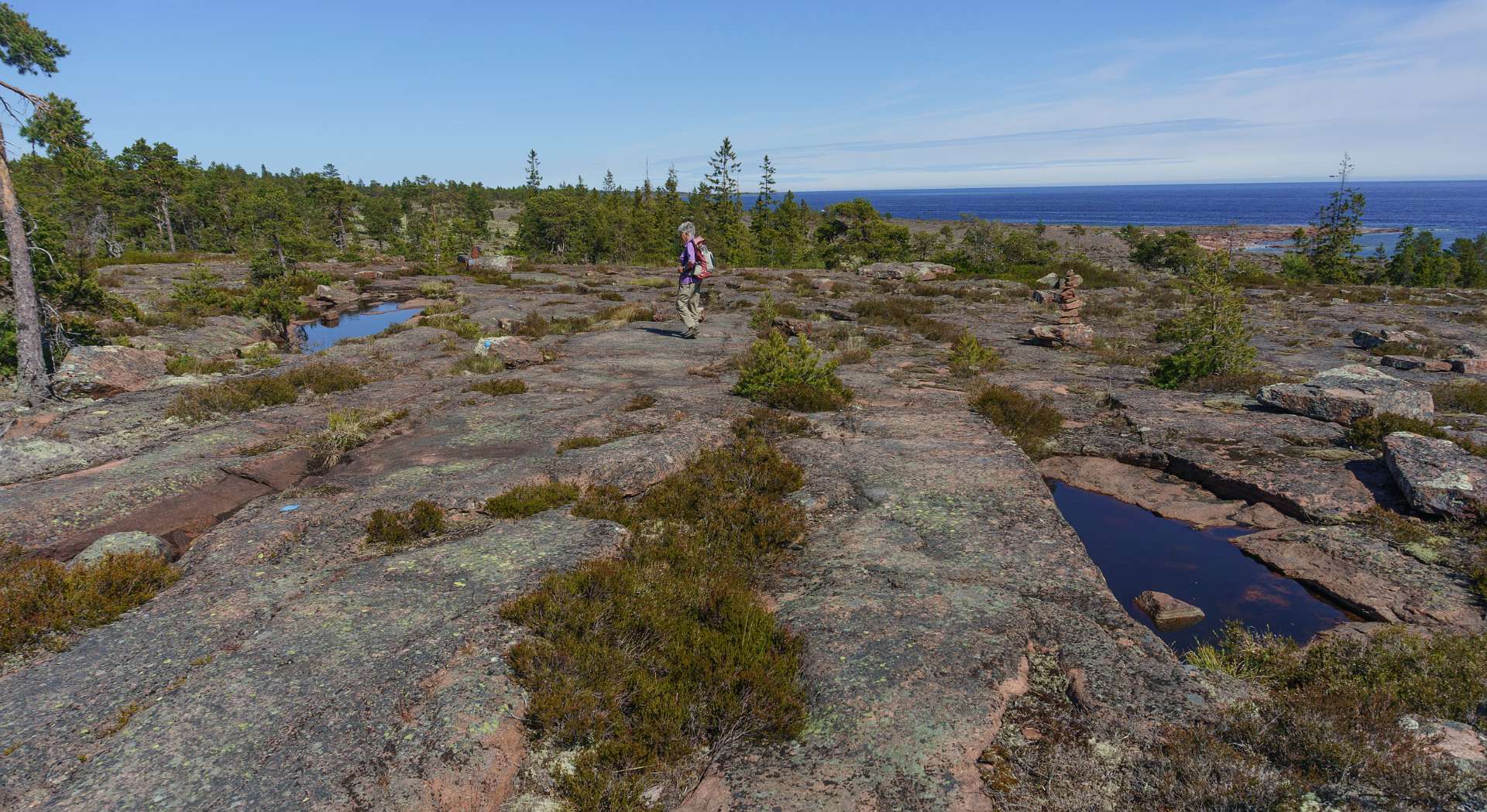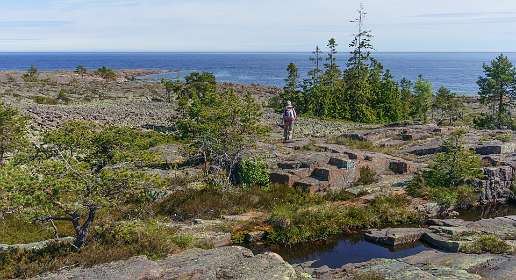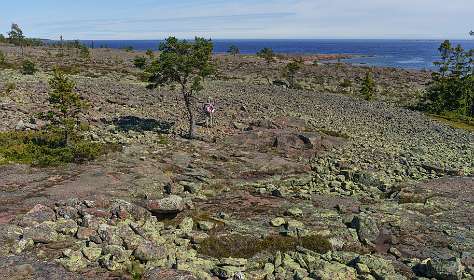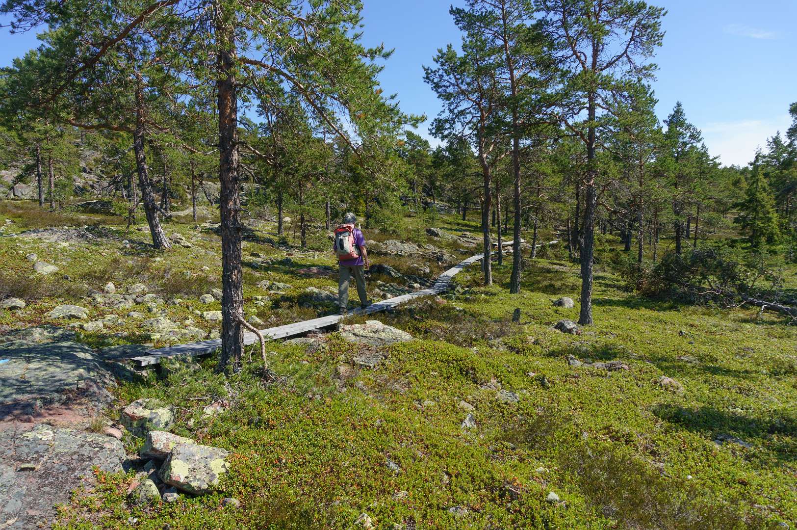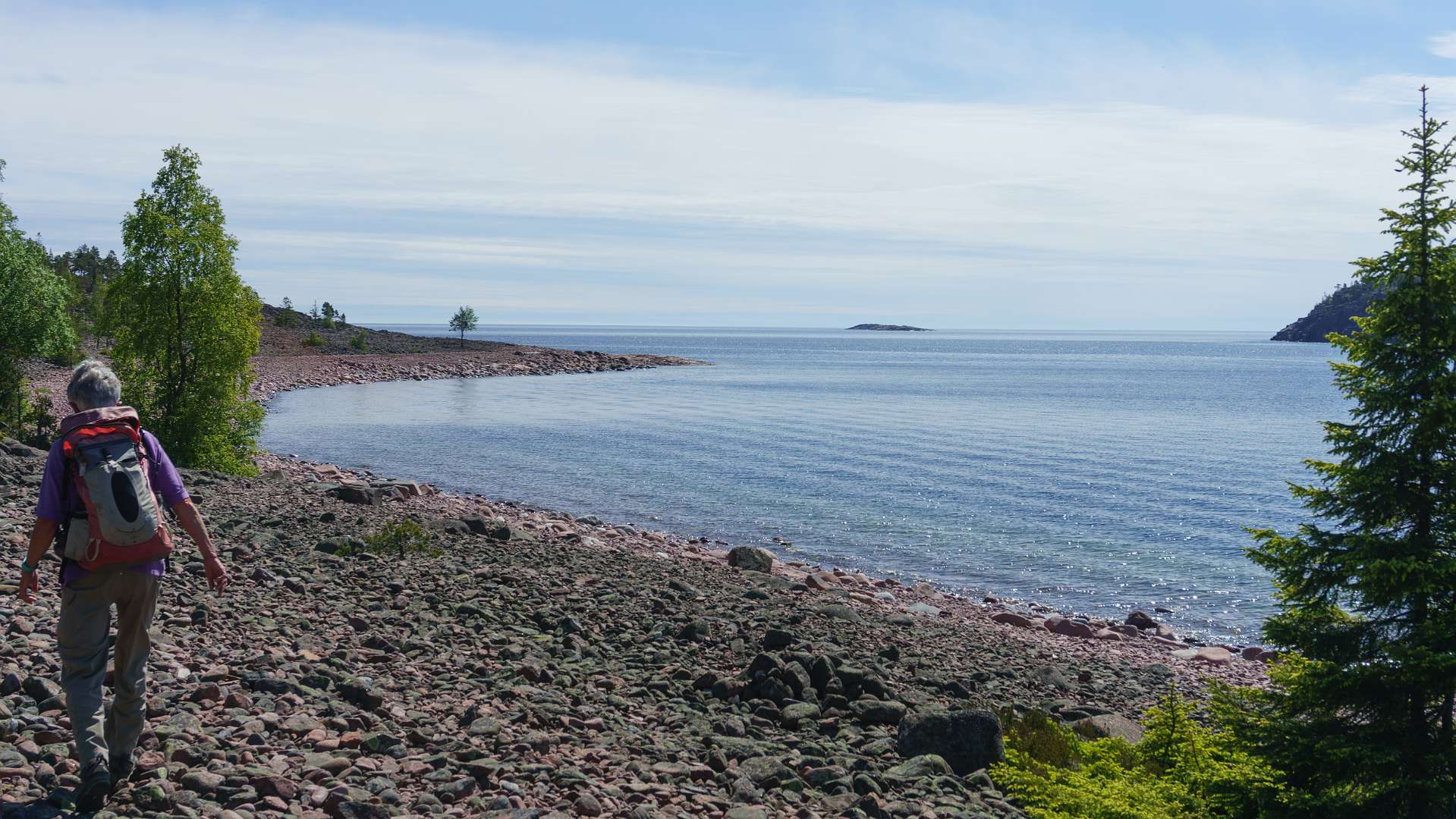 Vanaf de camping in Norrfällsvikken maakten we een rondwandeling door het natuurreservaat, van de westkant naar het zuiden, waarna we aan de oostkant weer in de camping kwamen. Deze wandeling ging grotendeels over keien en is 7 km lang.