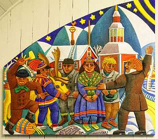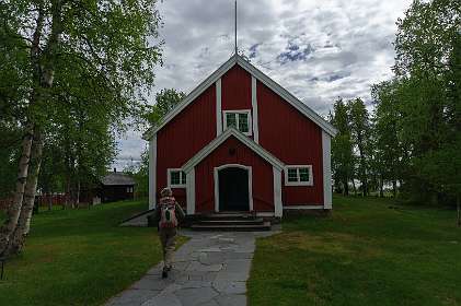 Vanaf de Pjiilijarvi camping reden we eerst naar het Samen dorp Jukkasjarvi, 18 km ten oosten van Kiruna. Daarna reden we via Kiruna naar Narvik in Noorwegen. Daar was de camping opgeheven en dus reden we maar door naar de Tjeldsundbrua camping bij Evenskier.