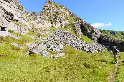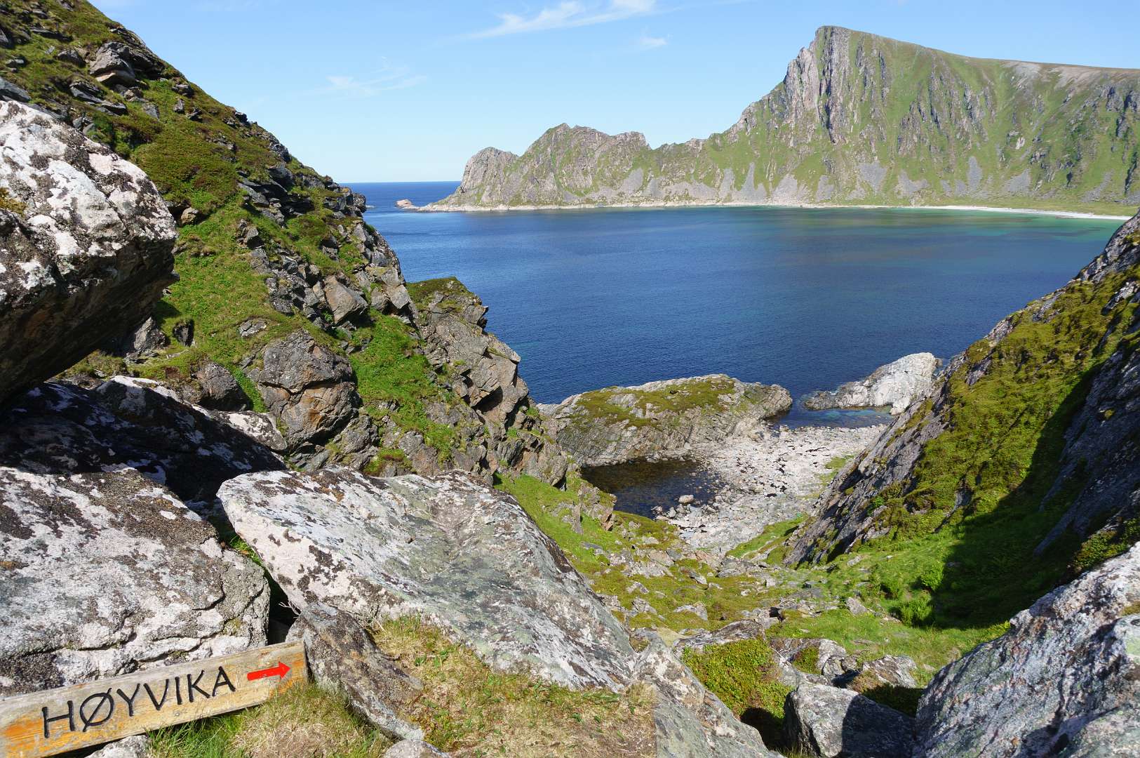We hadden tot Hoyvika willen lopen, maar na 80 m omhoog geklauterd te hebben, besloten we terug te keren.