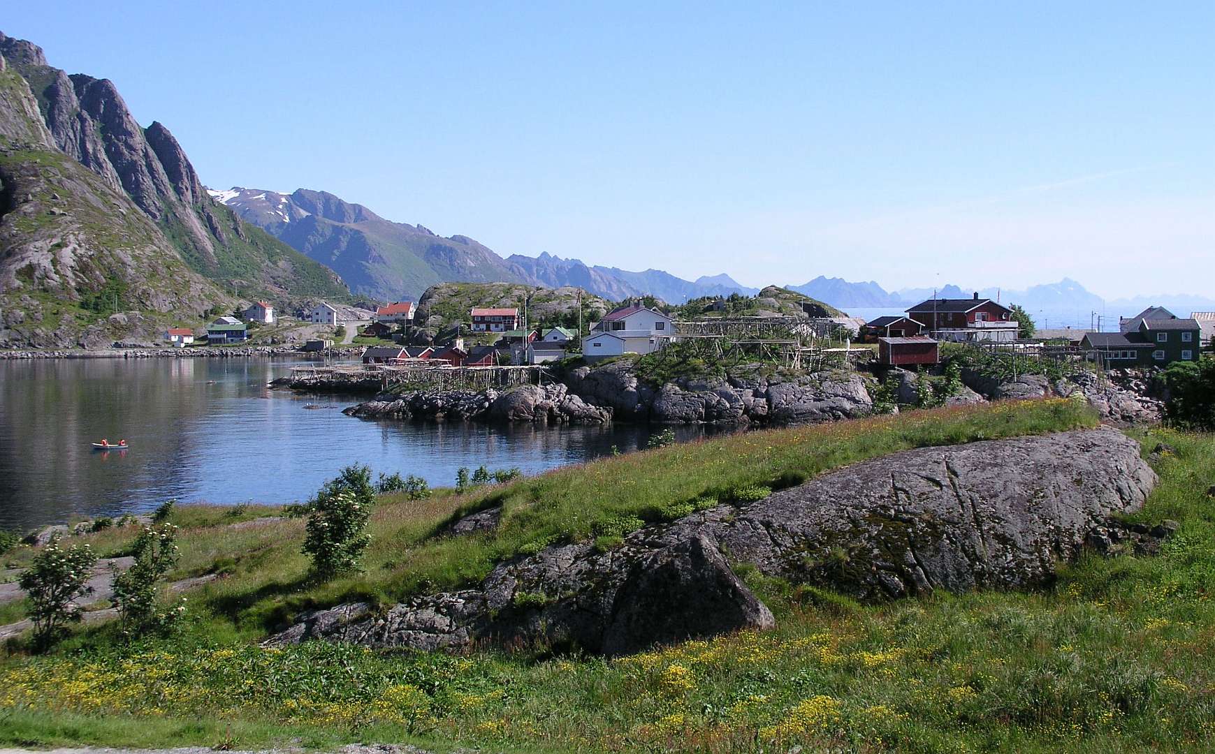 Op 3 juli reden we via de E10 naar het volgende eiland: Moskenesøya. Wij huurden weer een hut op de camping van Å. In Å eindigt de E10, het is de zuidelijkste plaats van de Lofoten als we de kleine eilanden Røst en Verøya niet meetellen. We maakten er enige wandelingen naar het westen en het noorden.