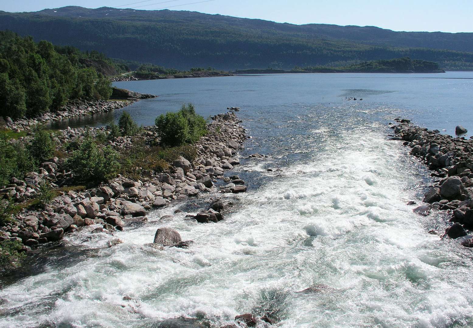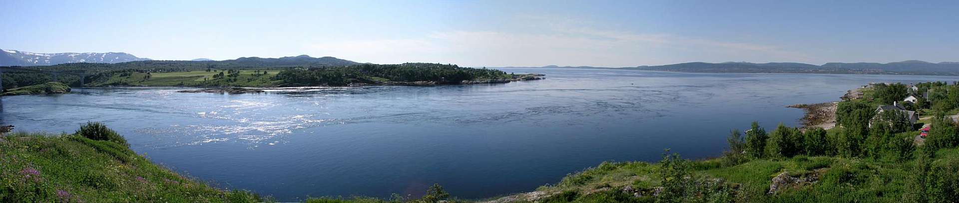 Op 5 juli reden we terug naar Moskenes en namen daar de veerboot naar Bodø, waar we na bijna 4 uur varen aankwamen. We reden door naar het begin van de Rv17 in Saltstraumen, waar we alleen onze binnentent opzetten. In Saltstraumen perst de sterkste getijde stroom ter wereld zich elke zes uur door een 3 km lang en 150 m breed fjord. Daarbij wordt 372.000.000 kubieke meter water verplaatst. Het is een paradijs voor vissers: hier is de werelds grootste Sei (Pollachius virens) vis gevangen (22,7 kg).