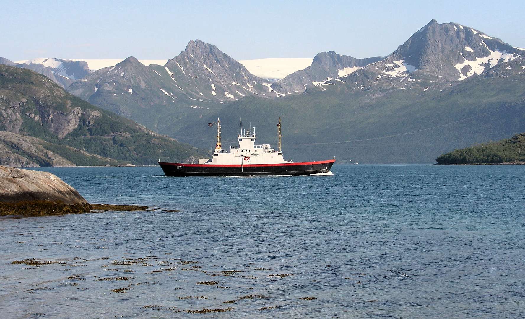 Op 7 juli gingen we met de veerboot gingen we van Forøya het Holandsfjorden over en reden daarna via de Rv 17 naar het volgende veer bij Jektvika. Op de veerboot van Jektvika naar Kilboghamn passerden we weer de poolcirkel. Aangekomen in Kilboghamn vervolgen we de Rv 17 naar Nesna waar we de veerbood naar Levang namen. Daarna verlieten we de Rv 17 en reden via de N78 naar Mosjøen waar we op de camping de tent opzetten.