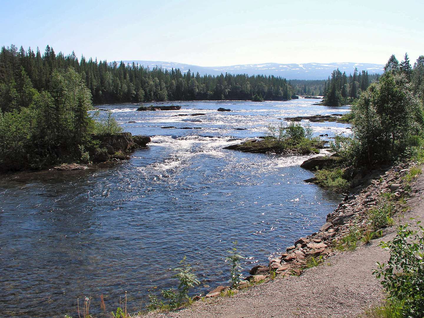Vanaf Mosjøen vervolgden we de E6 naar het zuiden. Wij bezochten het Laksakvarium museum bij Grong, waar een goed beeld gegeven werd van de zalm visserij waar het namsendal beroemd van is. Wij sloegen de tent op een camping in Sem aan het Snåsavatnet meer.