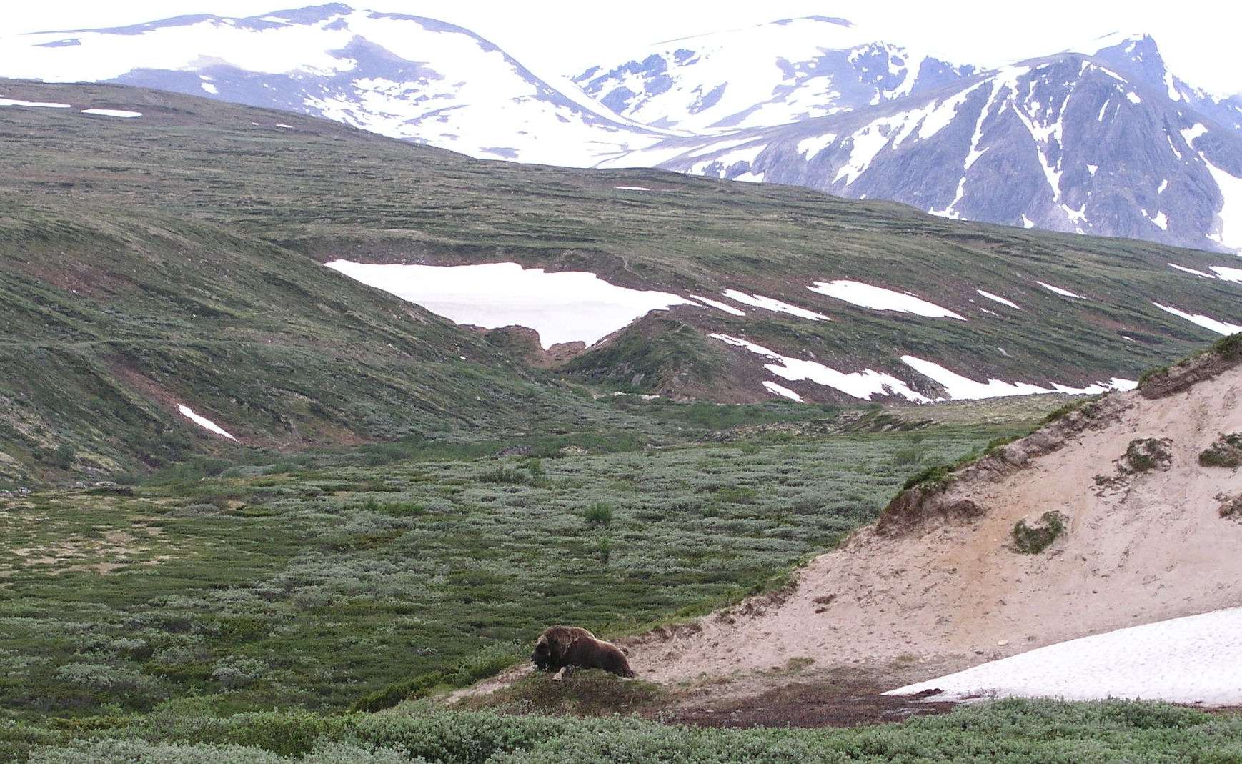 De volgende morgen reden over de via Trondheim en Oppdal naar Hjerkinn bij het Dovrefjell nationale park, waar we op de camping een hut huurden. 's Avonds verkenden we de fjell achter de camping en de volgende dag maakten we een excursie naar de Muskusossen in het Dovrefjell nationale park.