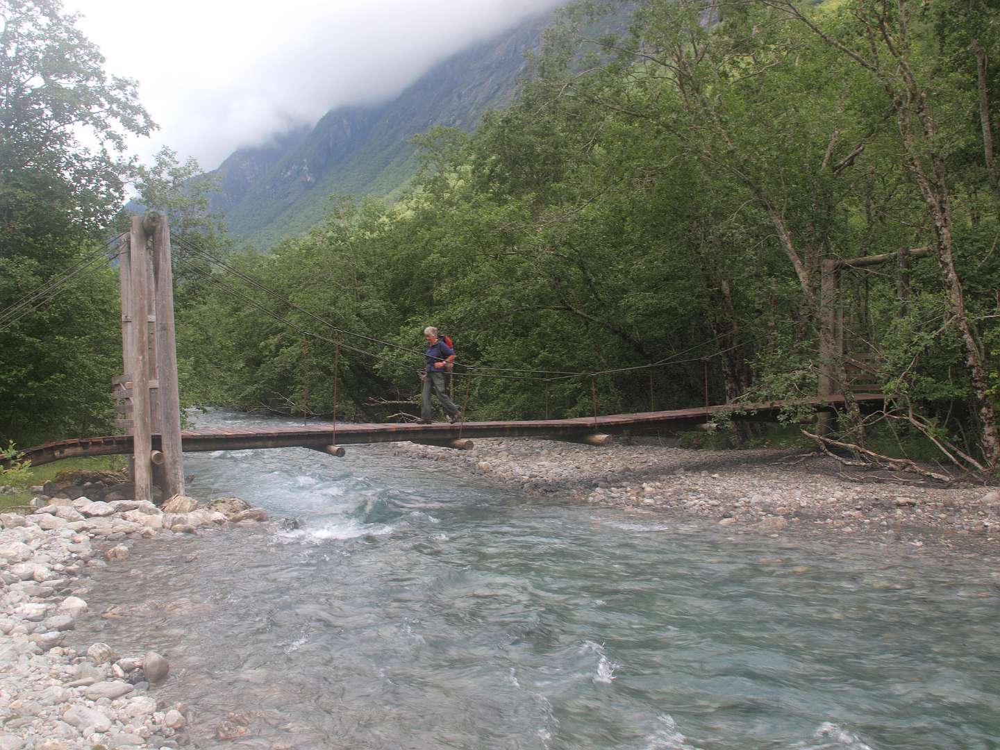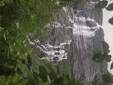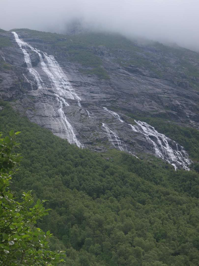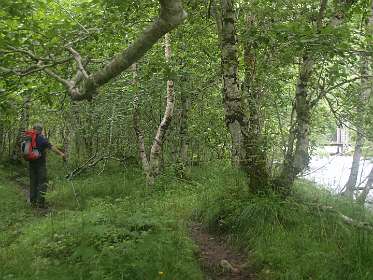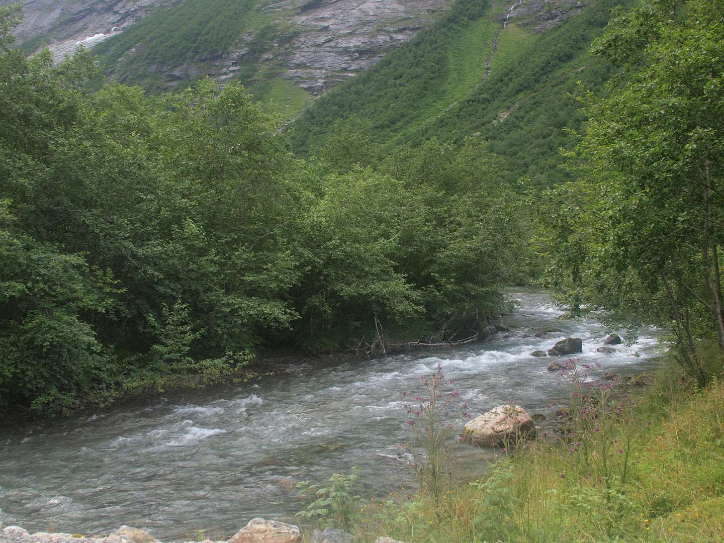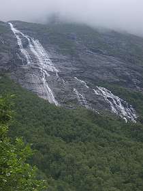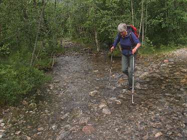In Andalsnes, gaat weg 63, de Trollstigen weg, eerst door het dal en daarna via een pas met heel veel haarspelbochten naar 700 m hoogte. Voordat die weg er was liep er lastdieren pad door dat dal omhoog, het Klovestien pad, dat al in 1766 bestond. Wij liepen een deel van dit pad vanaf de Trollstigen camping. Het loopt ten oosten van de weg en de rivier. Er zijn 4 plaatsen waar U van de weg het pad op kan (S1-S4 of de tracklog). Het is een rondwandeling van 14km (terug via de weg).