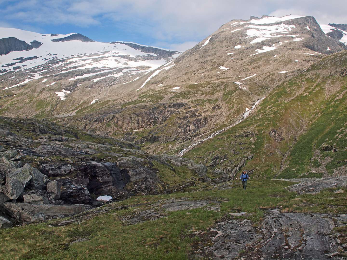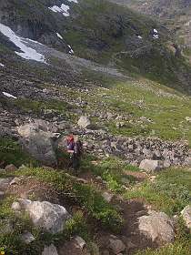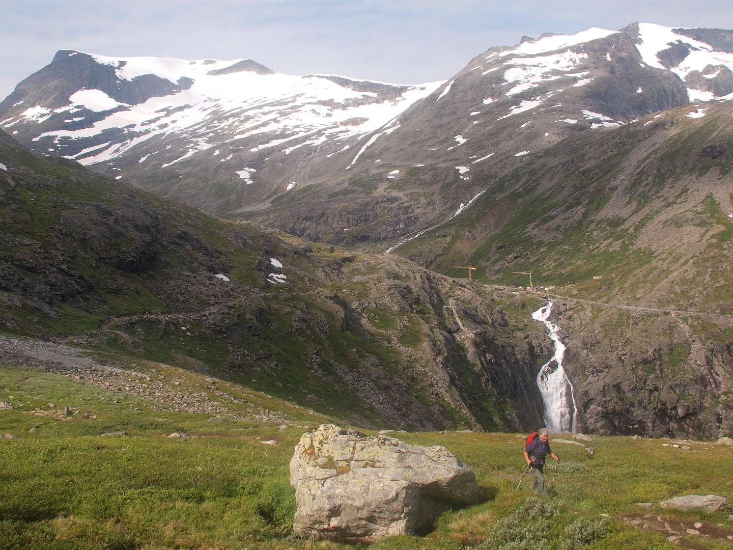 Op weg naar Geiranger maakten we boven op de Trollstigen pas een deel van de wandeling 11 uit de ANWB wandelgids Noorwegen.