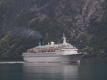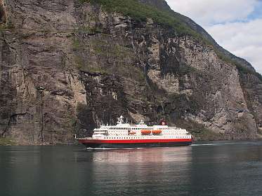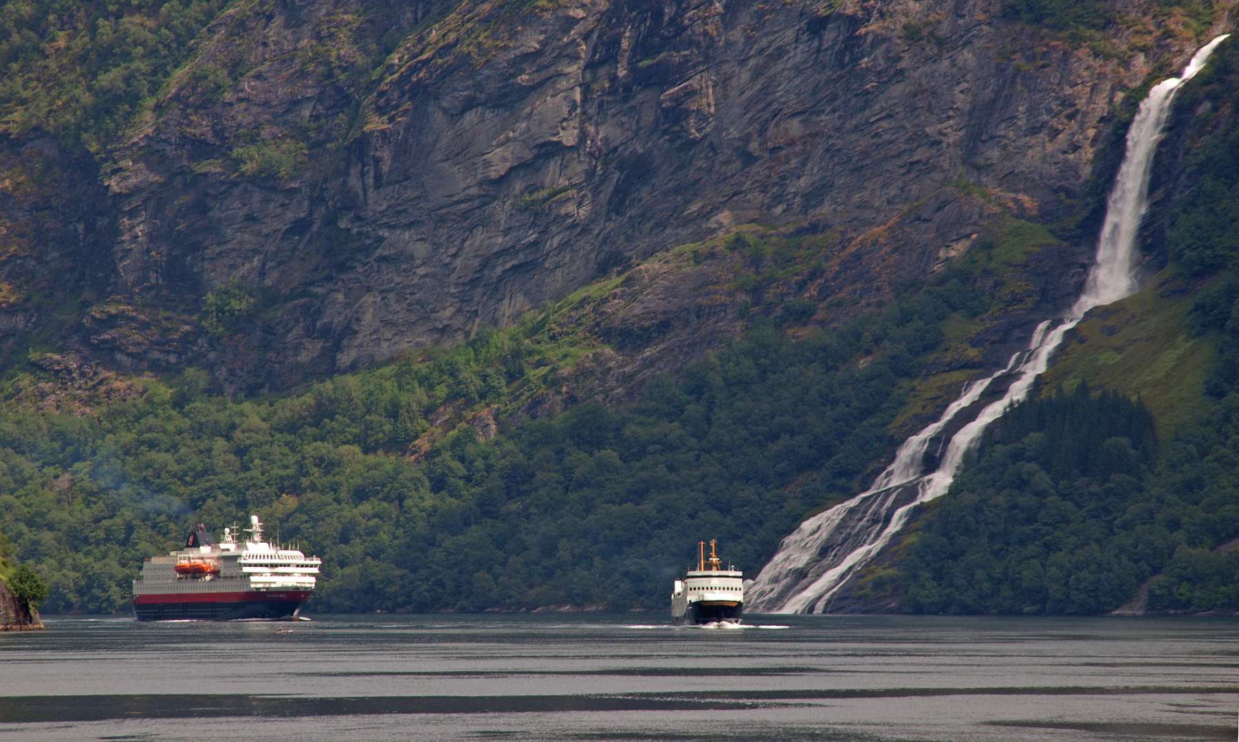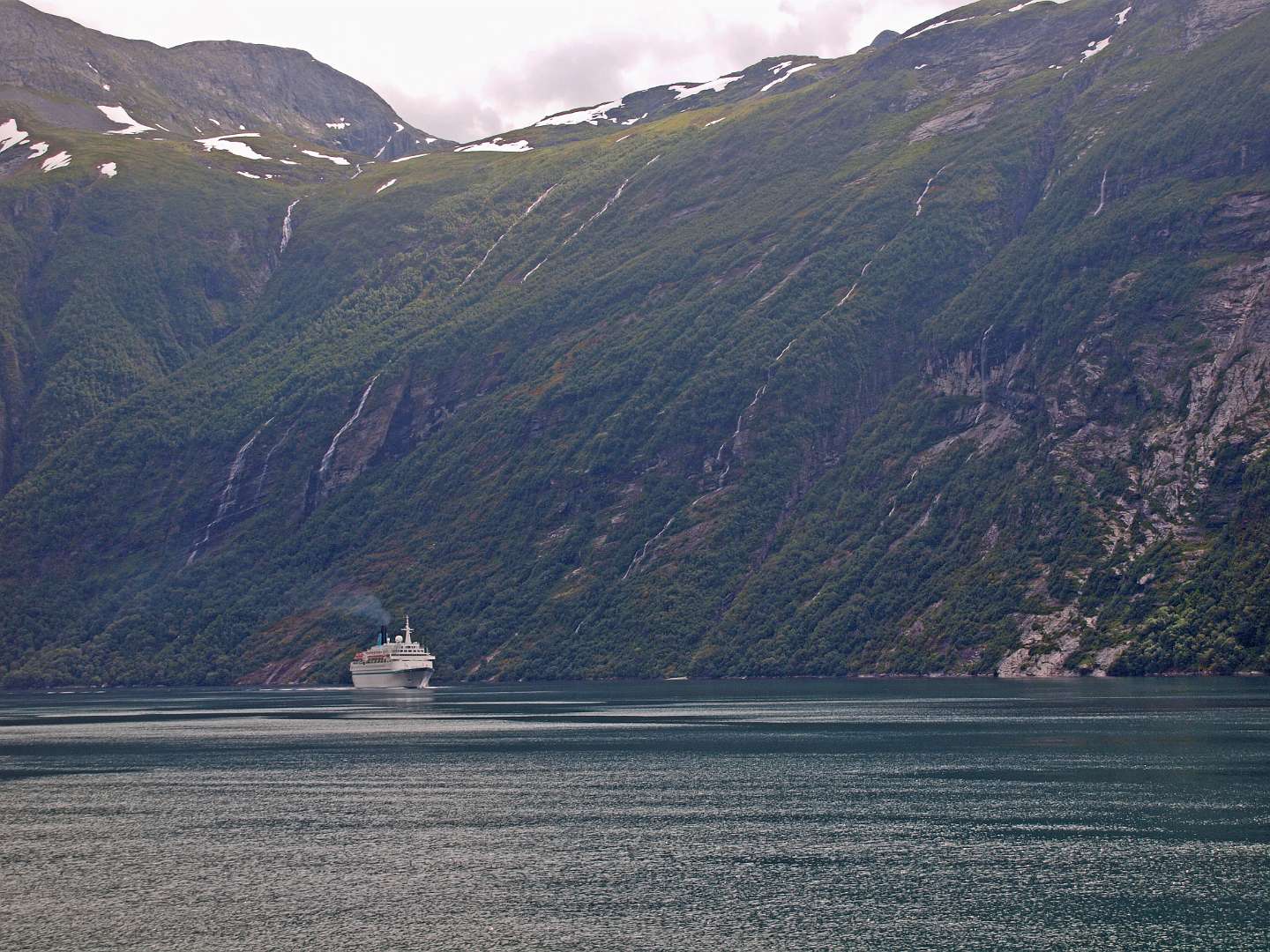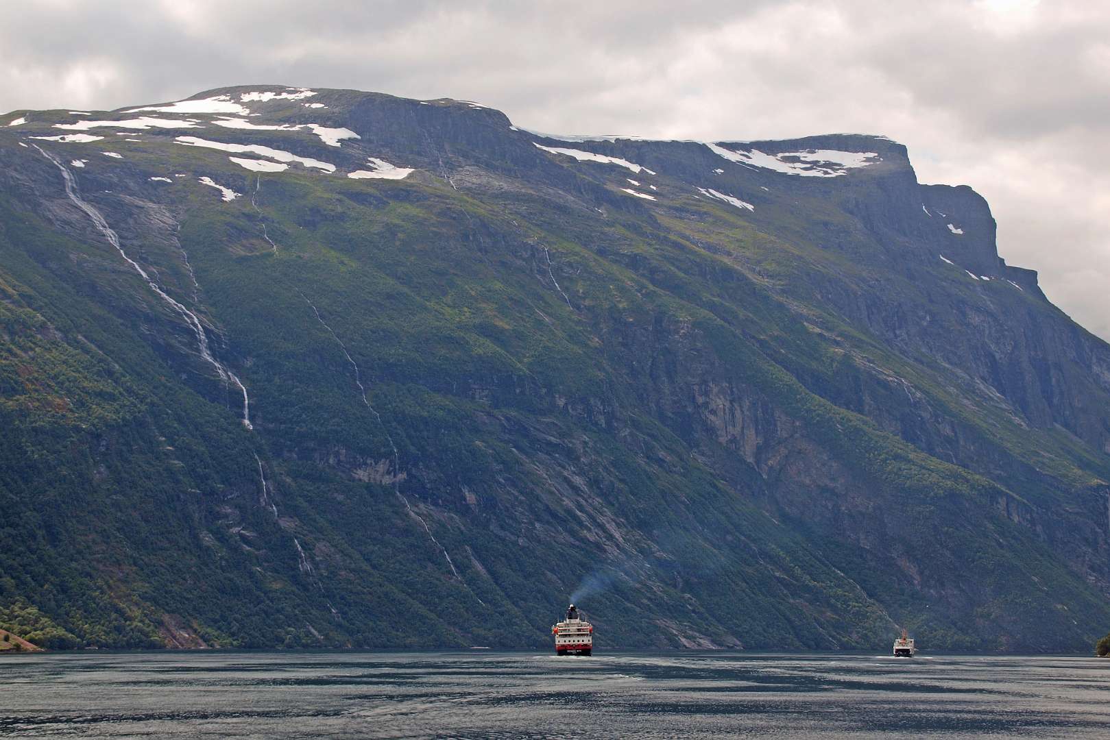 Na een bezoek aan het Geiranger Fjordsenter maakten we een boottocht over het Geirangerfjord heen en terug met de veerboot naar Hellesylt.