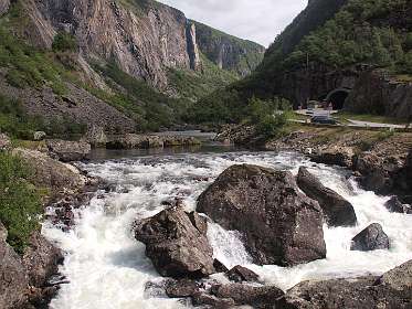 Dit is de 12 km lange wandeling 31 uit de ANWB wandelgids Noorwegen. Deze wandeling was zeer de moeite waard. Hij gaat 500m omhoog langs een goed te begaan muildierenpad en daarna langs de Voringfossen waterval via de oude weg weer omlaag.
