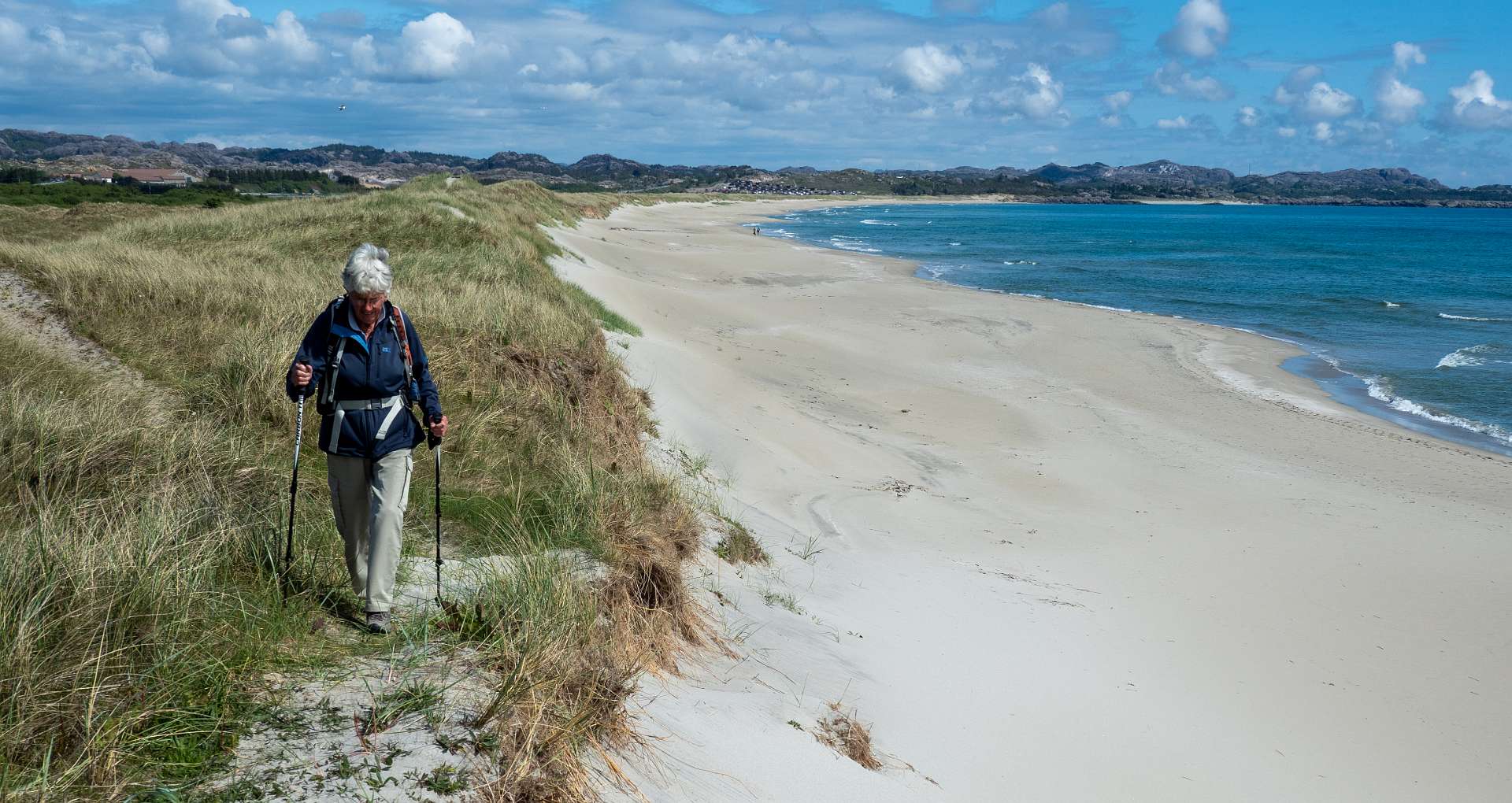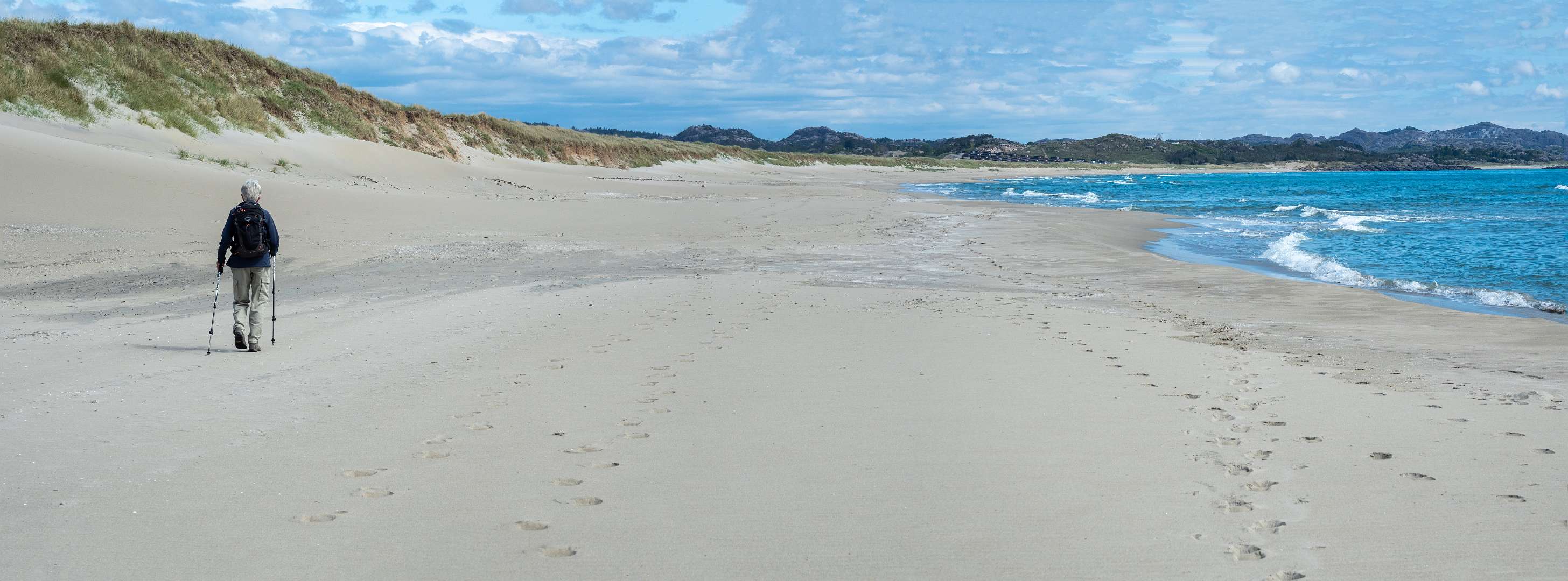 We maakten eerst een korte wandeling over het strand voor de camping en 2 dagen later liepen we via het strand naar de Ogna camping en terug door de duinen (8km). Deze route staat ook op
