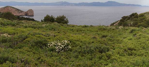 Dit is een 23 km lange rondwandeling van de camping Cala Montgo naar Estratit. Het deel langs de kust na Estratit is redelijk zwaar.