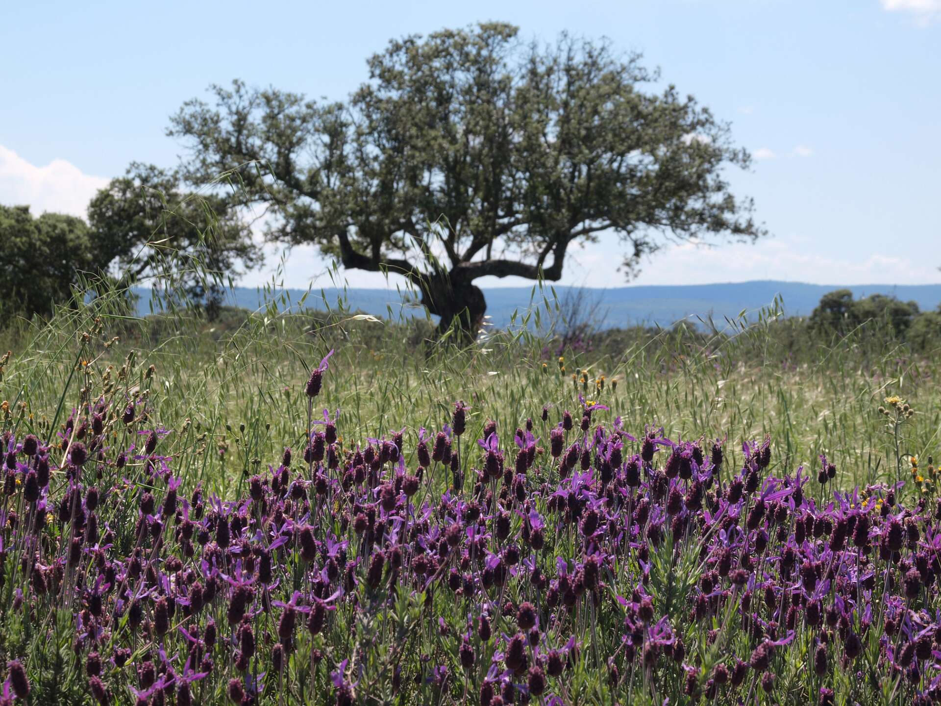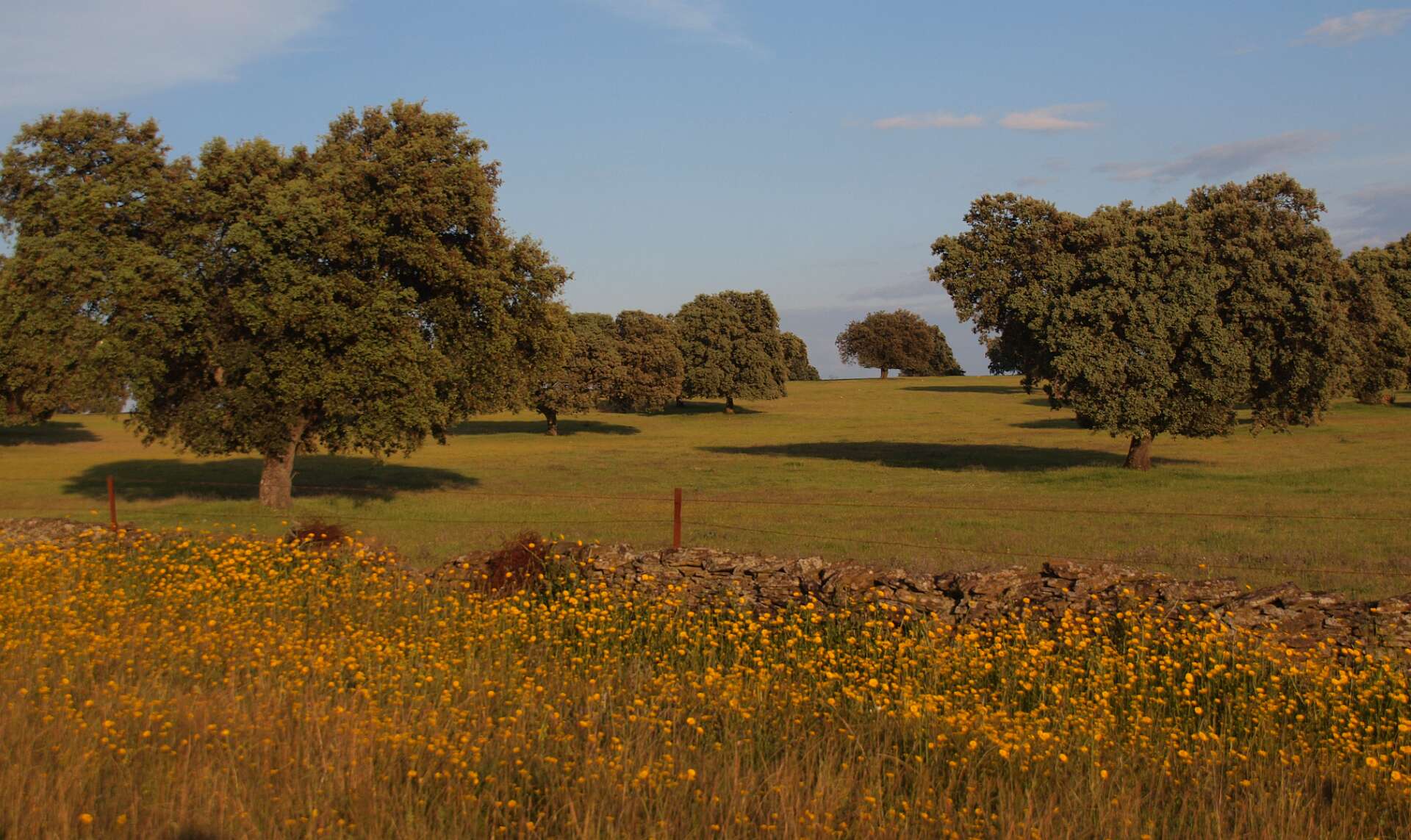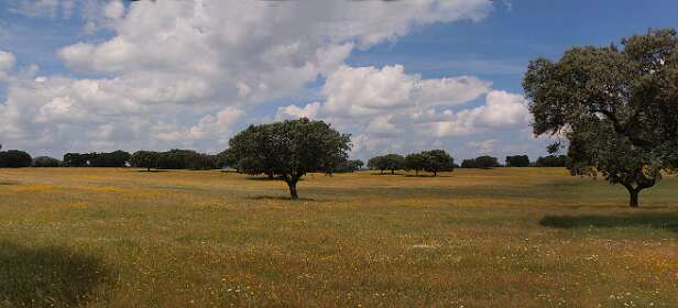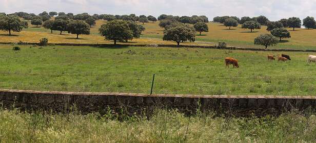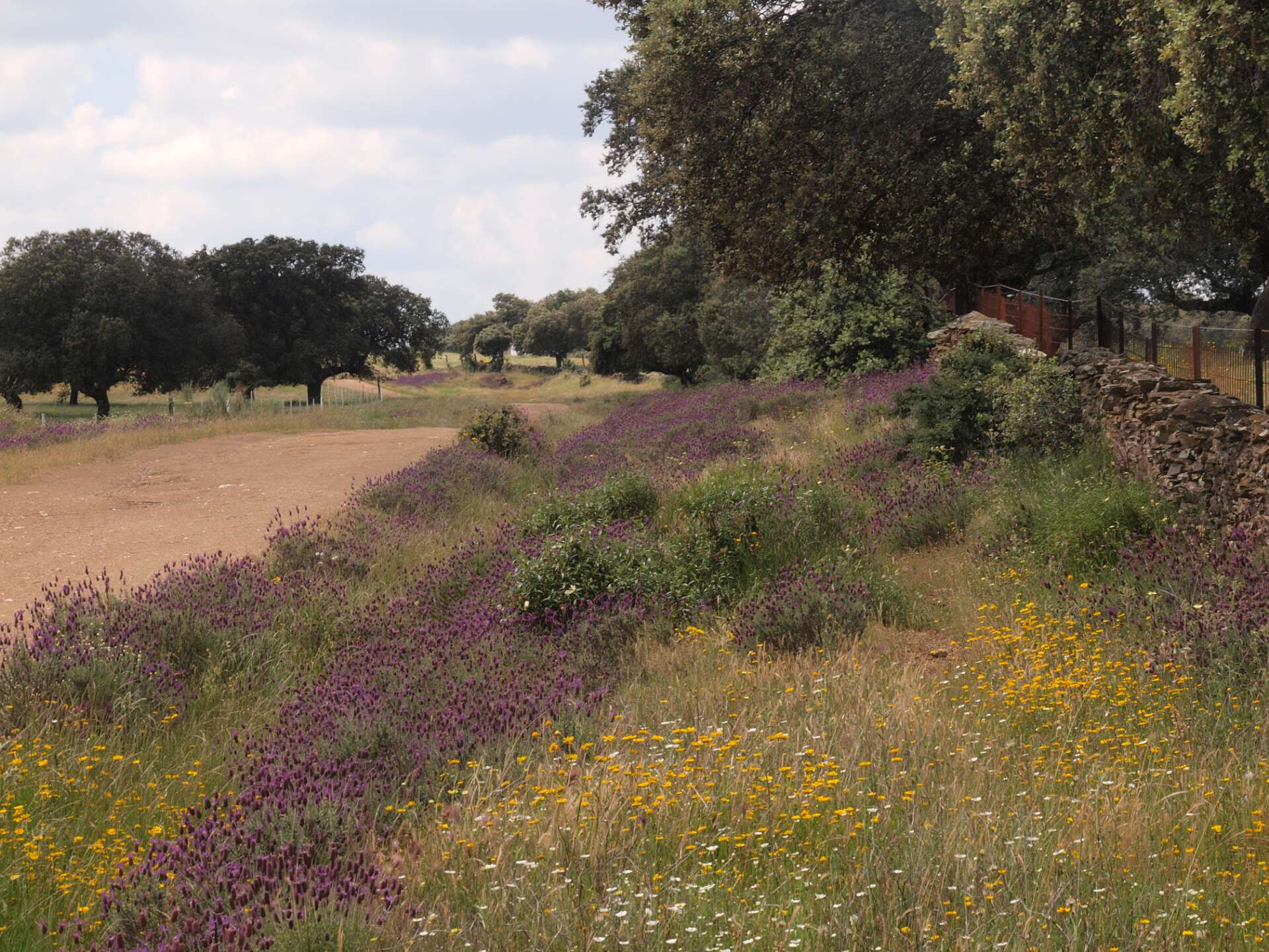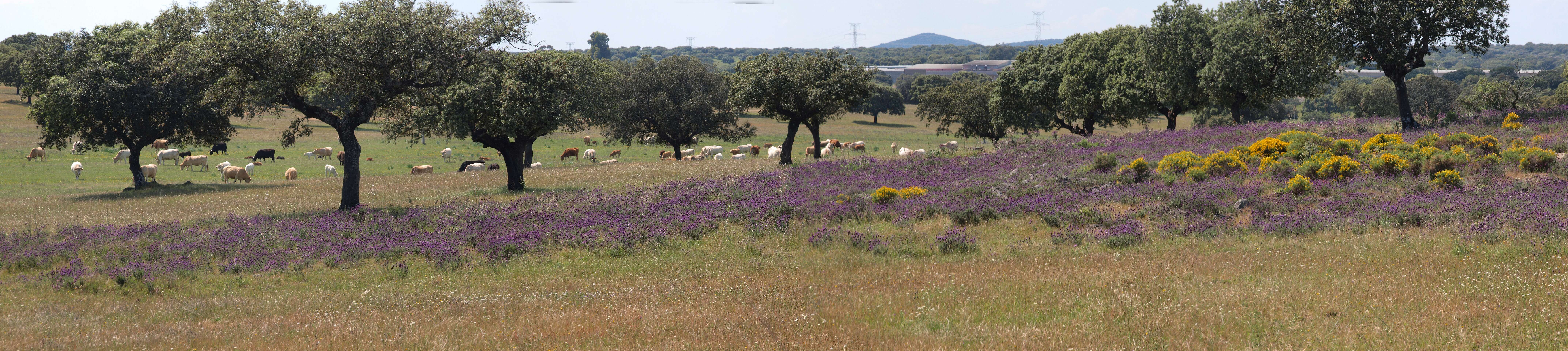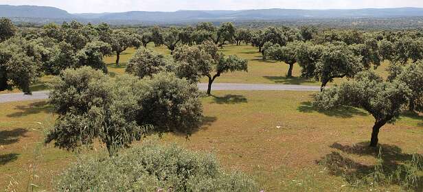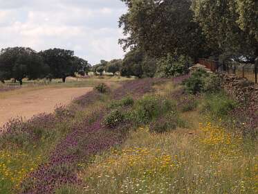 Dehessa betekent 'omheinde ruimte', je kunt daarom niet de dehessa in. We hebben bij de camping dus alleen op wegen gelopen.