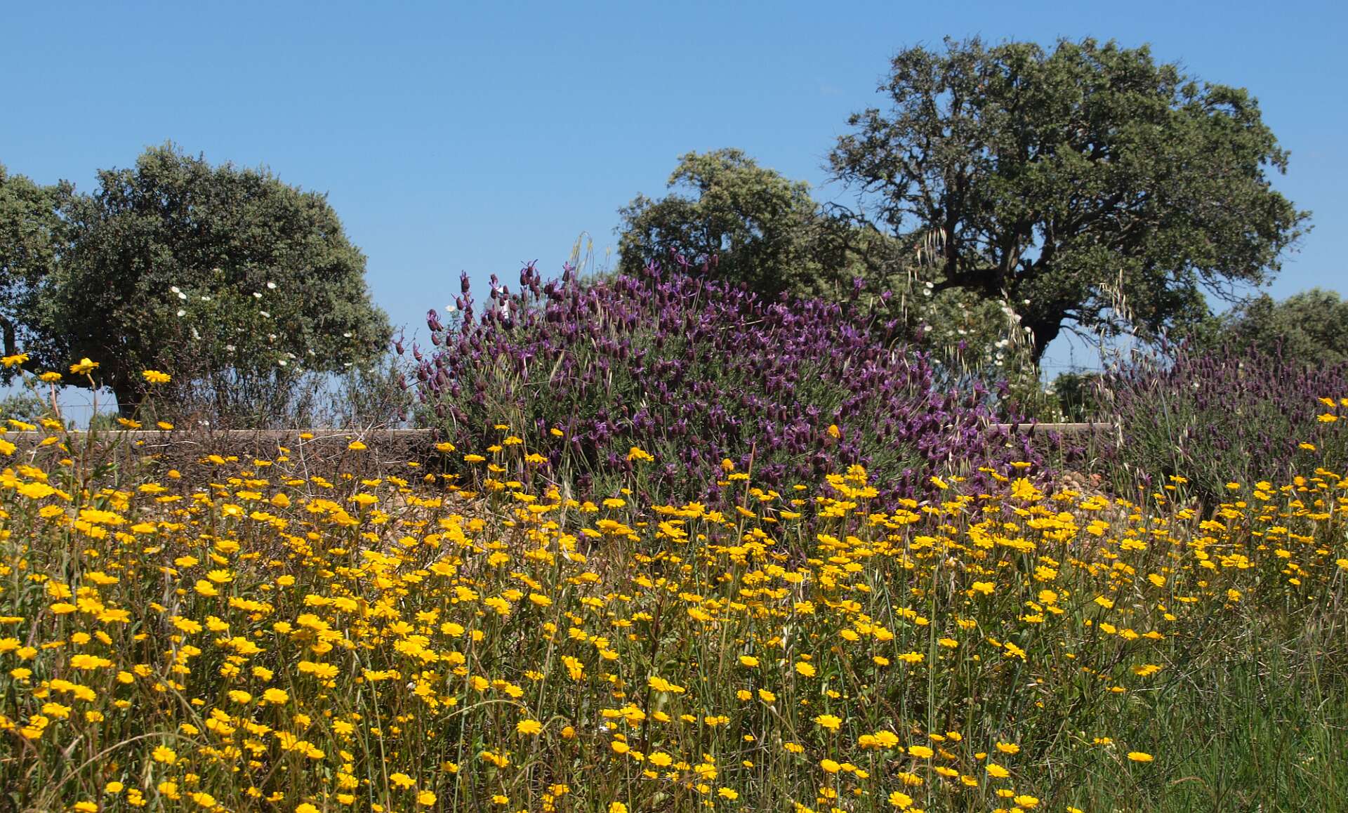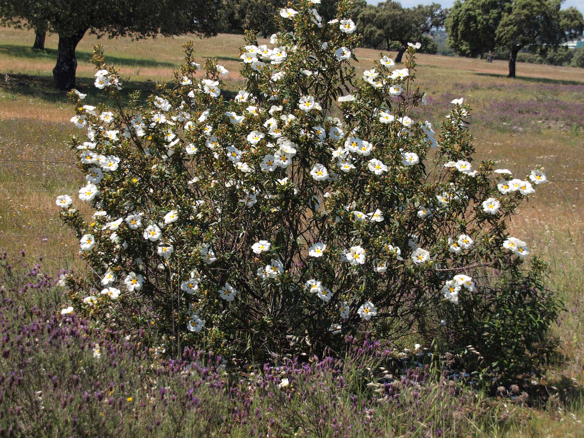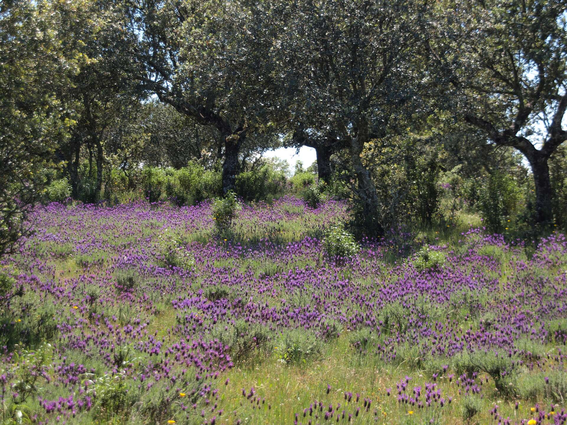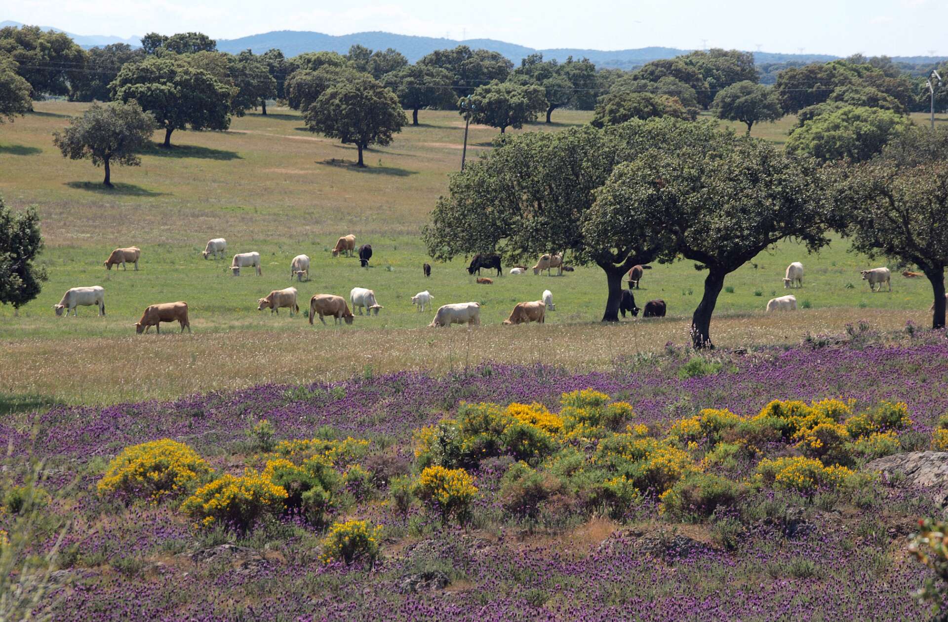 Dehessa betekent 'omheinde ruimte', je kunt daarom niet de dehessa in. We hebben bij de camping dus alleen op wegen gelopen.