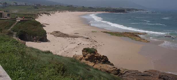 Wandeling van de camping St. Rafael naar Foz over de Ruta das Praias, een 6 km lange met leisteen geplaveide wandelpad langs de stranden.