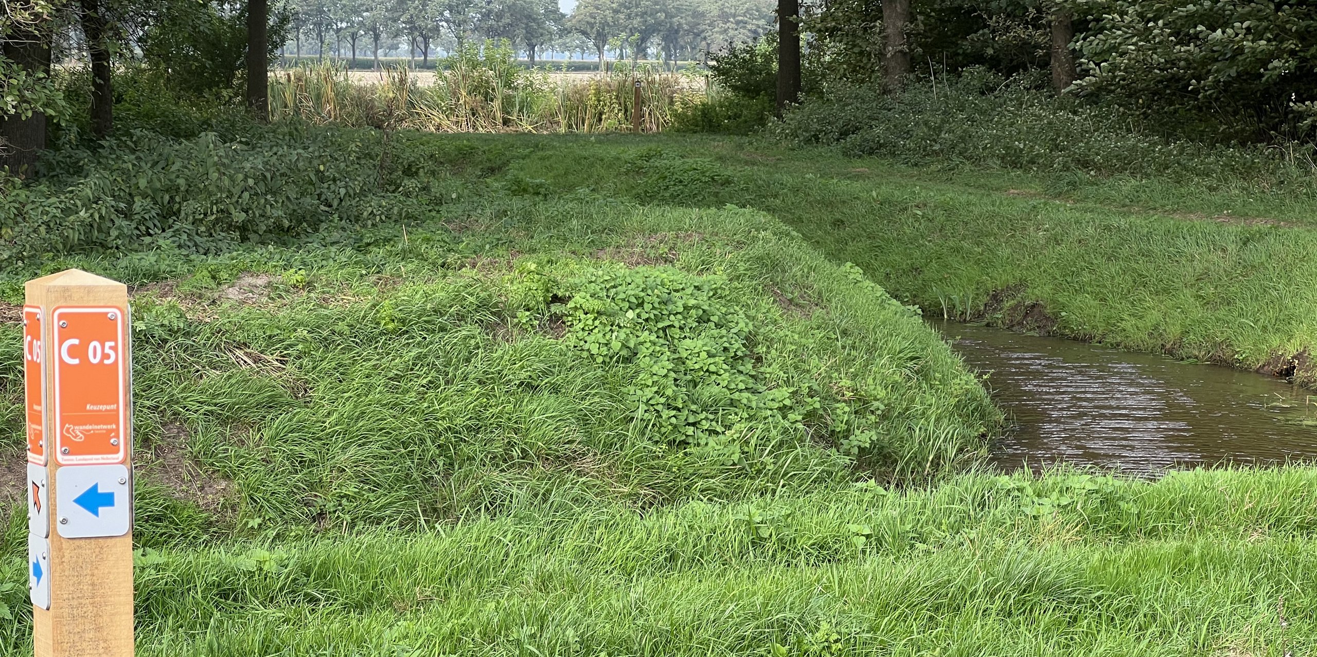 Loop je de bewegwijzerde route vanaf het Meulenbelt naar het zuiden, dan moet je als je rechtsaf de Meulenbeldlaan inloopt, scherp rechtsaf gaan en niet de Meulenbeldlaan naar het zuiden aflopen!