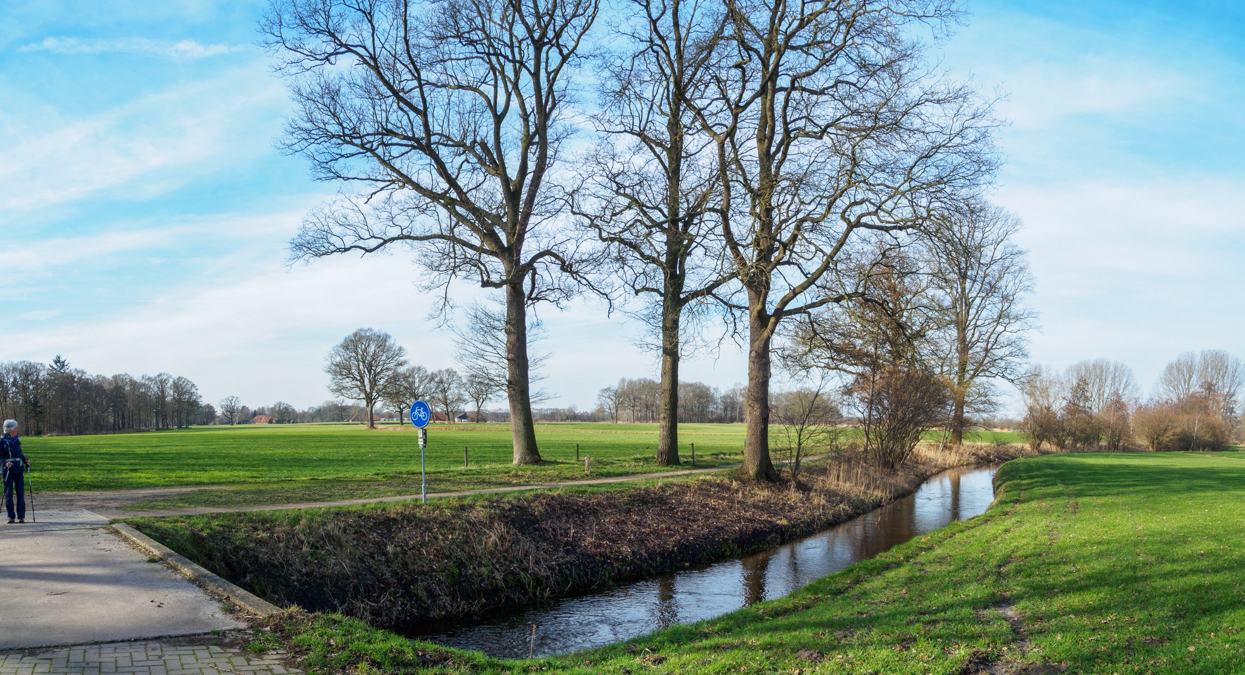 Een wandeling van 9km die de Regge volgt vanaf het Twentekanaal tot Diepenheim, Terug via de kastelen Nijenhuis en Weldam.