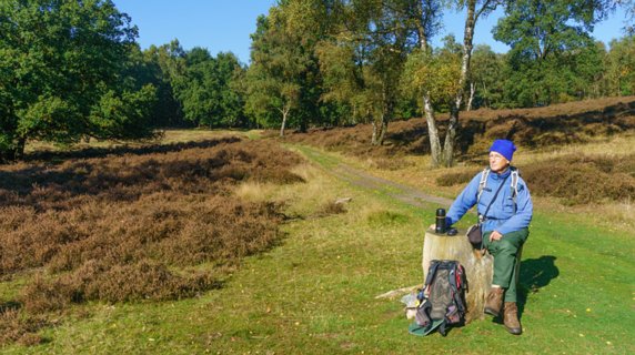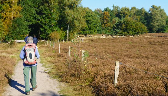 Vanaf het parkeerterrein bij de brandtoren aan de Hooidijk maakten we 3 rondwandelingen: een wandeling van 7 km (rode spoor op de kaart), een wandeling van 10 km (paarse spoor) en een wandeling van 9 km over de Galgenberg (gele spoor).