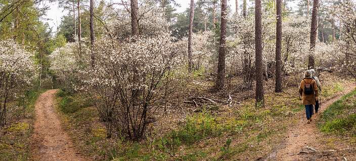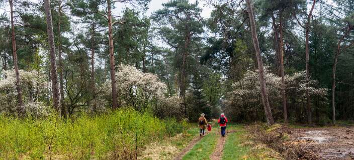 Dit is een wandeling van 12km vanaf de parkeerplaats bij kasteel Eerde. De wandeling gaat geheel over bospaden en zandverstuivingen. We liepen deze wandeling eind mei in 2020 toen de Rhododendrons in bloei stonden en in april 2012 toen de Krenten in bloei stonden.