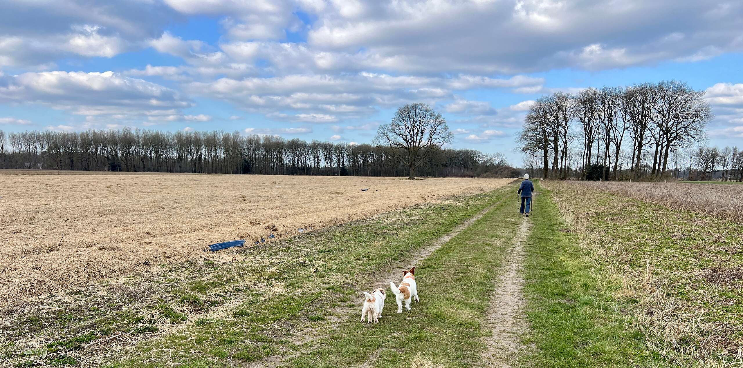 Een wandeling van ruim 10km die we maakten in 2025. Hij begint bij de stuw van Junne en wordt met dikke blauwe pijlen aangegeven, zie het blauwe spoor op de kaarten. Deze wandeling volgt deels het traject van deze wandeling uit 2014, het rode spoor op de kaarten.