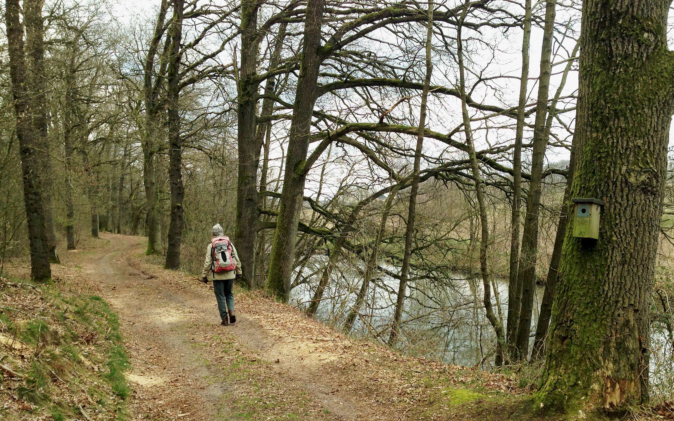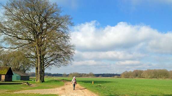 Deze 11km lange rondwandeling, die we in 2014 liepen, begint op de parkeerplaats bij de stuw in de Vecht boven Junne.