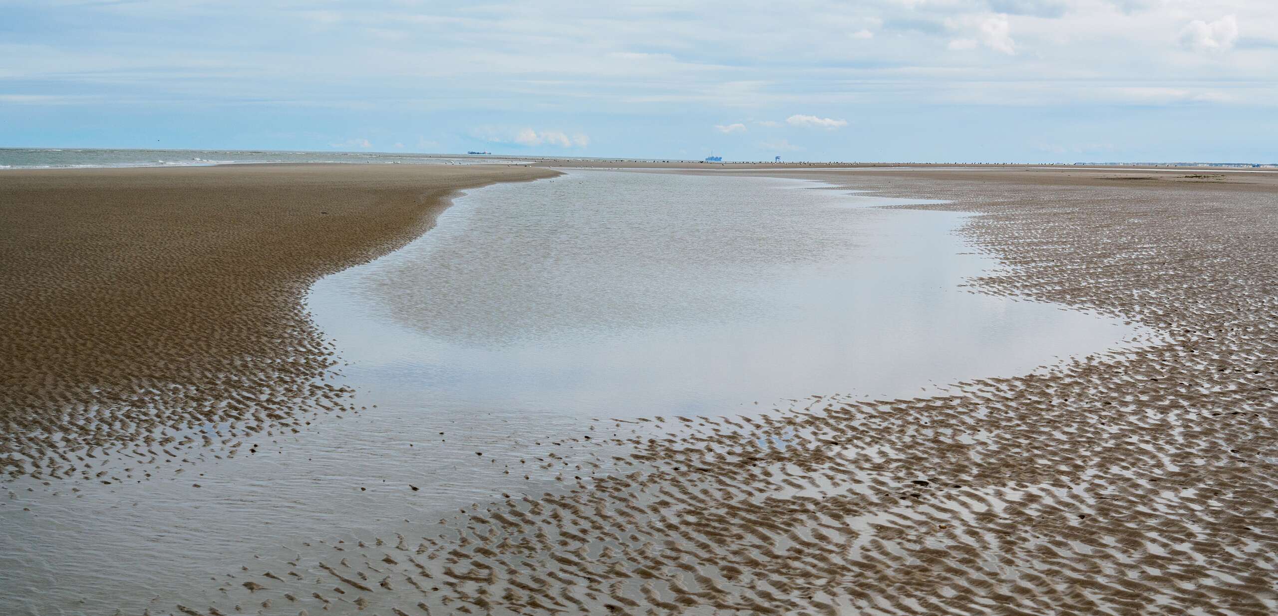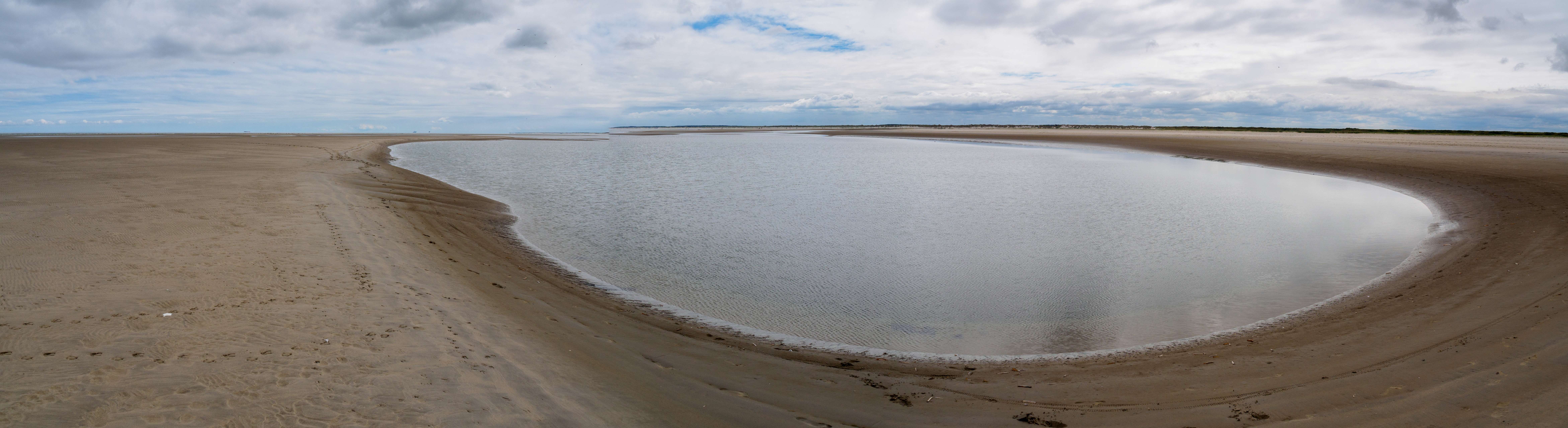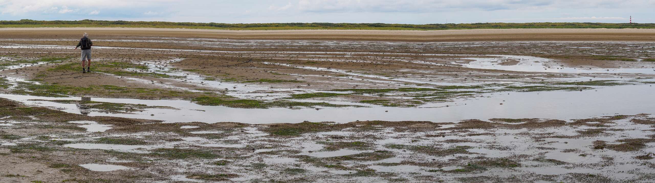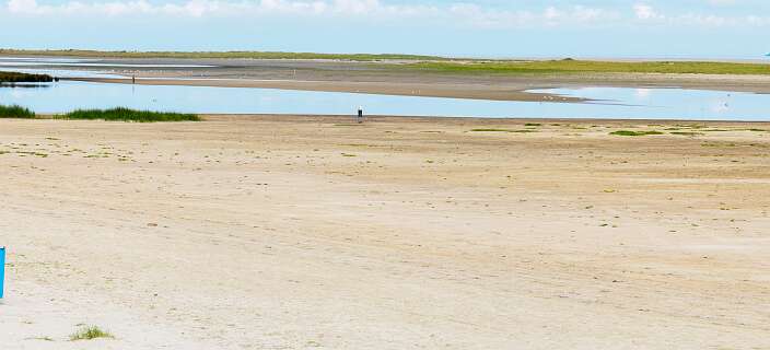 Het strand bij strandopgang Ballum is een van de interessantste stranden van Ameland. Het is ruim een km breed en bevat veel strandmeertjes, landtongen en inhammen (klik maar eens op de Google Maps knop hieronder).