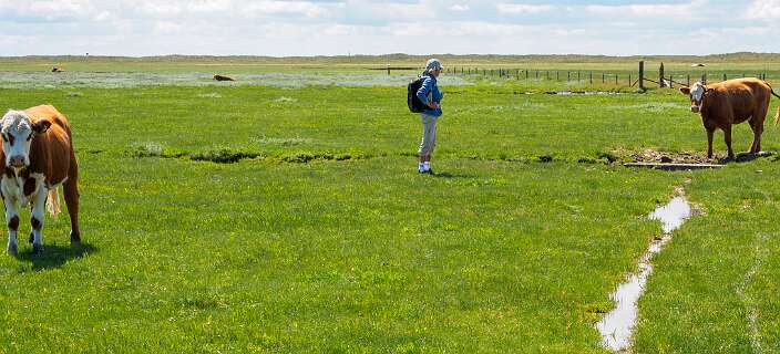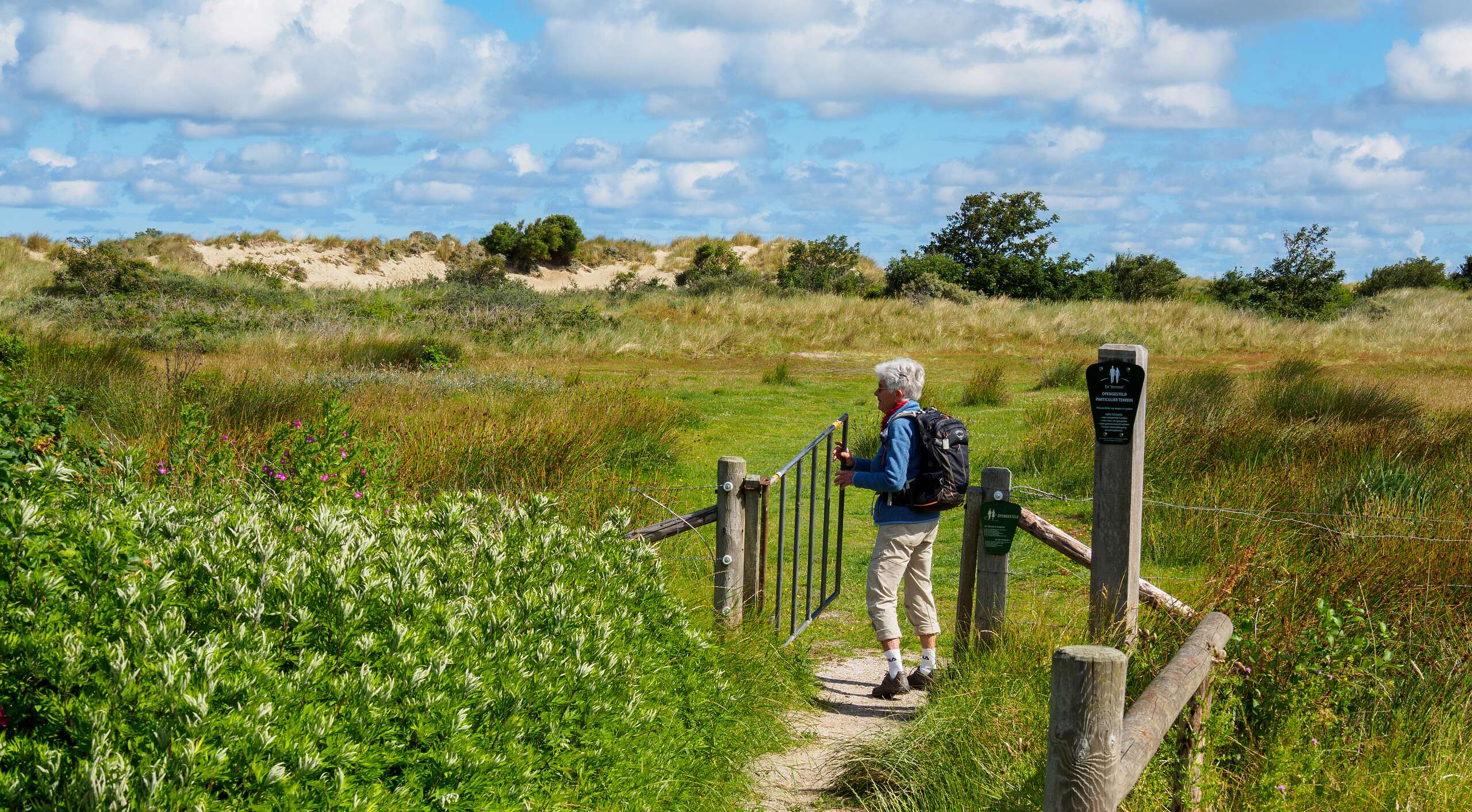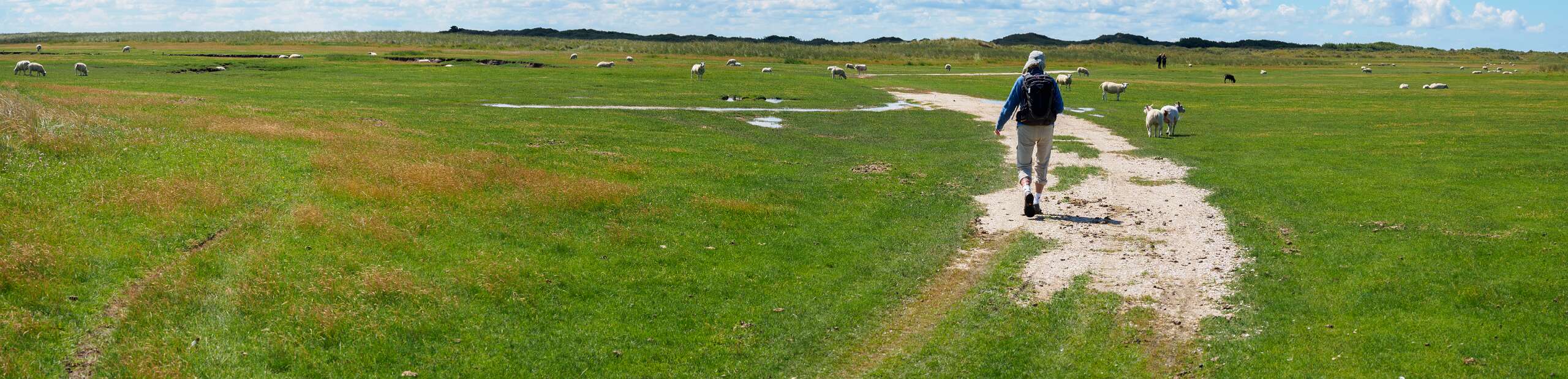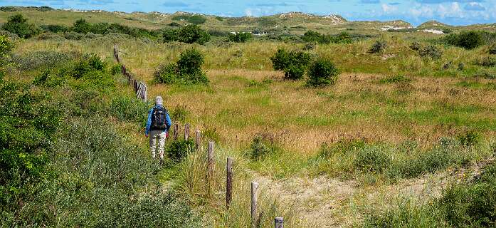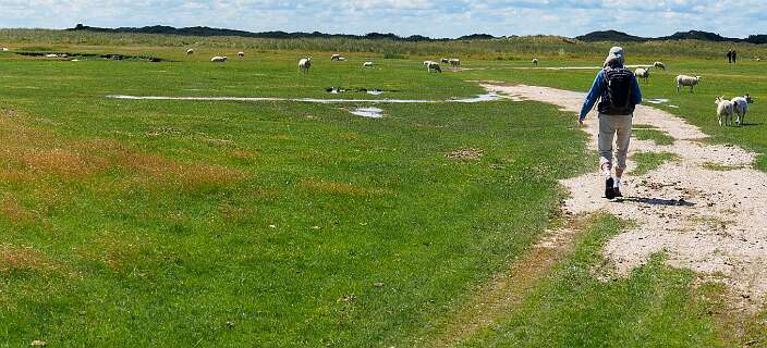 Deze wandeling van 9,4km begint bij de Kooiplaats ten oosten van Buren. Het is een afwisselende wandeling door de duinen, langs het strand en door de kwelders.