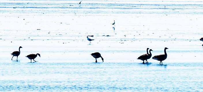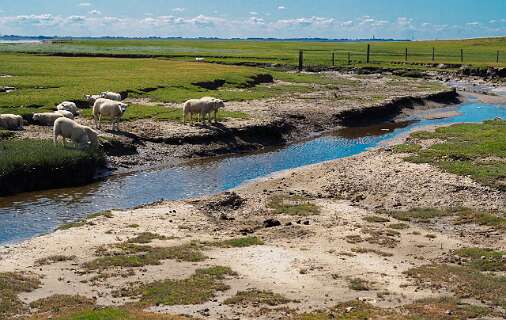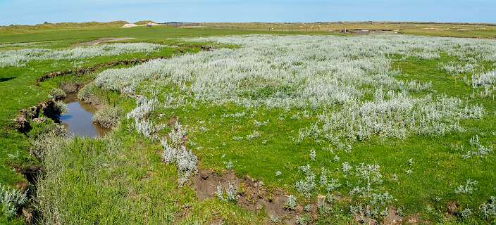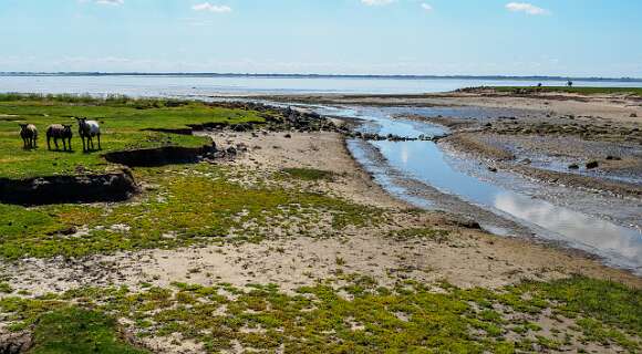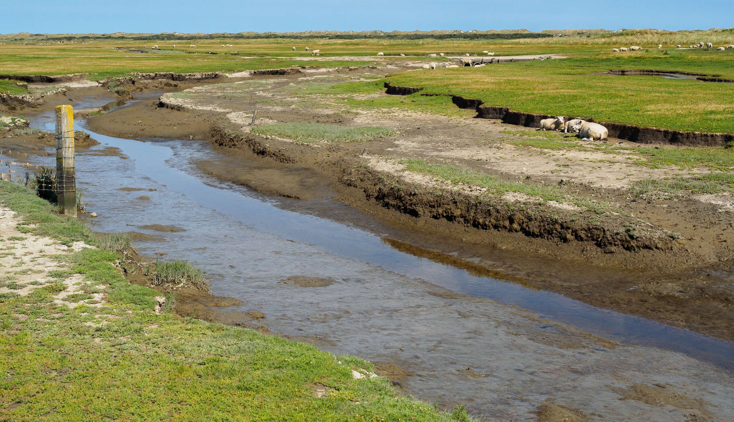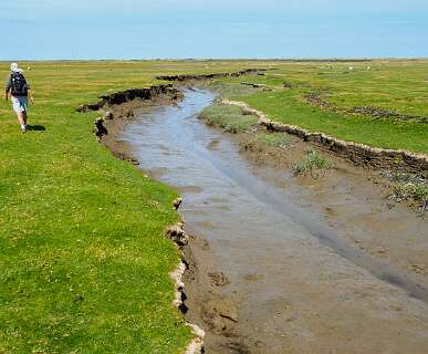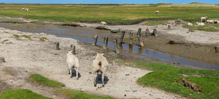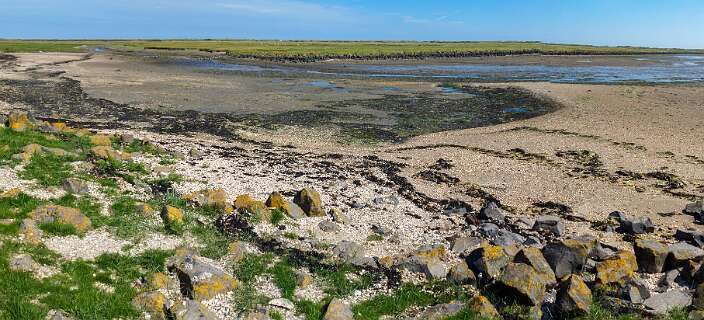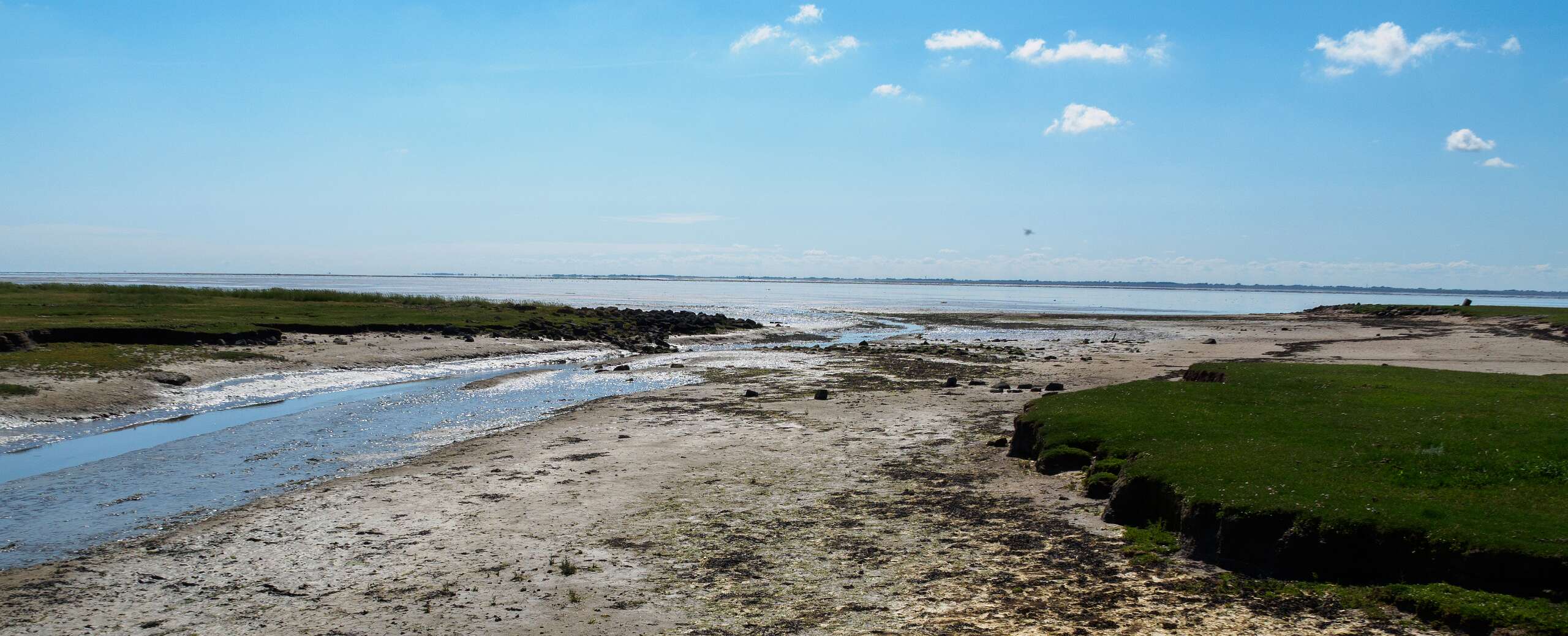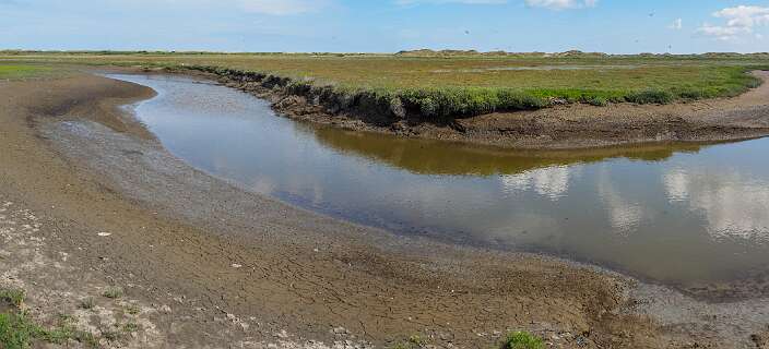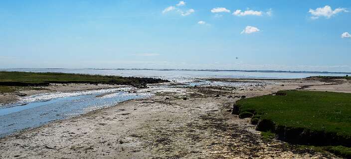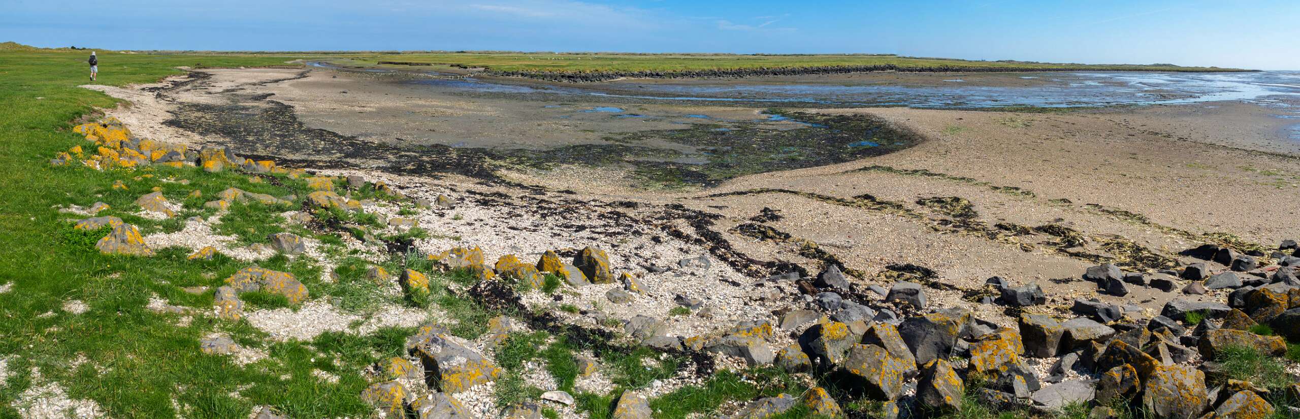Na weer koffie gedronken te heben in het KoaikerHuus in Kooiplaats reden we nog een paar honderd meter door naar de waddenkust waar we de fiets neerzetten, Daarna probeerden we langs de waddenkust te lopen, maar dat viel tegen omdat we de geulen die in de waddenzee uitkomen niet over kwamen. Daardoor kwamen we weer in het Nieuwlandsreid terecht, De track is niet erg nauwkeurig, omdat ik mijn GPS niet bij mij had, maar ik schat dat deze wandeling 10km lang was.