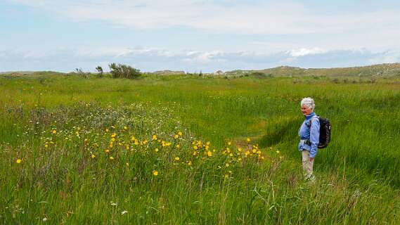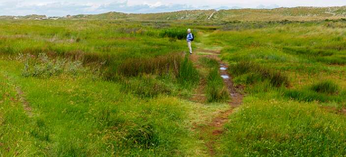 We fietsten vanuit de camping Duinoord naar het Oerd uitkijkpunt aan de oostkant (9km). Daar begonnen we met wandeling 10 over een afstand van 4,5km.