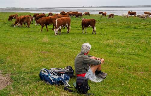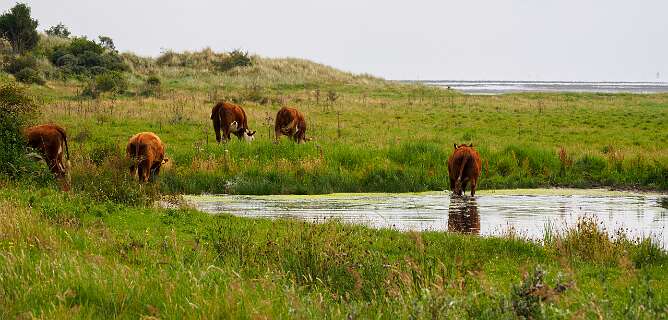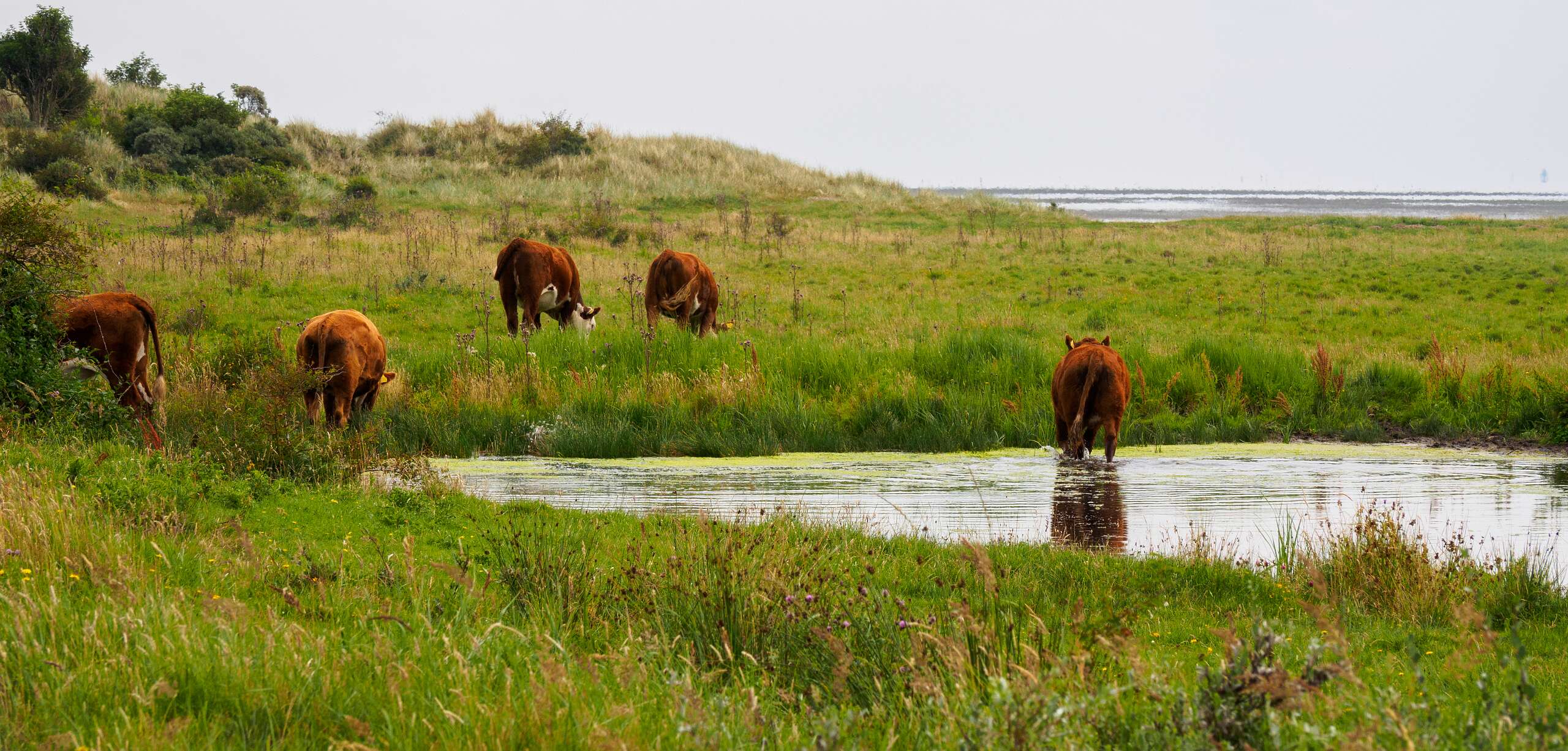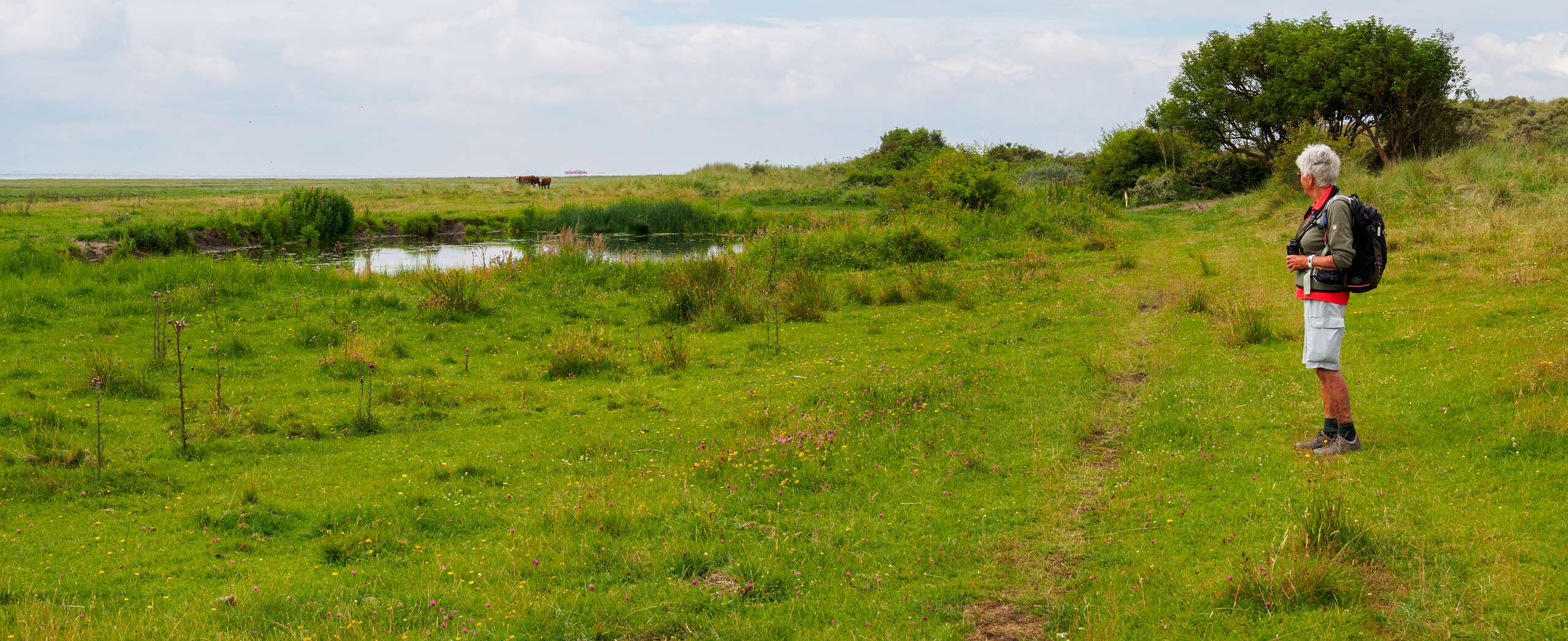 We fietsten eerst 8km naar het oosten en maakten daarna een wandeling van 4,2km langs het Oerd, het Wad en liepen we terug door het Nieuwlandsreid.
