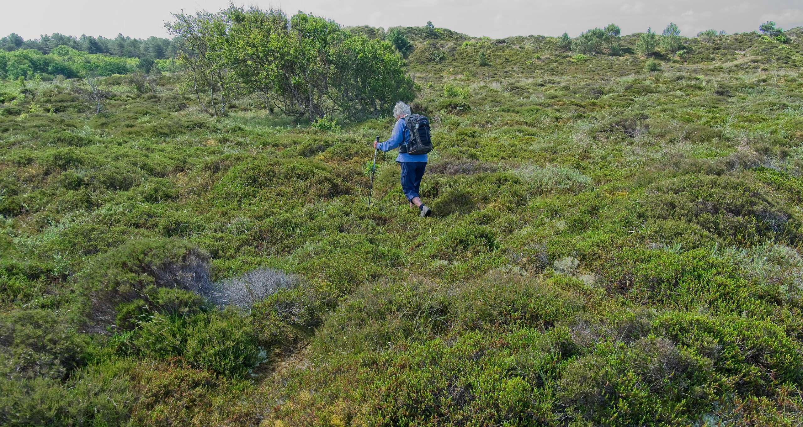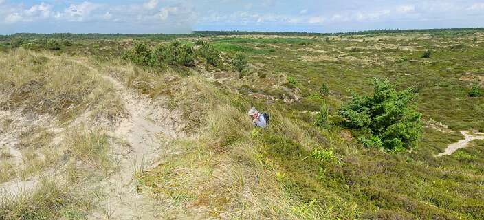 Vanuit de Bessenschuur, waar we natuurlijk eerst koffie met granberry kwarktaart dronken en aten, liepen we over de heide rond het Grieneplak en daarna door het bos langs de Longway, waar we de Dennenorchis zochten. Dit is een wandeling van 7km.
