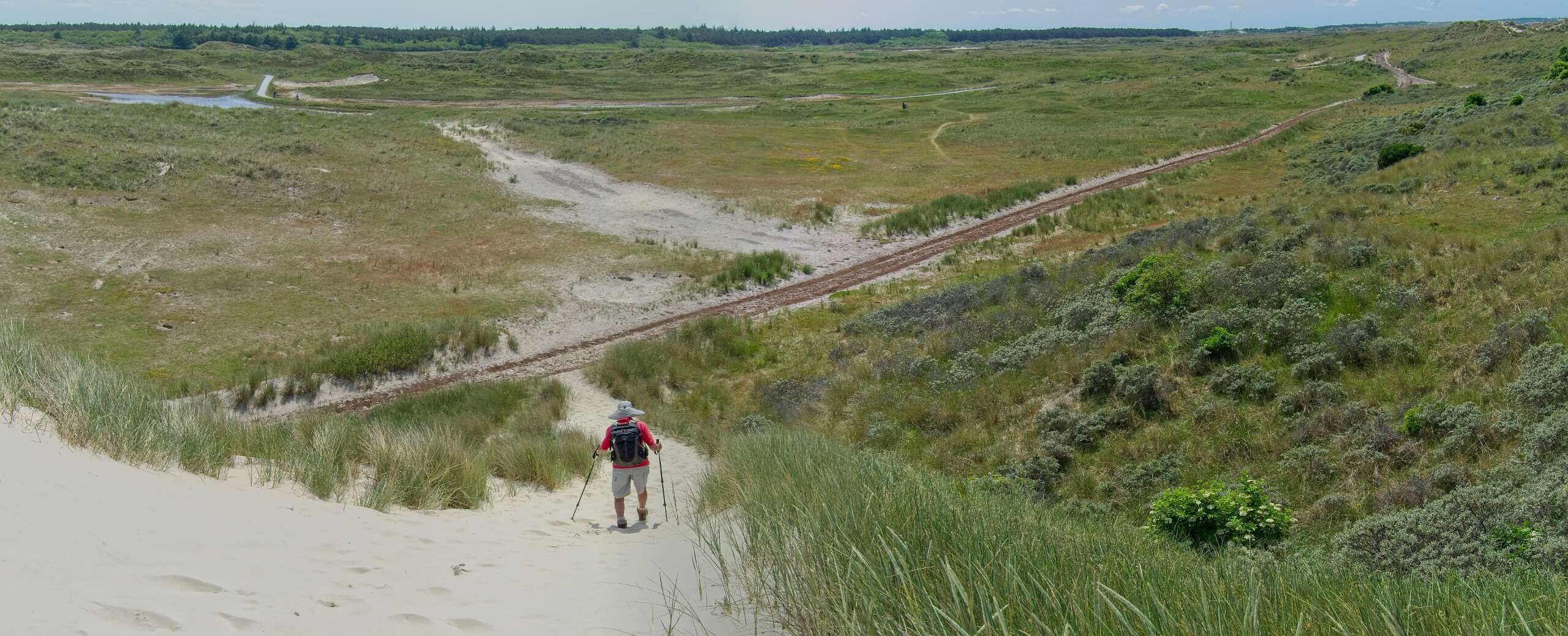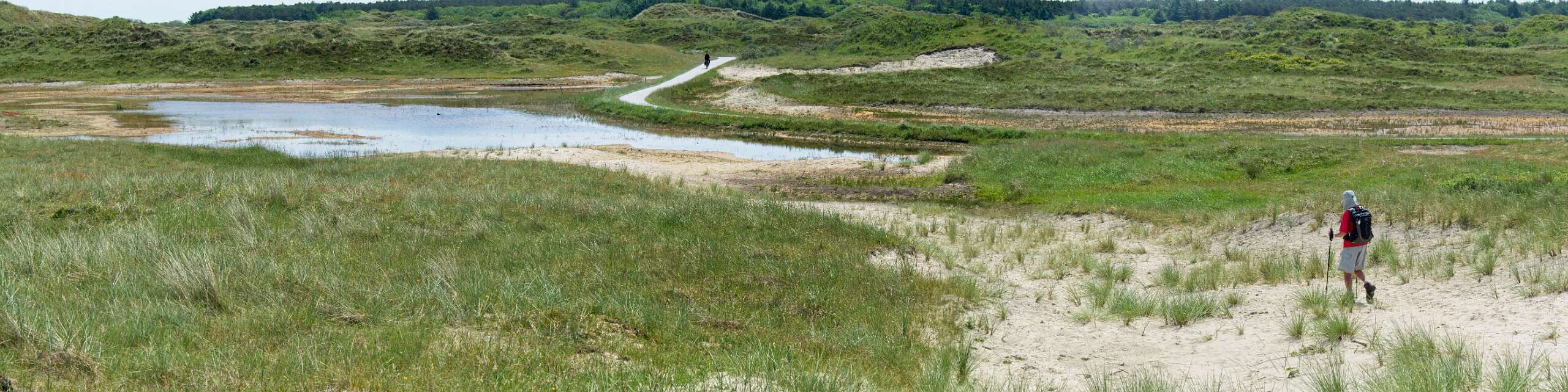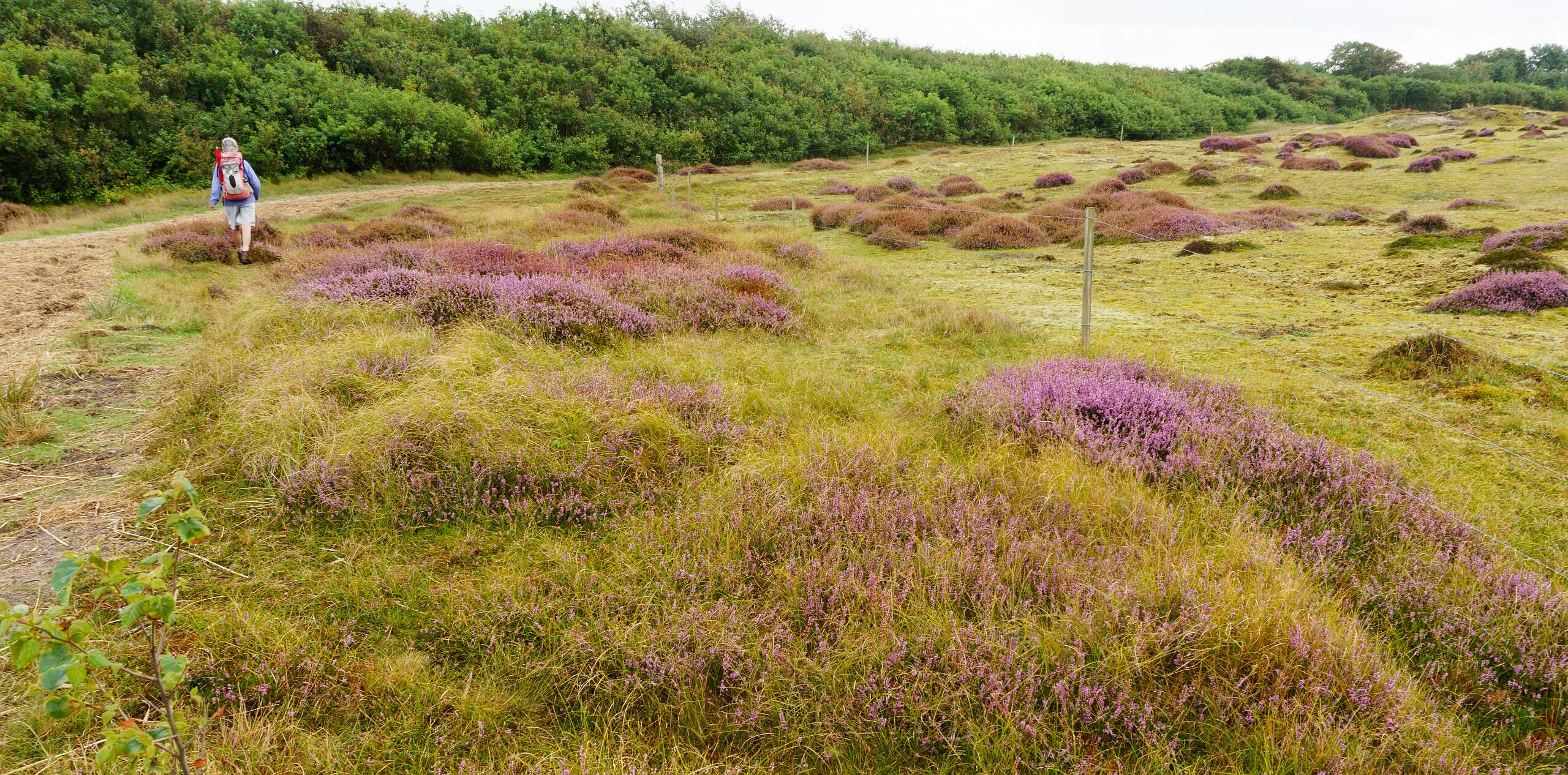 In 2014 liepen we vanuit de camping eerst door het Formerumerbos en daarna door heide en duin door de Koegelwieck naar het strand. Via Formerum aan zee / Zandzeebar liepen we terug naar de camping, 8,5 km.s'Middags liepen we vanuit de camping over de Landrumerheide naar Midsland aan Zee en via de westkant van die heidevlakte weer terug naar de camping, 6 km.