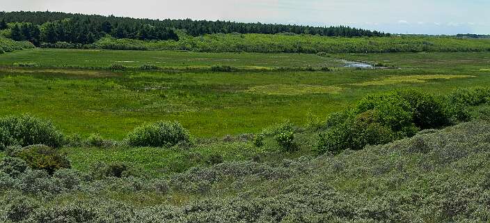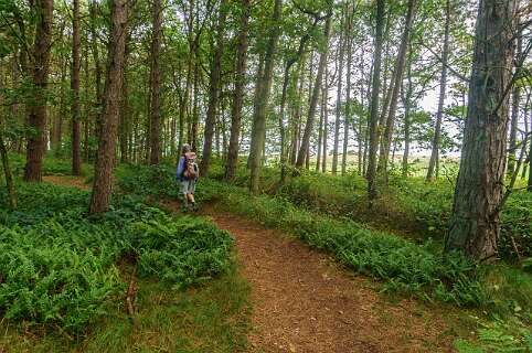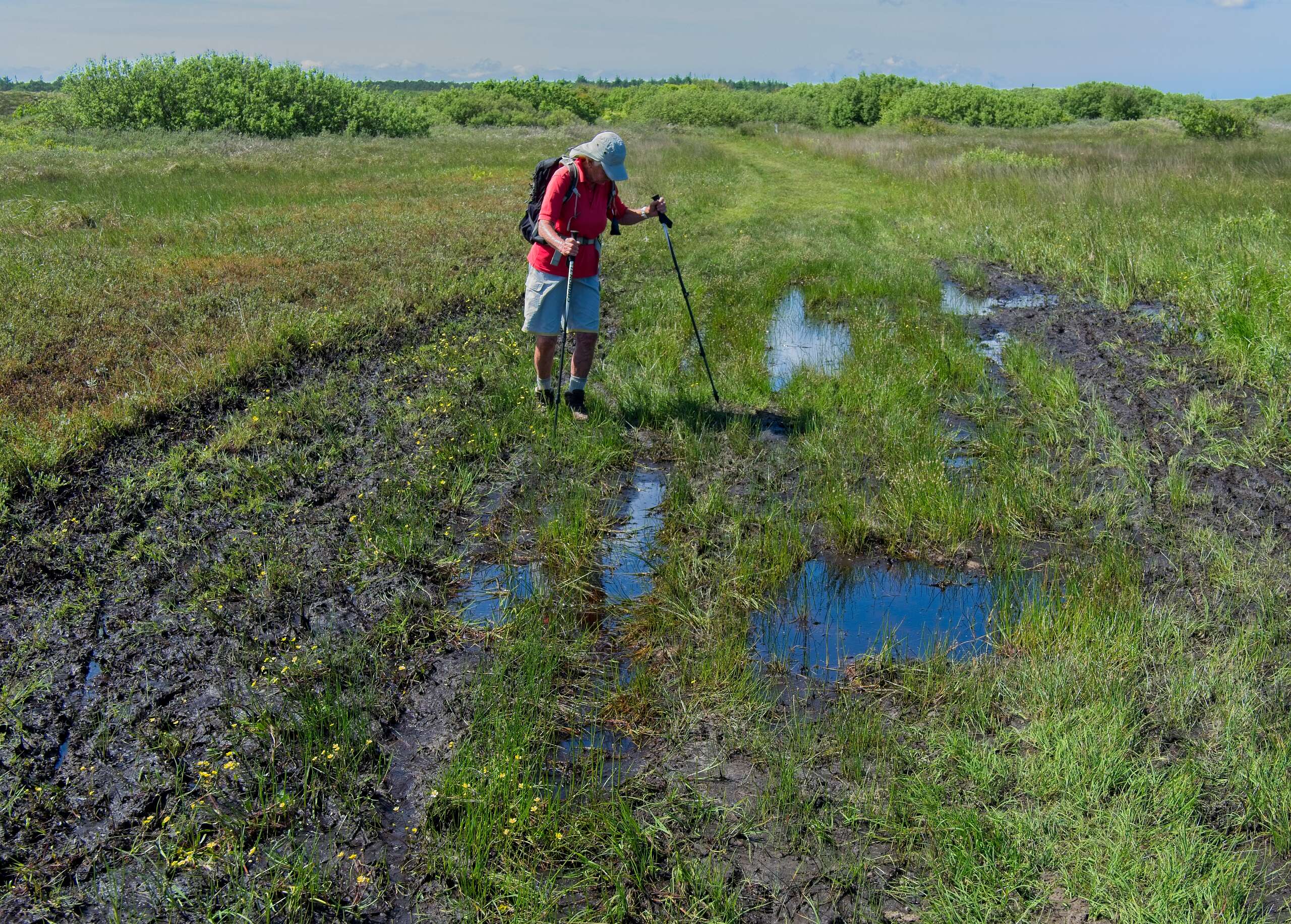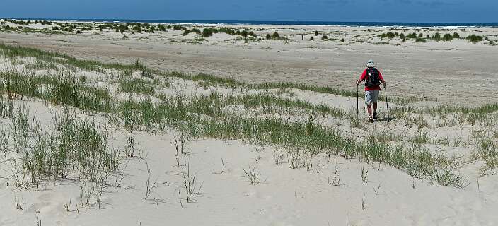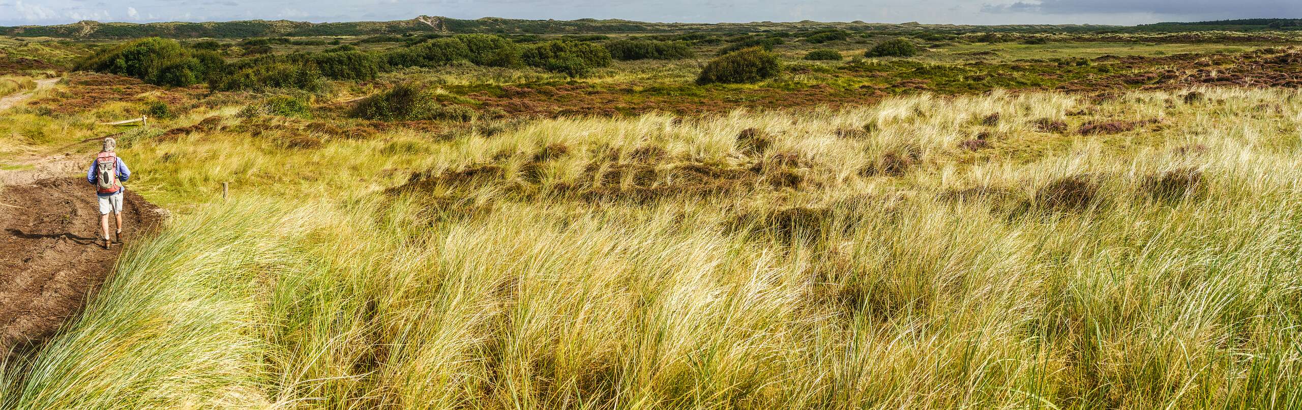 In 2014 liepen we vanuit de camping eerst door het Formerumerbos en daarna door heide en duin door de Koegelwieck naar het strand. Via Formerum aan zee / Zandzeebar liepen we terug naar de camping, 8,5 km.s'Middags liepen we vanuit de camping over de Landrumerheide naar Midsland aan Zee en via de westkant van die heidevlakte weer terug naar de camping, 6 km.